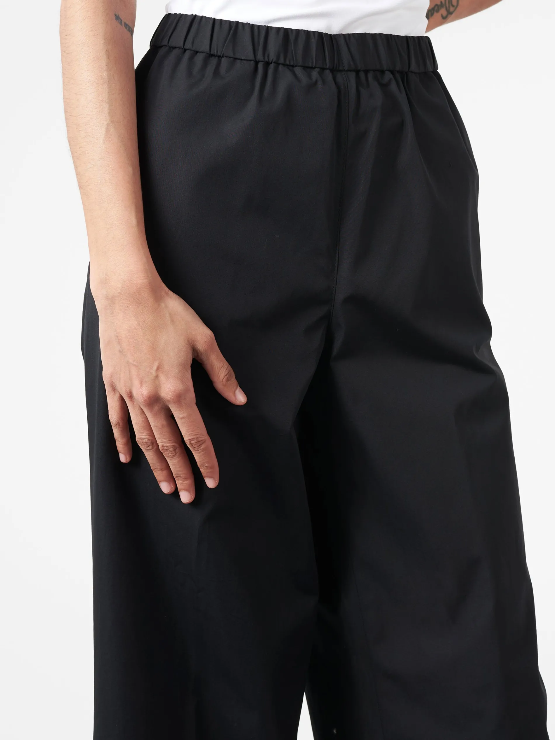 Aspesi wide-leg cotton poplin pants with elasticated waist. This garment is compact without ever neglecting softness and an elegant glossy finish.