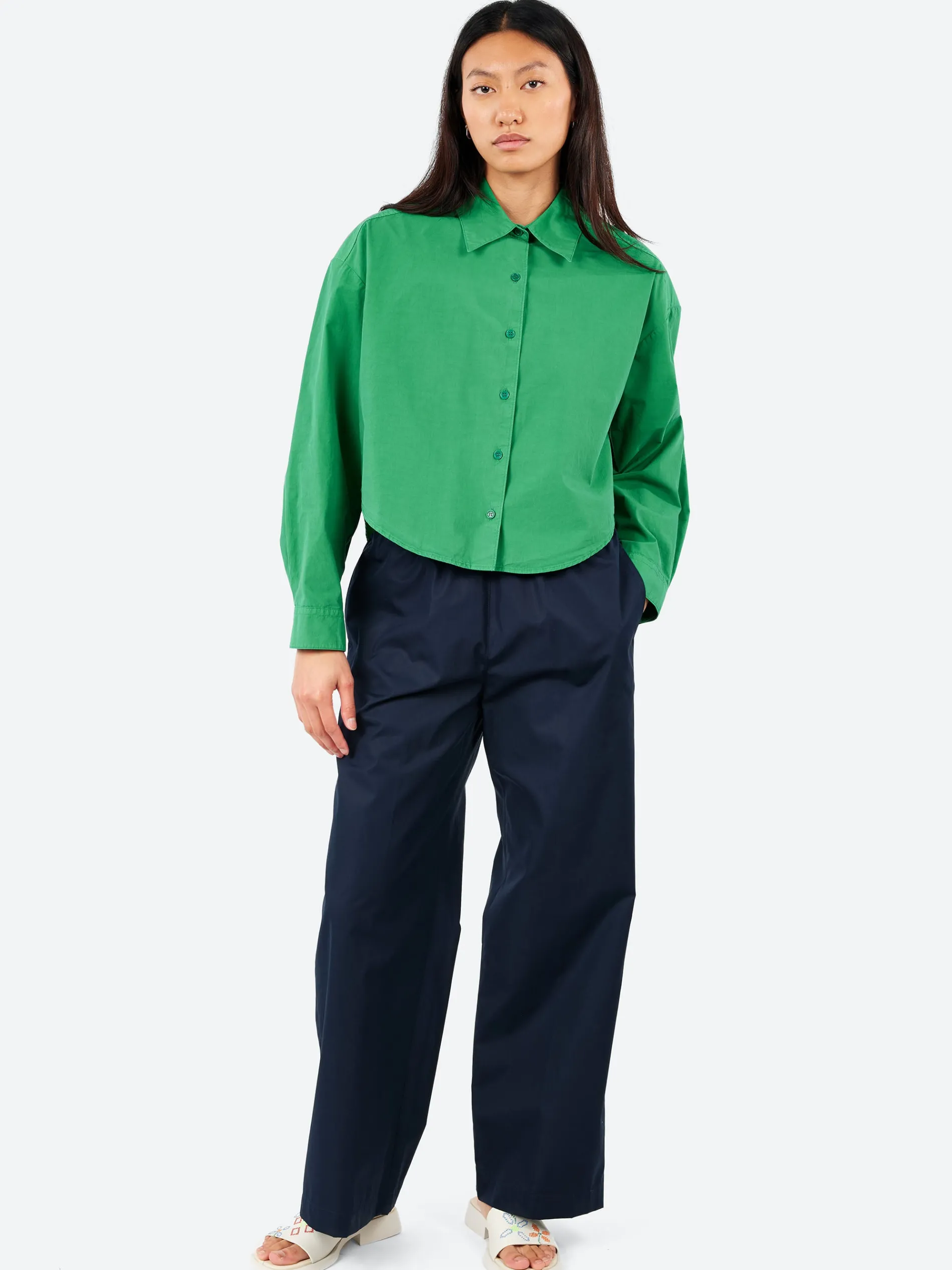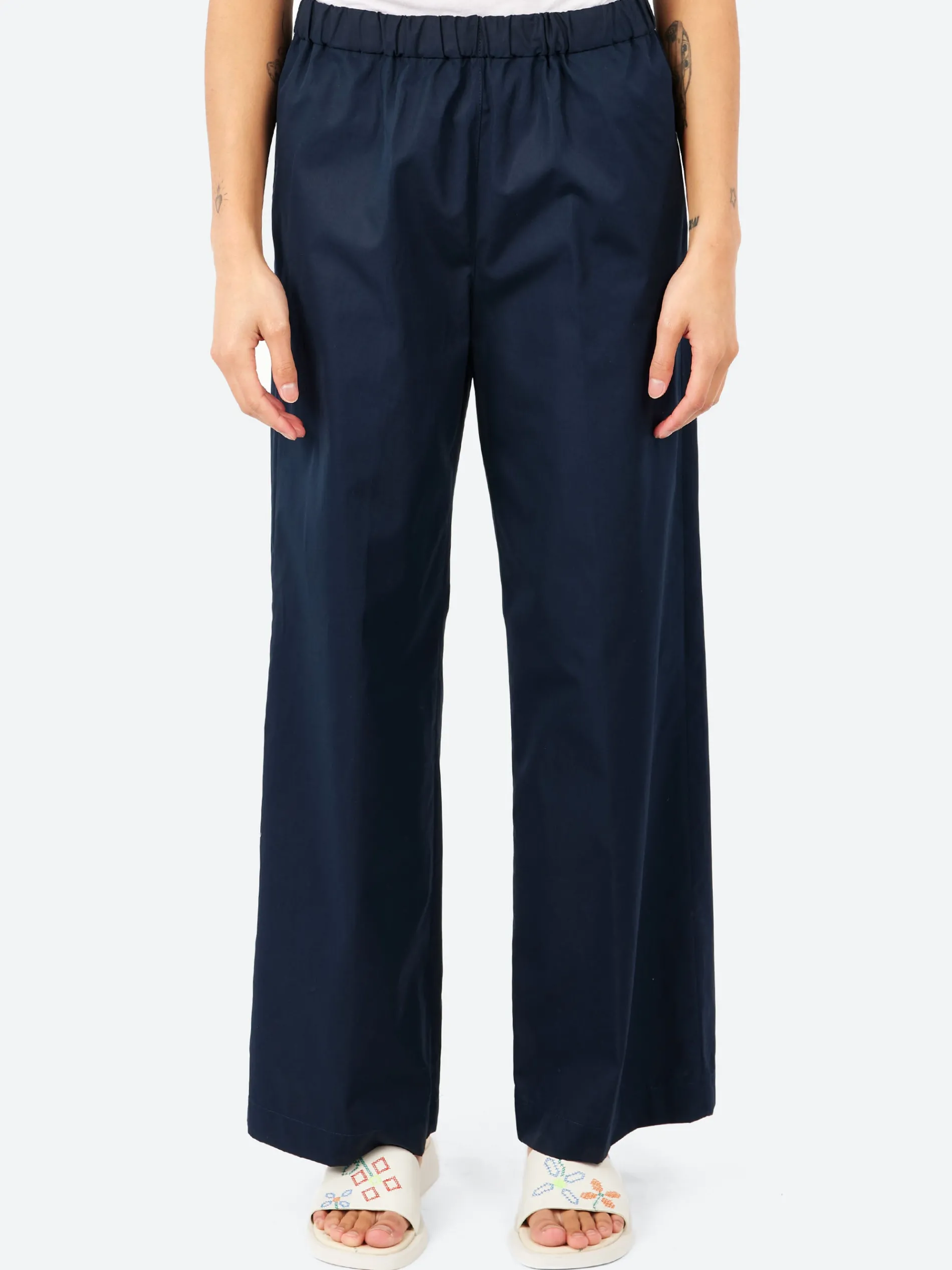 Aspesi wide-leg cotton poplin pants with elasticated waist. This garment is compact without ever neglecting softness and an elegant glossy finish.