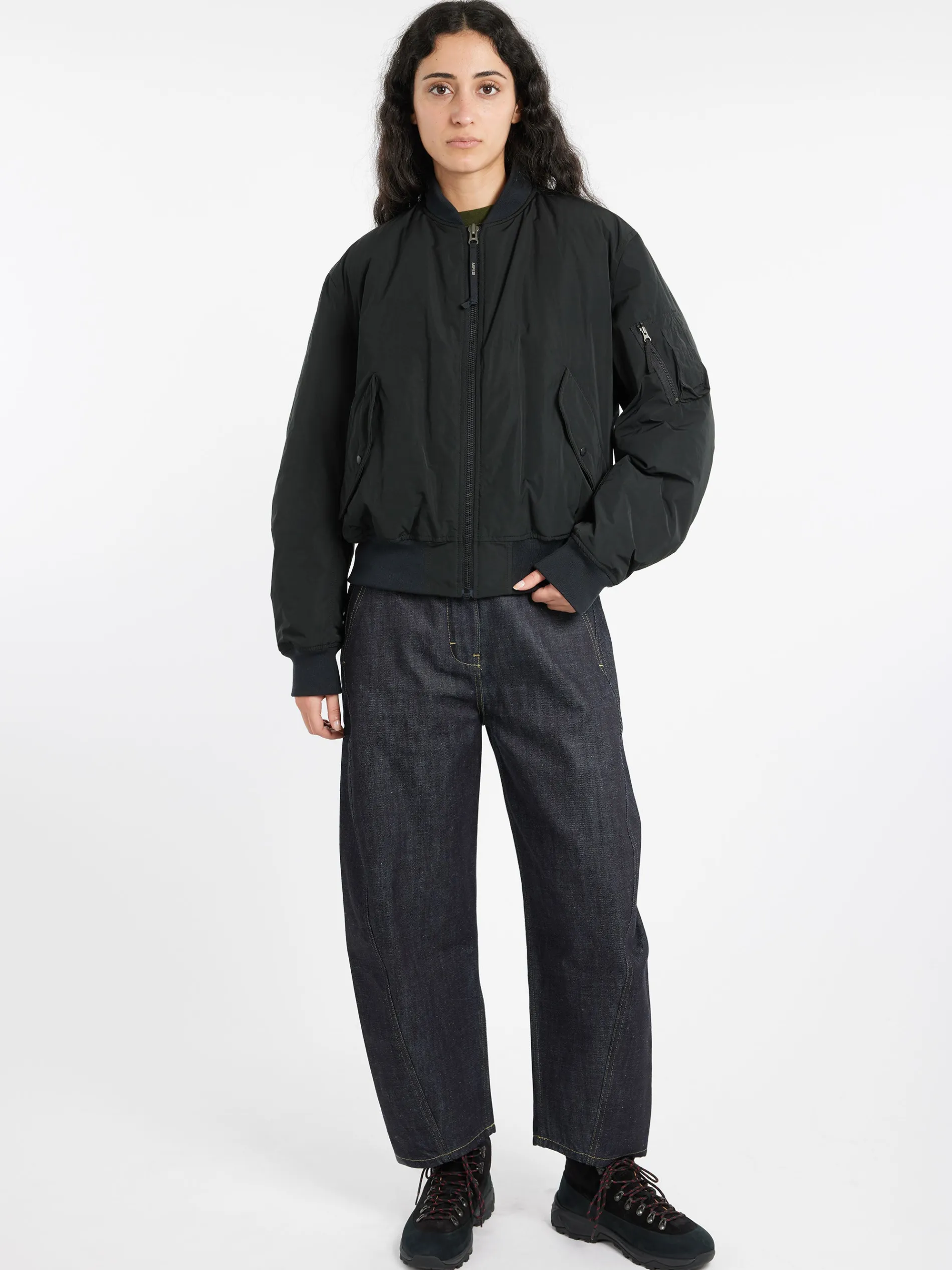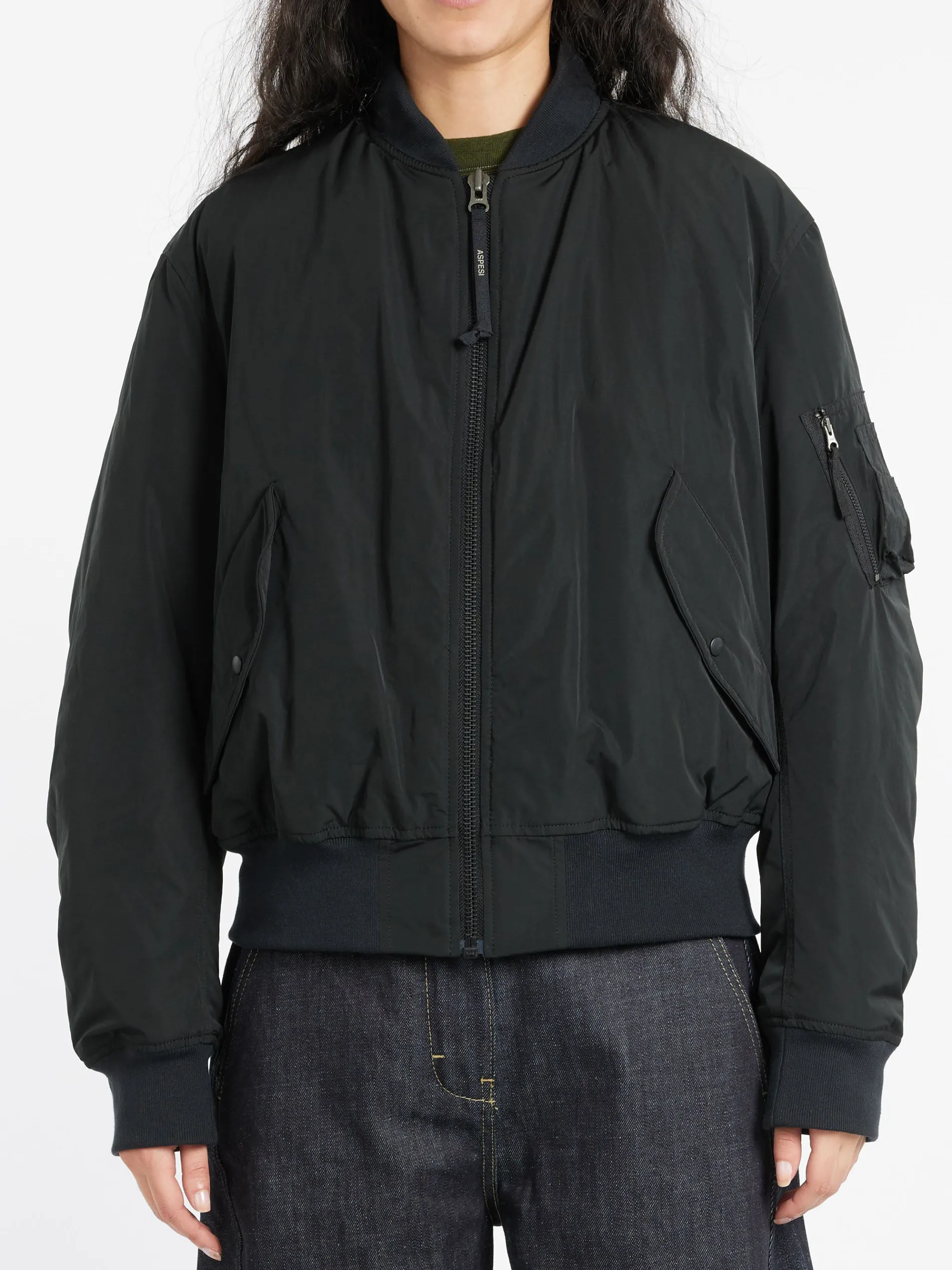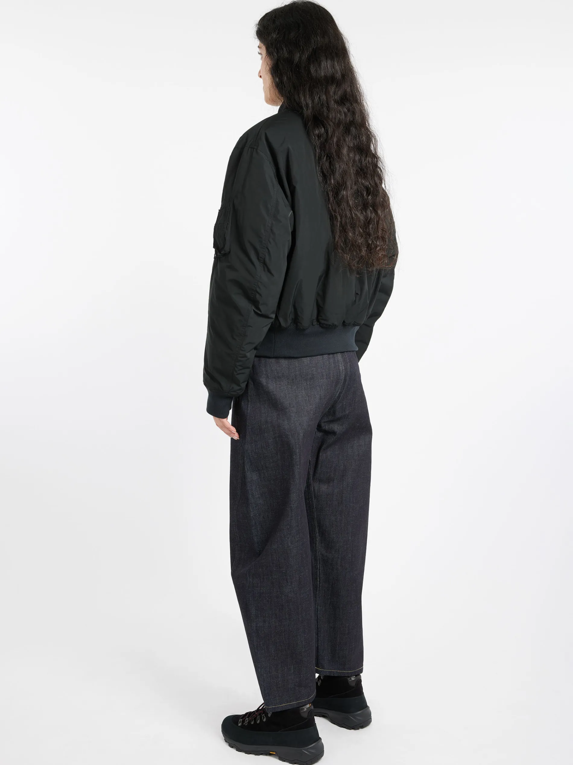 Waterproof nylon taffeta bomber jacket padded with extra soft, extra heat-insulating wadding and contrasting nylon interior. The garment is part of Shared Wardrobe, the line designed for inclusive fashion.