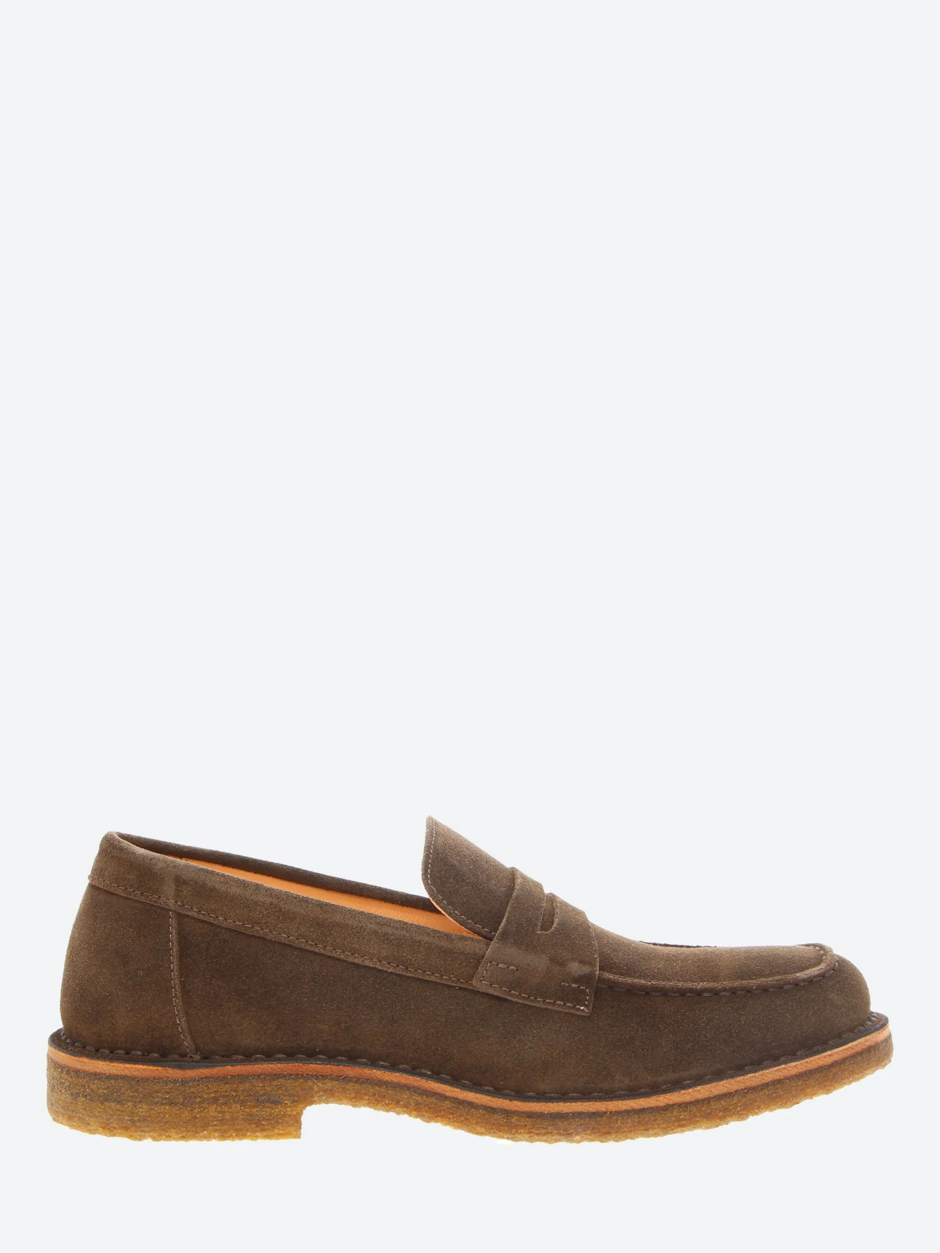 Astorflex Mokaflex loafer handcrafted with suede and finished with the brand’s signature external stitch “ideal” construction method.