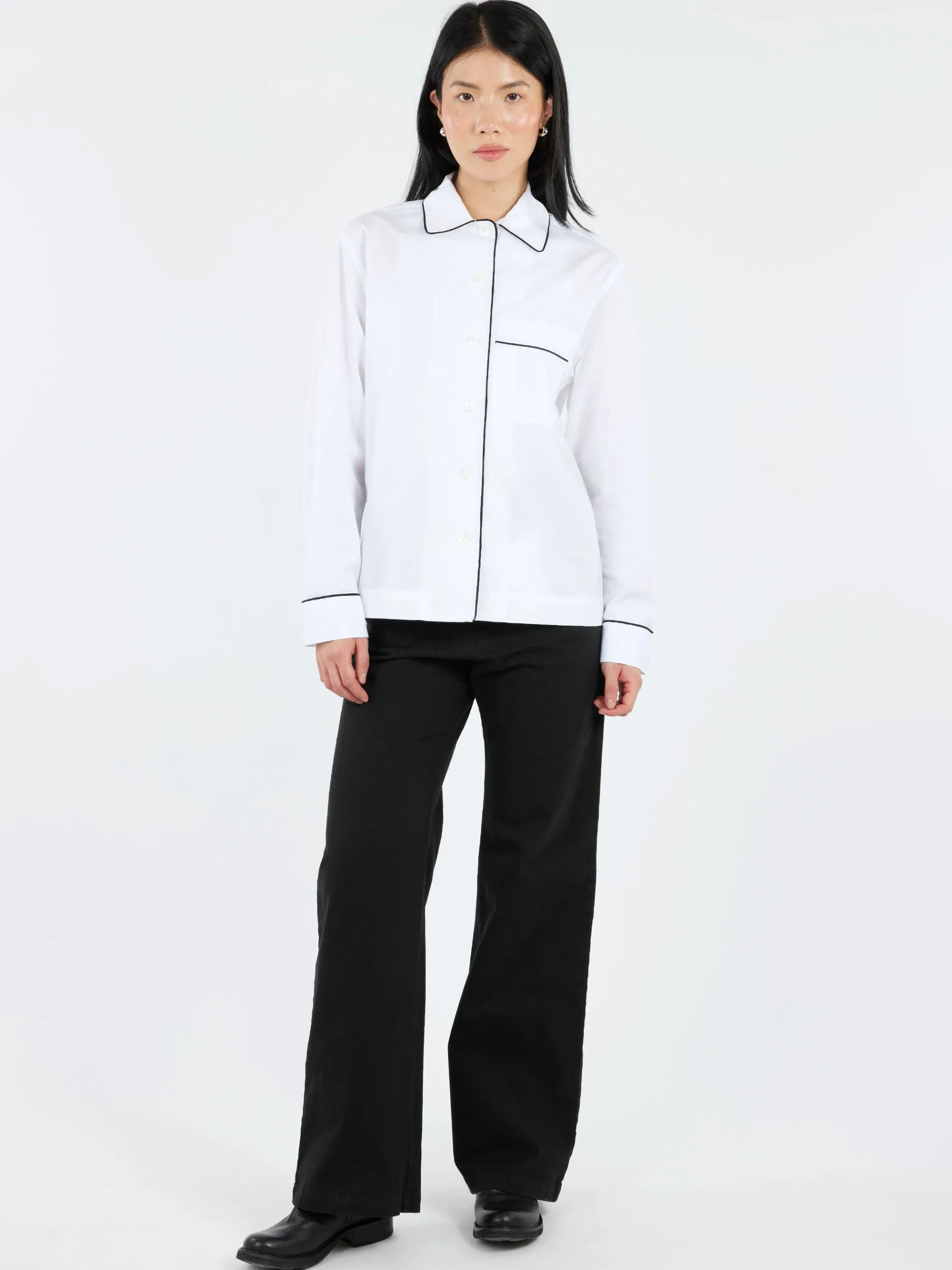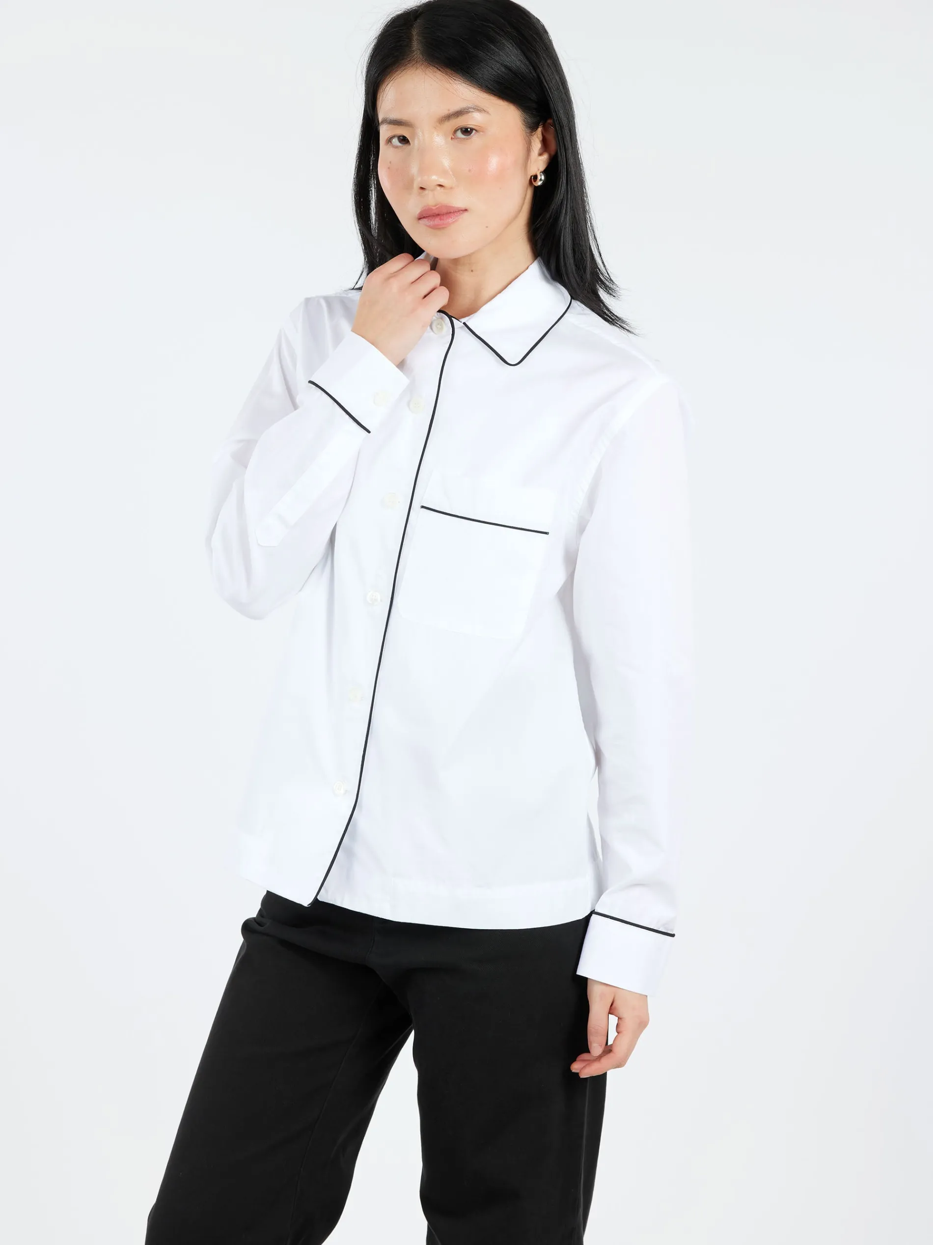 - Long sleeves with buttoned cuffs