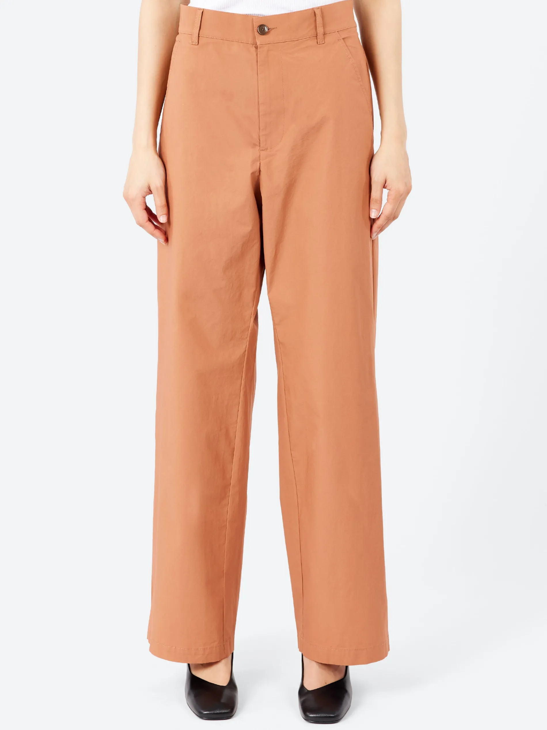 - Flat front with belt loops