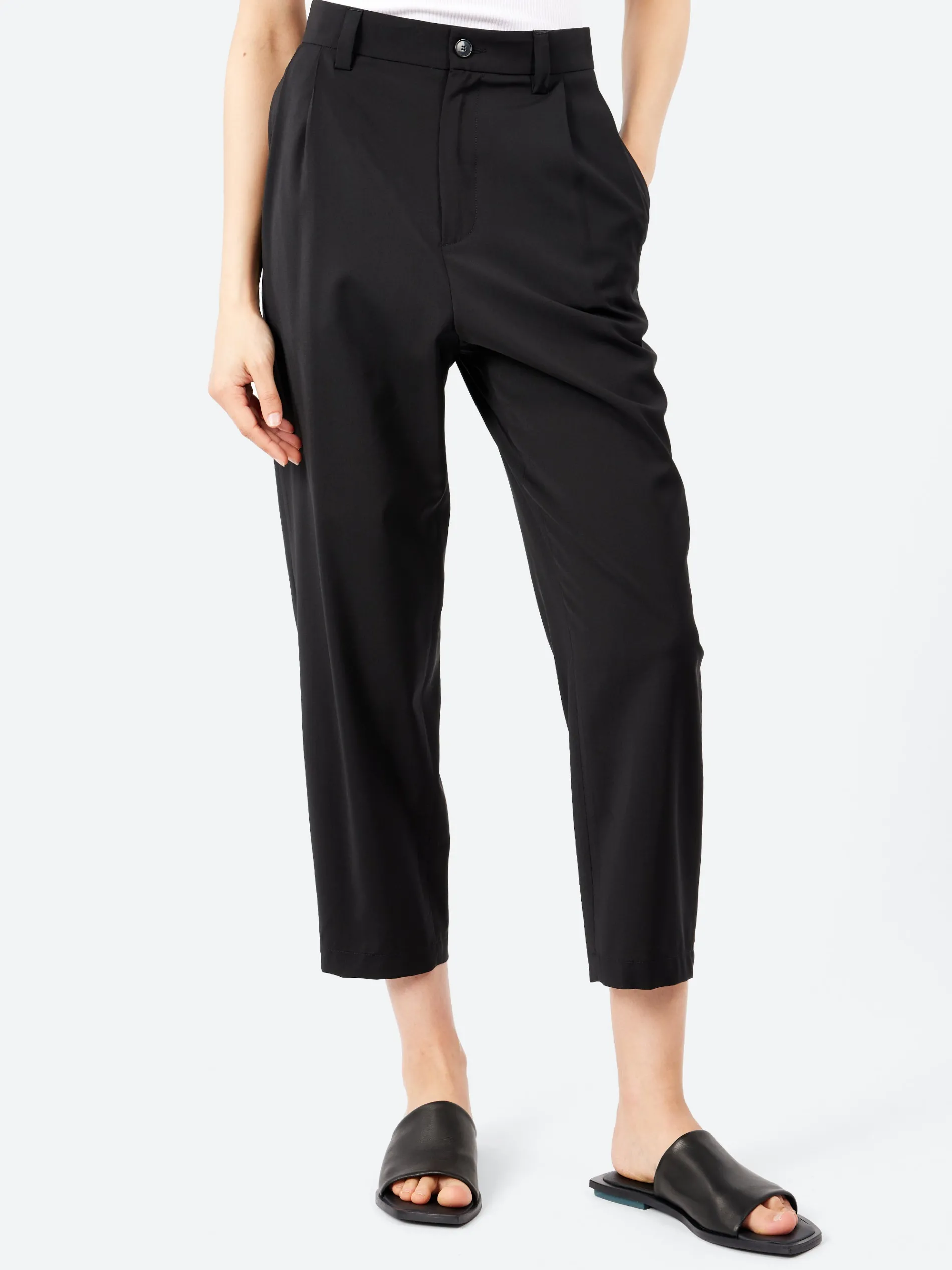 The Roxanne trousers are made from lightweight tropical wool, enhancing its timeless elegance while maintaining a casual silhouette. The style includes double pleats on front, for a refined appearance.