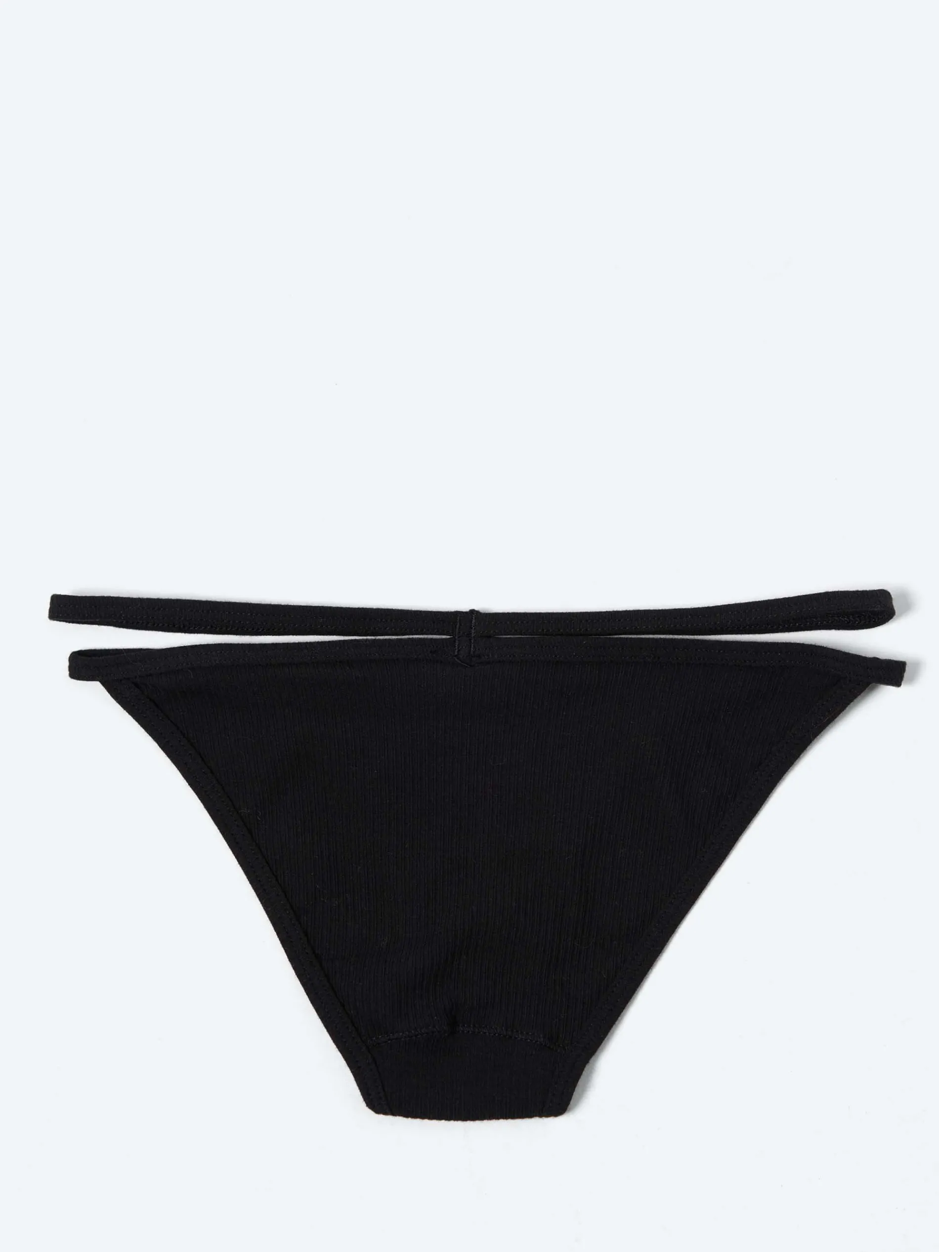 Cotton rib underpants, cut with medium coverage and strap detail around the hips.