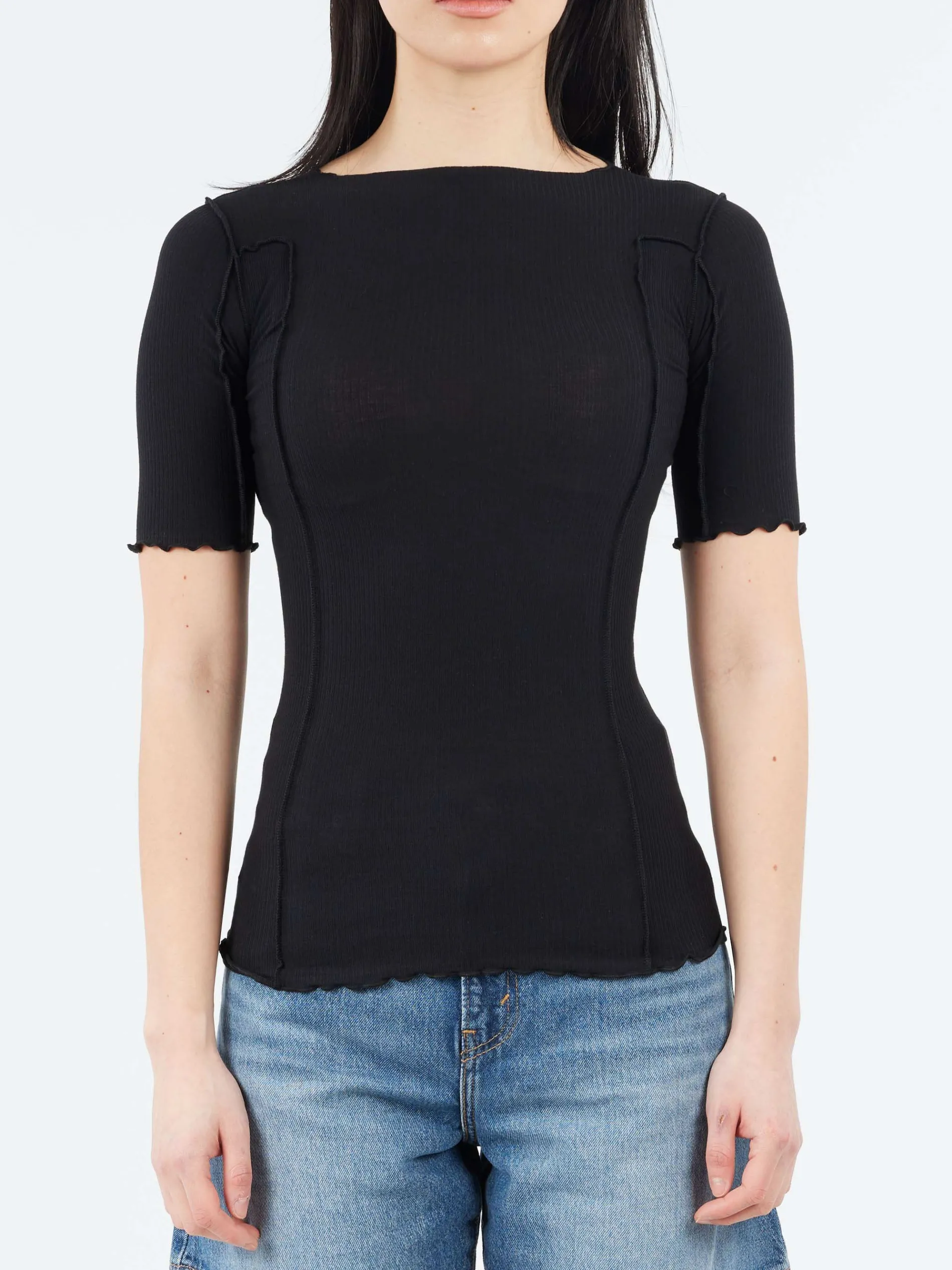 Baserange organic cotton rib tee with lettuce edge at neckline and hems.
