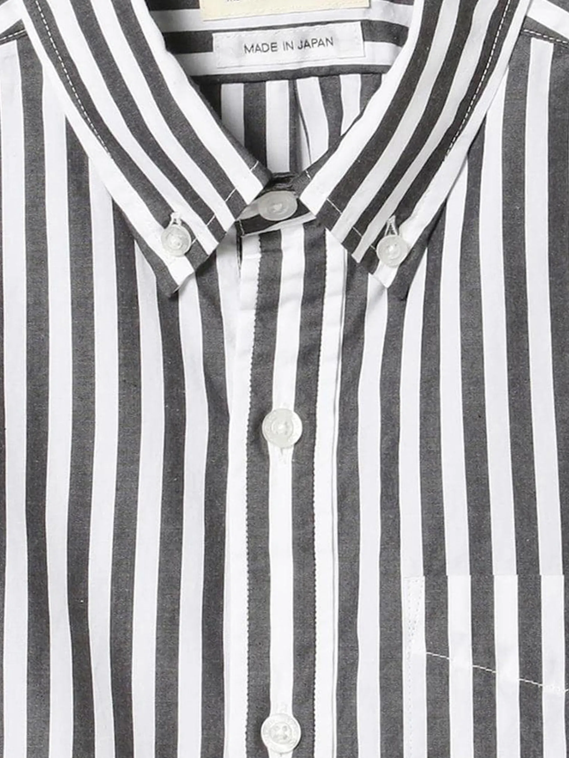 A striped button-down shirt perfect to match with any items, especially with a vest or a jacket. “BB” embroidery on the left hem.