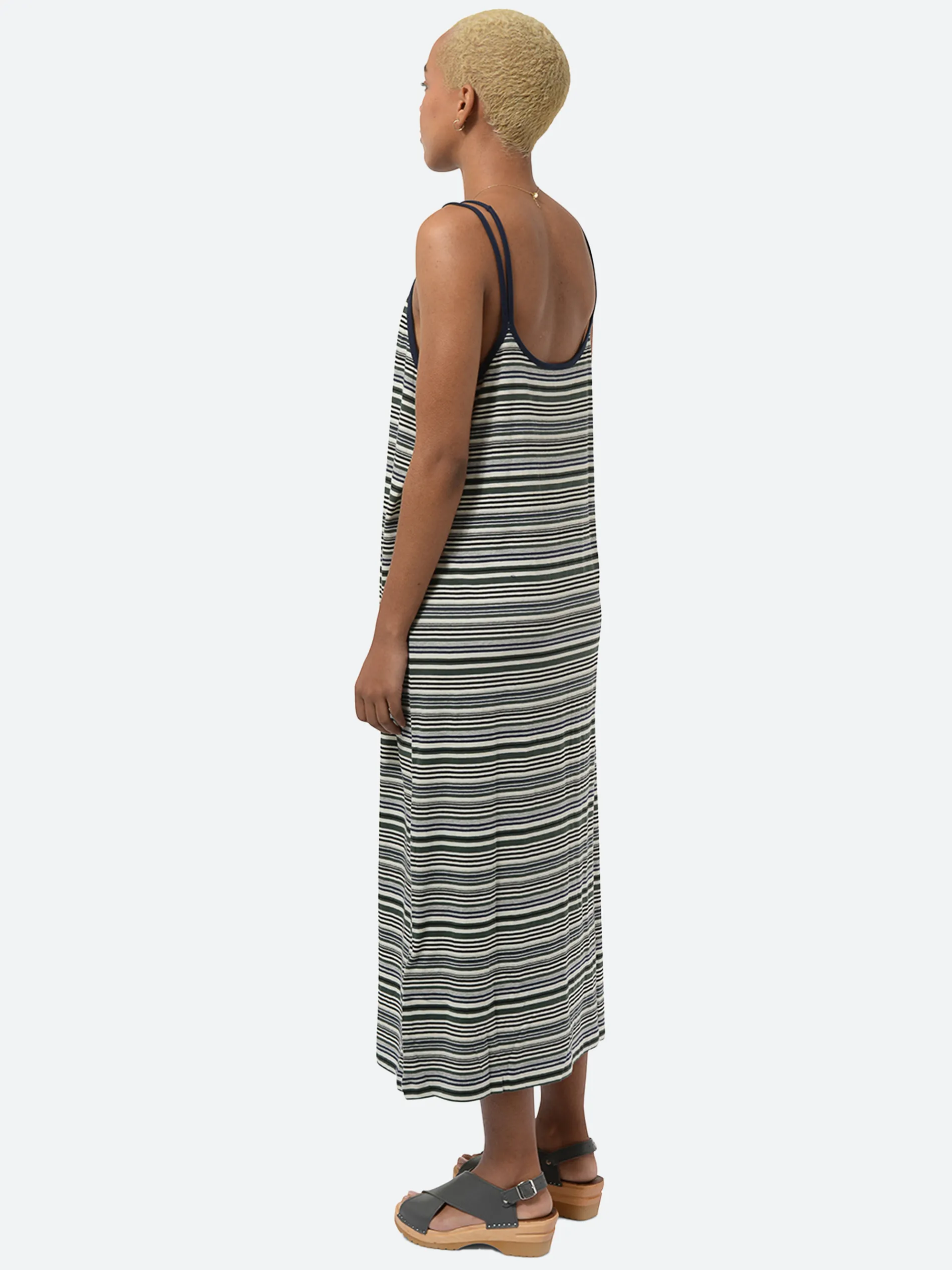 Beams Boy camisole maxi dress with a moderately loose silhouette and a soft hand that is perfect on its own or layering.