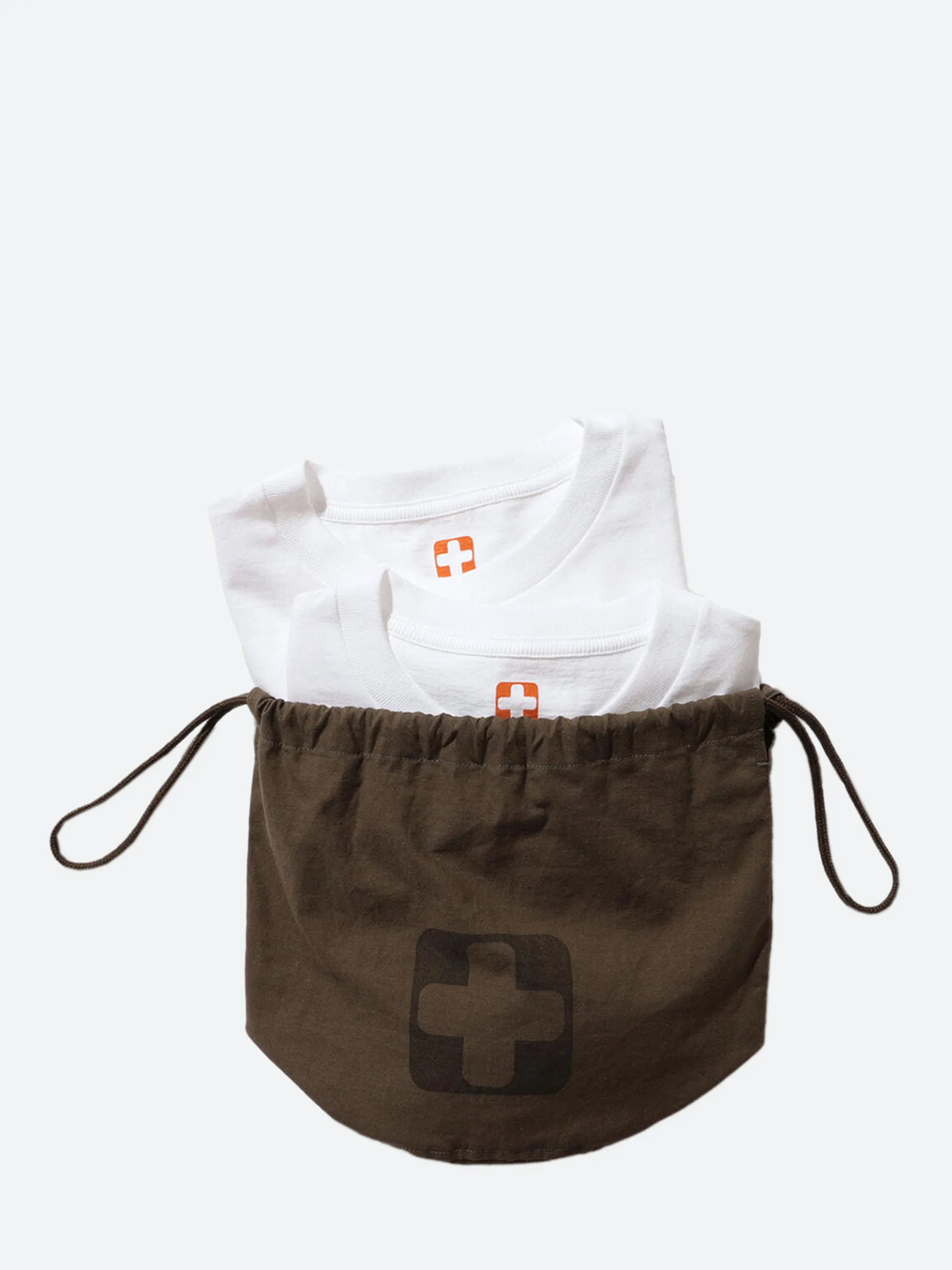 BEAMS PLUS two pack cotton tees with a simple patch pocket at the chest. Packaged in a storage bag that’ll keep them clean and crisp while you travel.