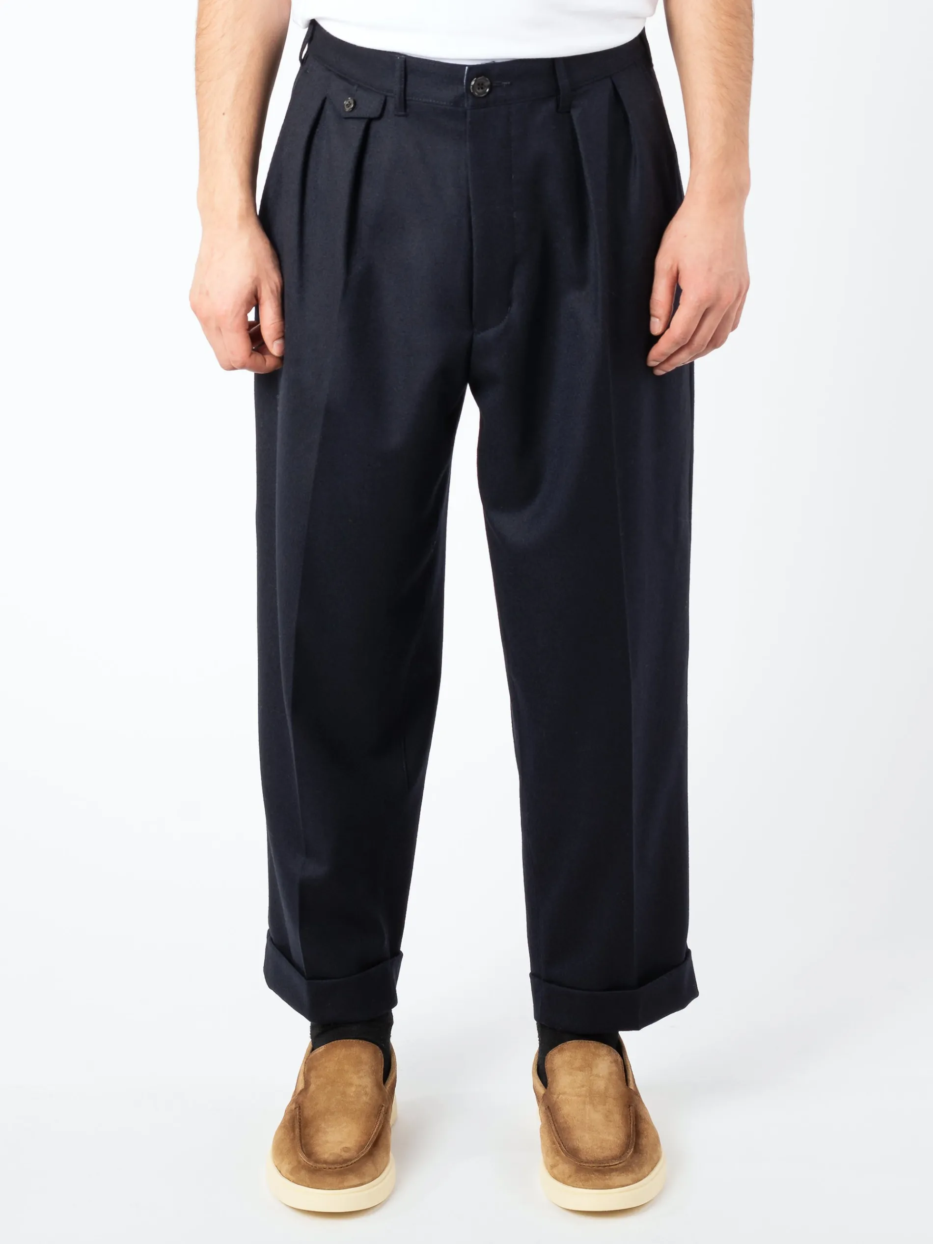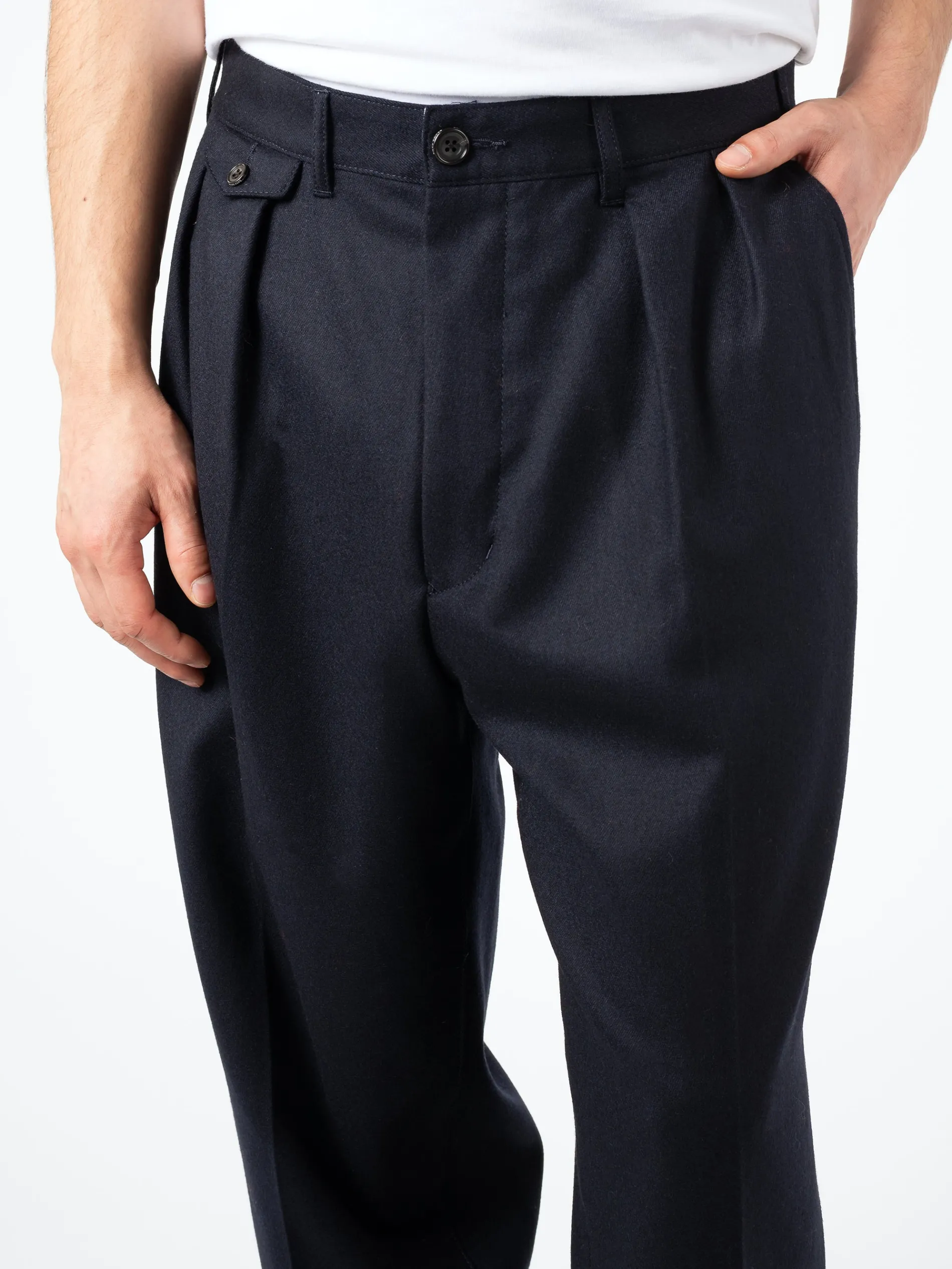 BEAMS PLUS two-pleat trousers with a flap coin pocket for a more traditional style.