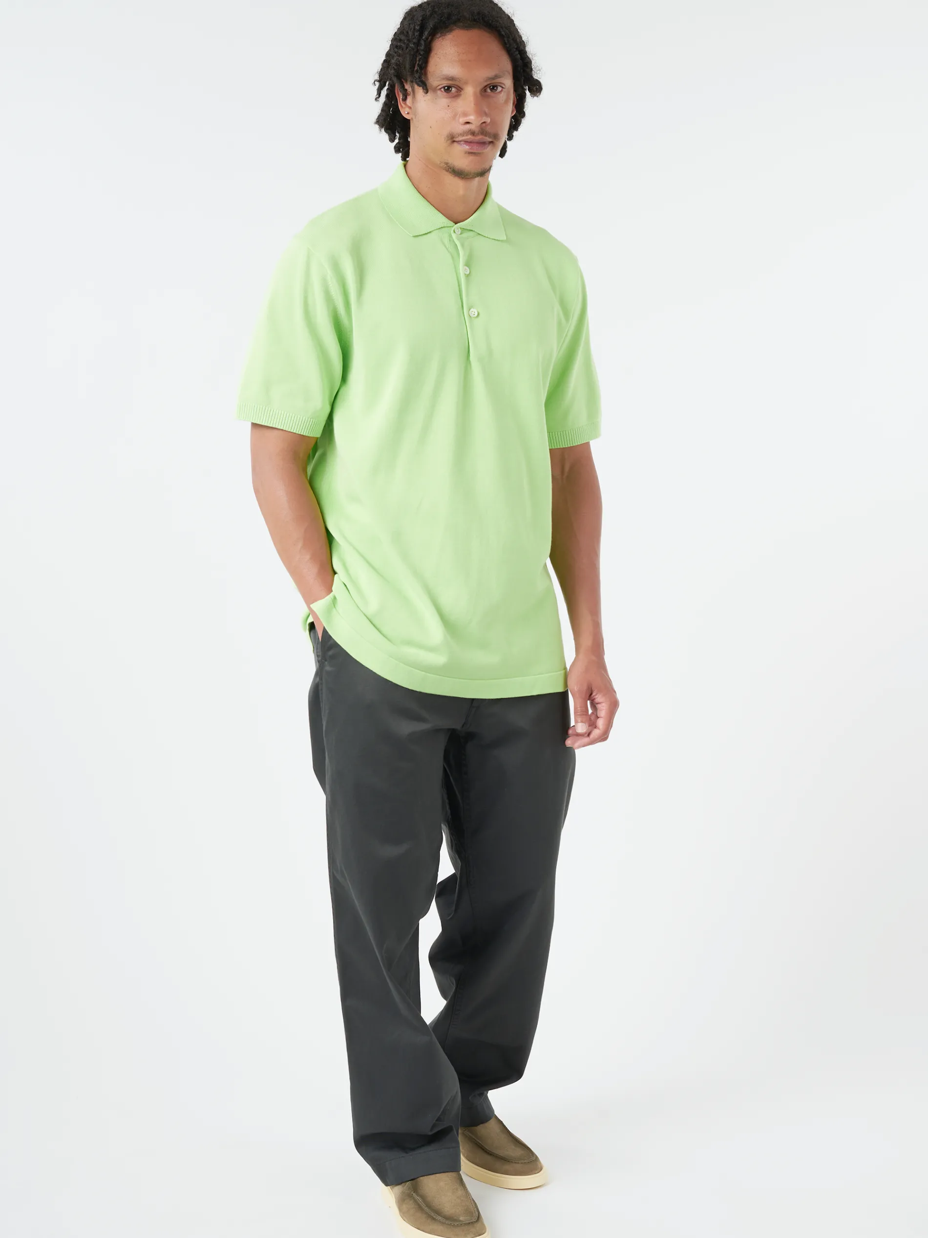 BEAMS PLUS short-sleeved polo shirt with a basic silhouette and simple design. Made with a 12-gauge fabric with a dry and crisp feel.