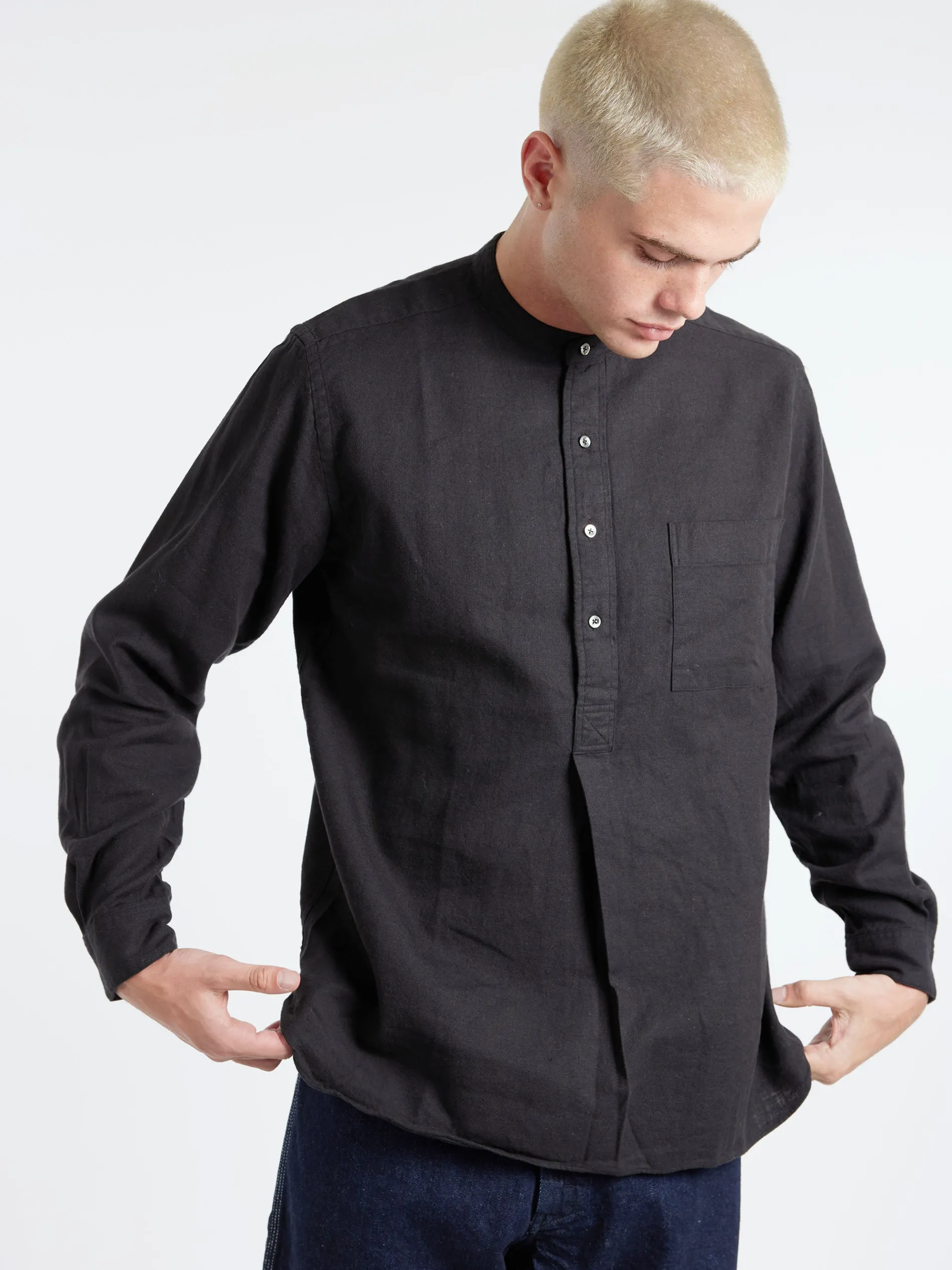Based on vintage workwear, this pullover shirt from BEAMS PLUS is crafted from a linen and cotton blend fabric and a herringbone weave. The fit is purposely loose for a relaxed vibe.