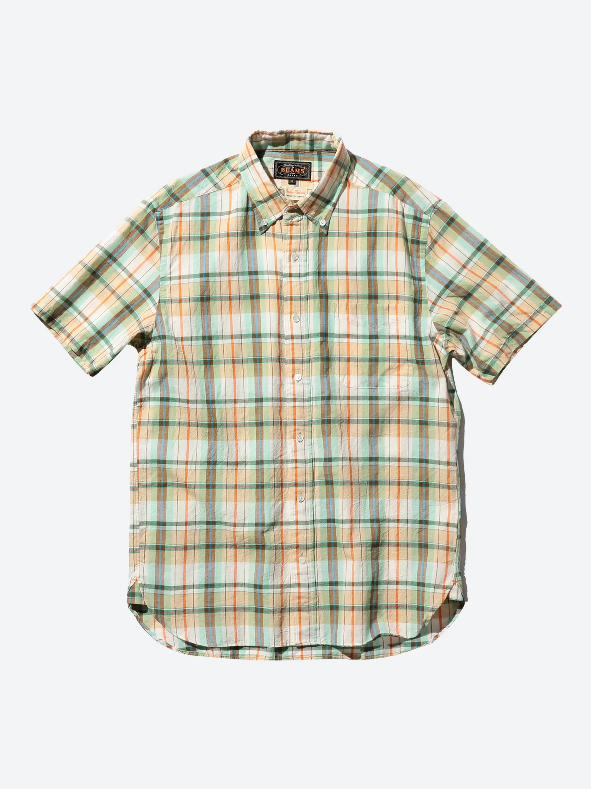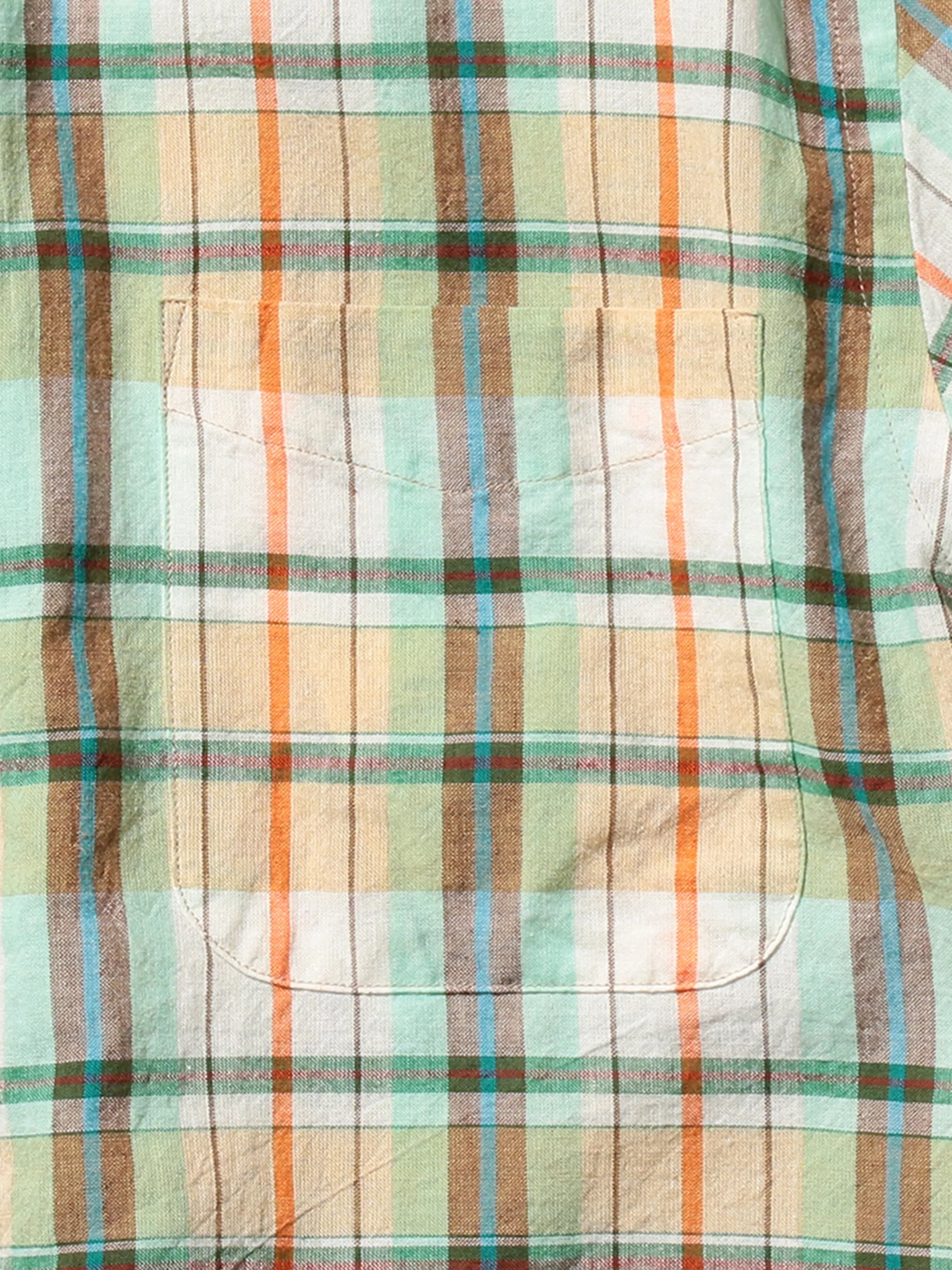The BEAMS PLUS button-down shirt draws inspiration from American traditional style shirts of the 1960s, featuring a classic, timeless pattern and a highly versatile silhouette. It uses traditional Madras check fabric, originally woven in the southeastern region of India. The fabric is hand-dyed, woven, and sun-dried, resulting in the lightness and breathable qualities unique to Indian cotton. This shirt combines vintage appeal with exceptional craftsmanship for a stylish, functional addition to any wardrobe.