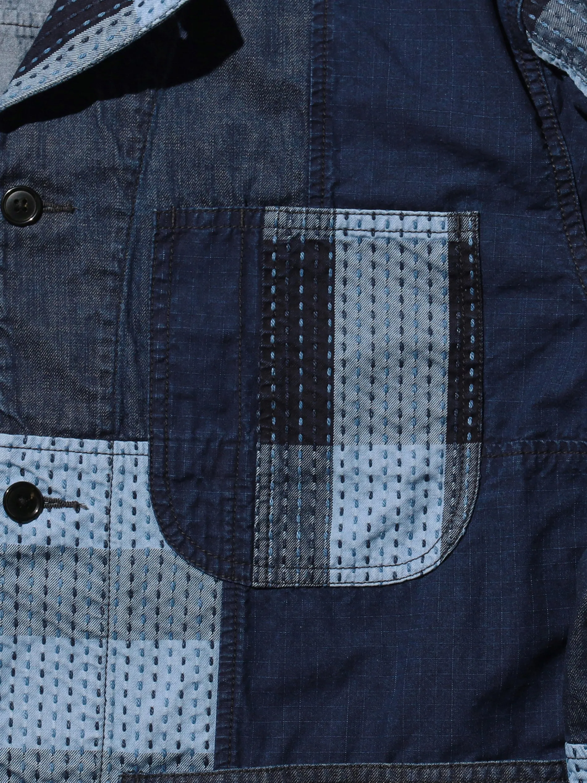The BEAMS PLUS military chore jacket is inspired by the US NAVY P-1941HBT coverall from the 1940s. Made entirely from genuine indigo, a special loom is used to skip the warp threads, creating a hand-sewn-like pattern. Featuring a chest pocket with a pen holder that evokes a vintage feel, the jacket also includes a zip pocket inside the waist pocket, offering a functional double-pocket design.