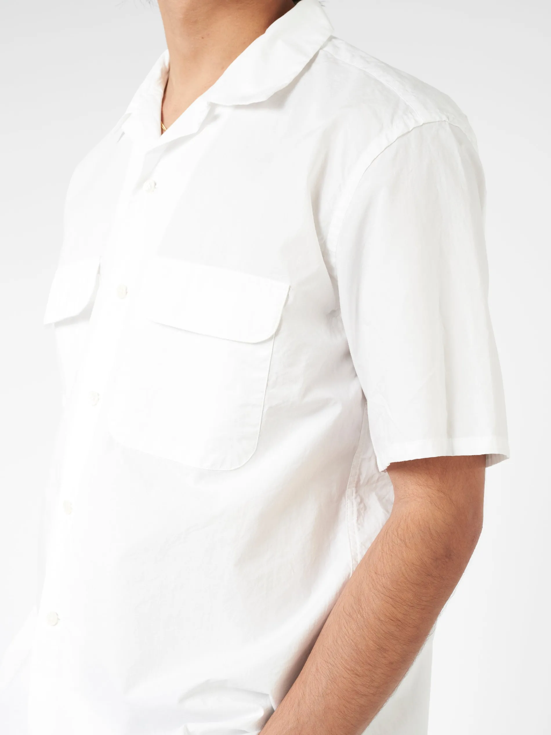 BEAMS PLUS open collar shirt using rare super-long staple Pima cotton. It features a high-quality and supple texture.