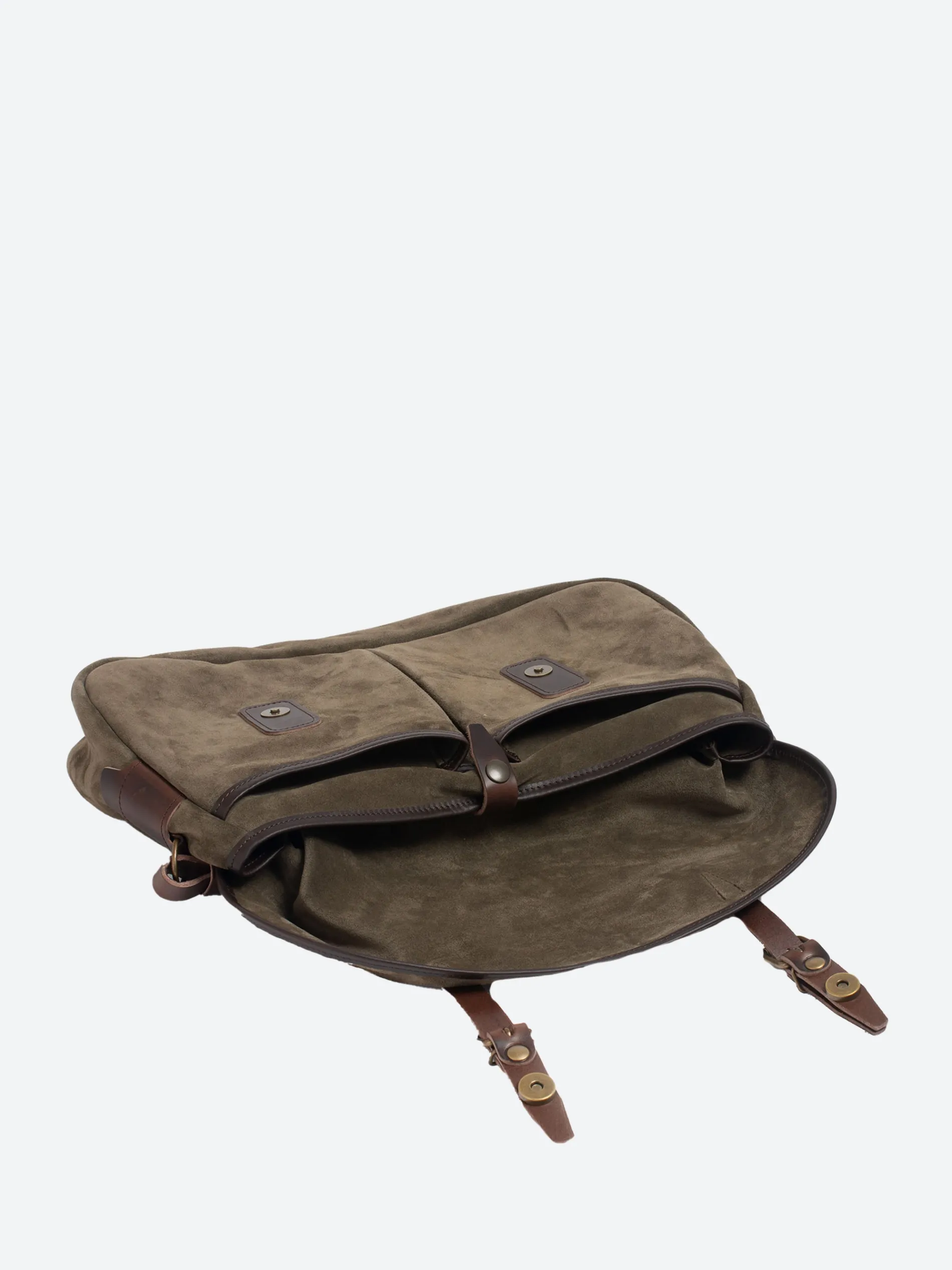 - Three outside pockets: two under the front flap and one patch pocket on the back