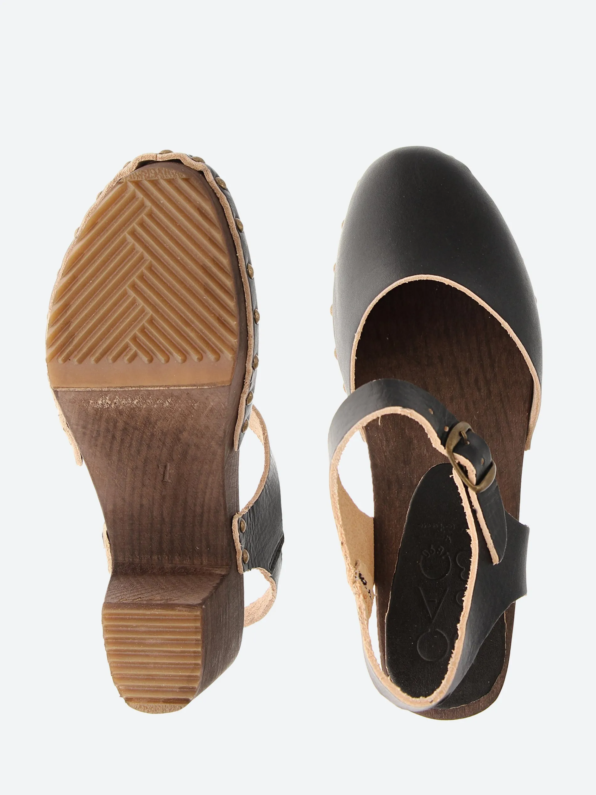 Outsole: wood with rubber inserts