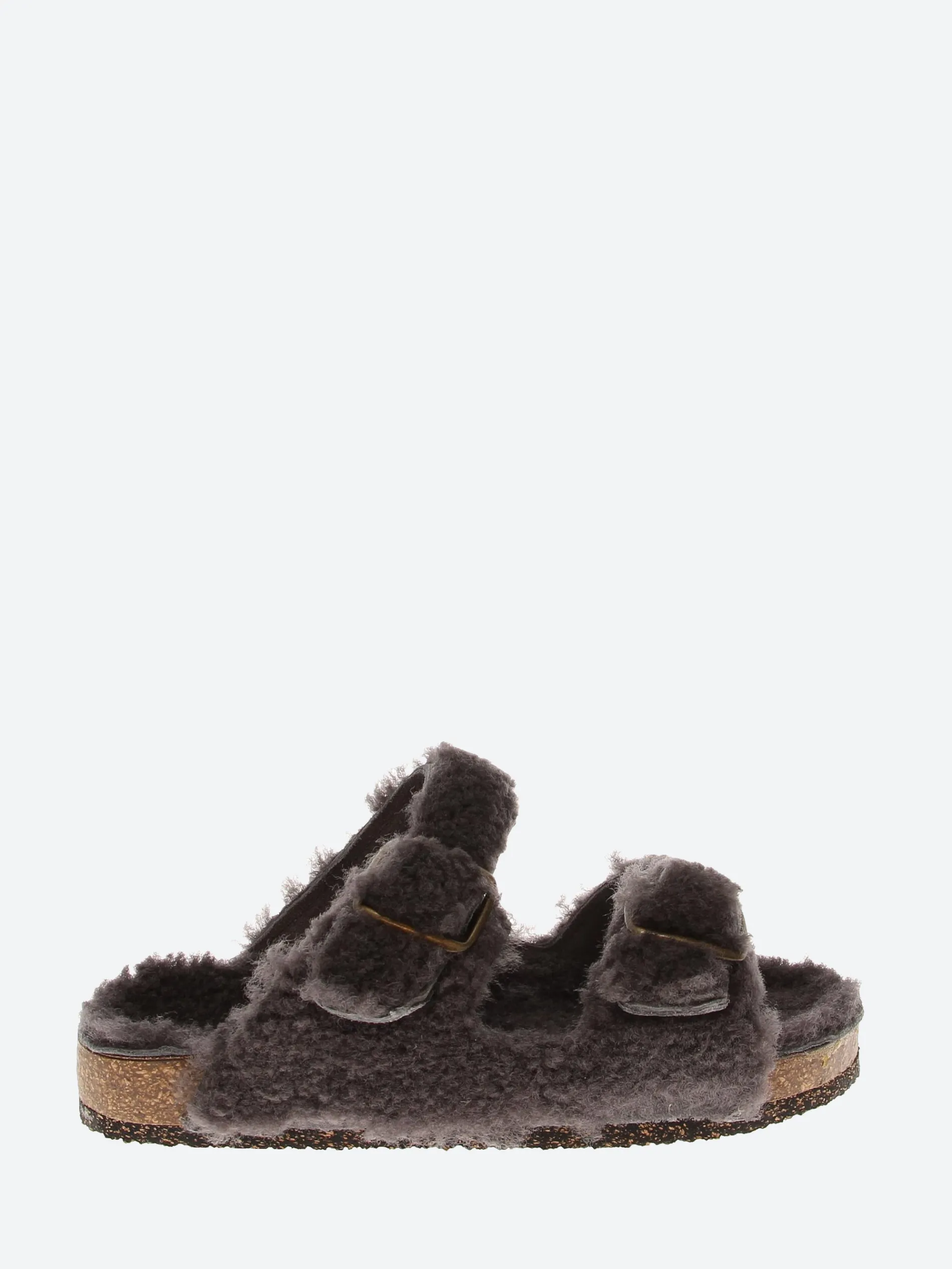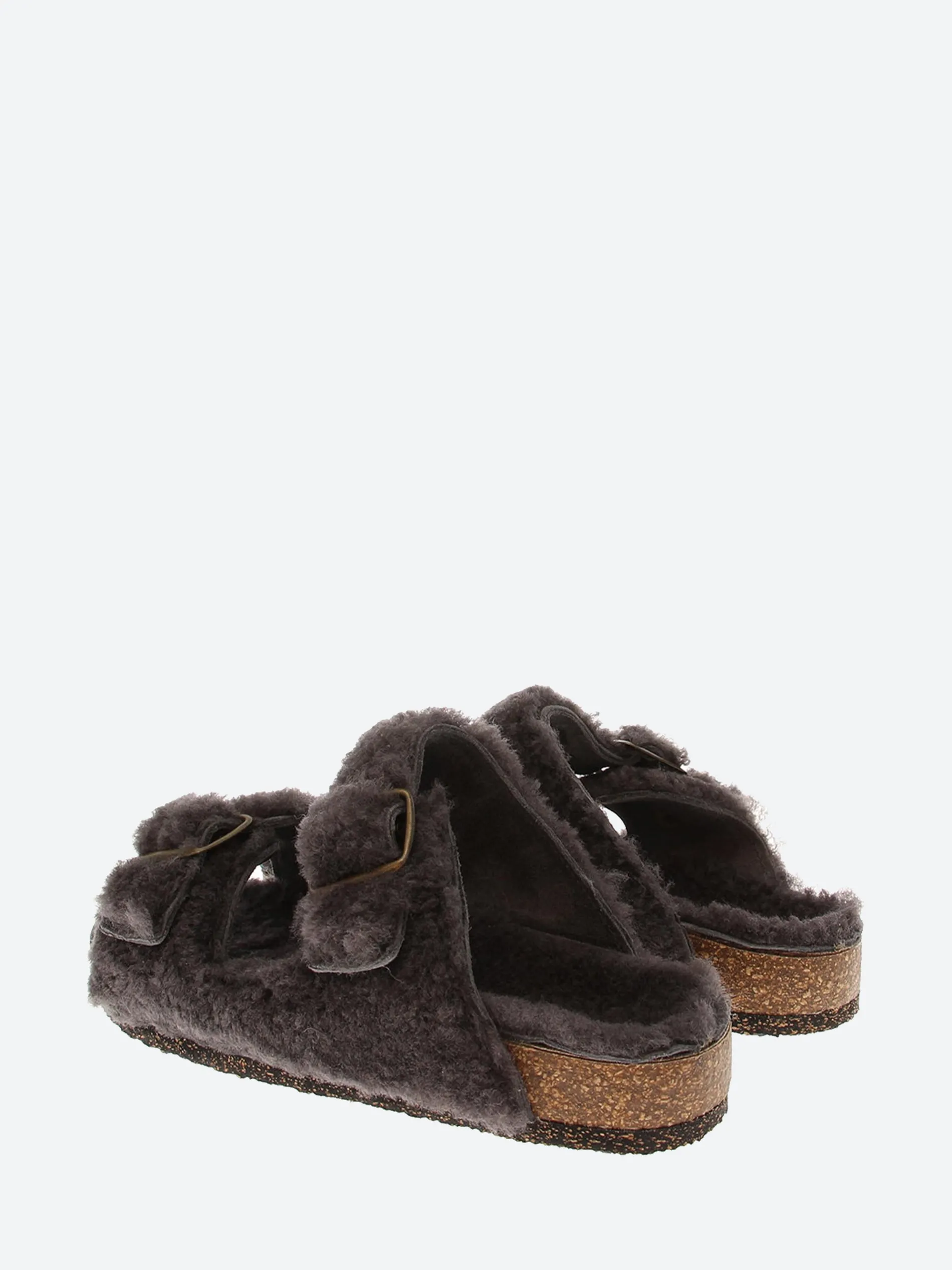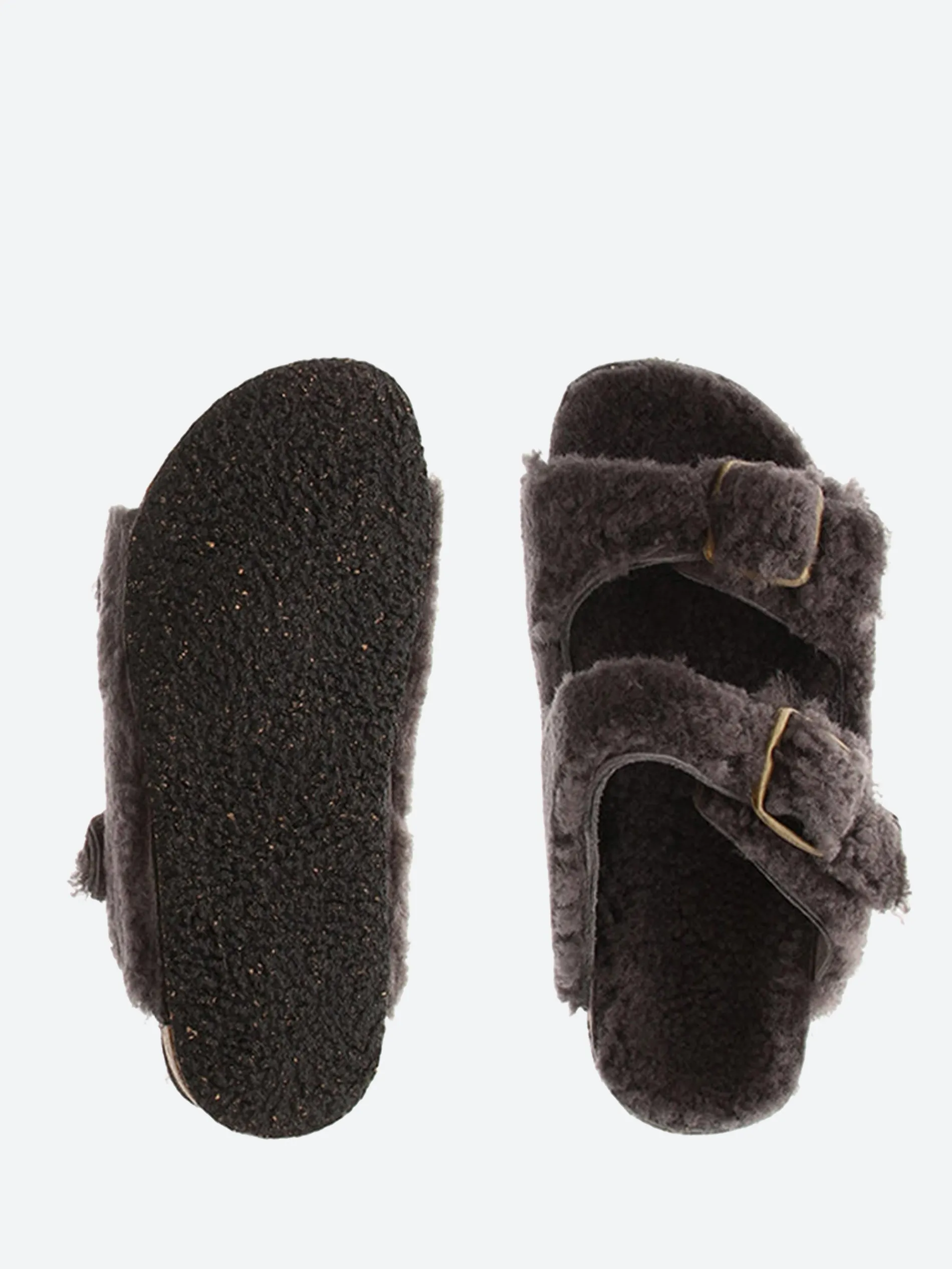 Sandal with sheepskin leather upper and sheepskin leather insole.