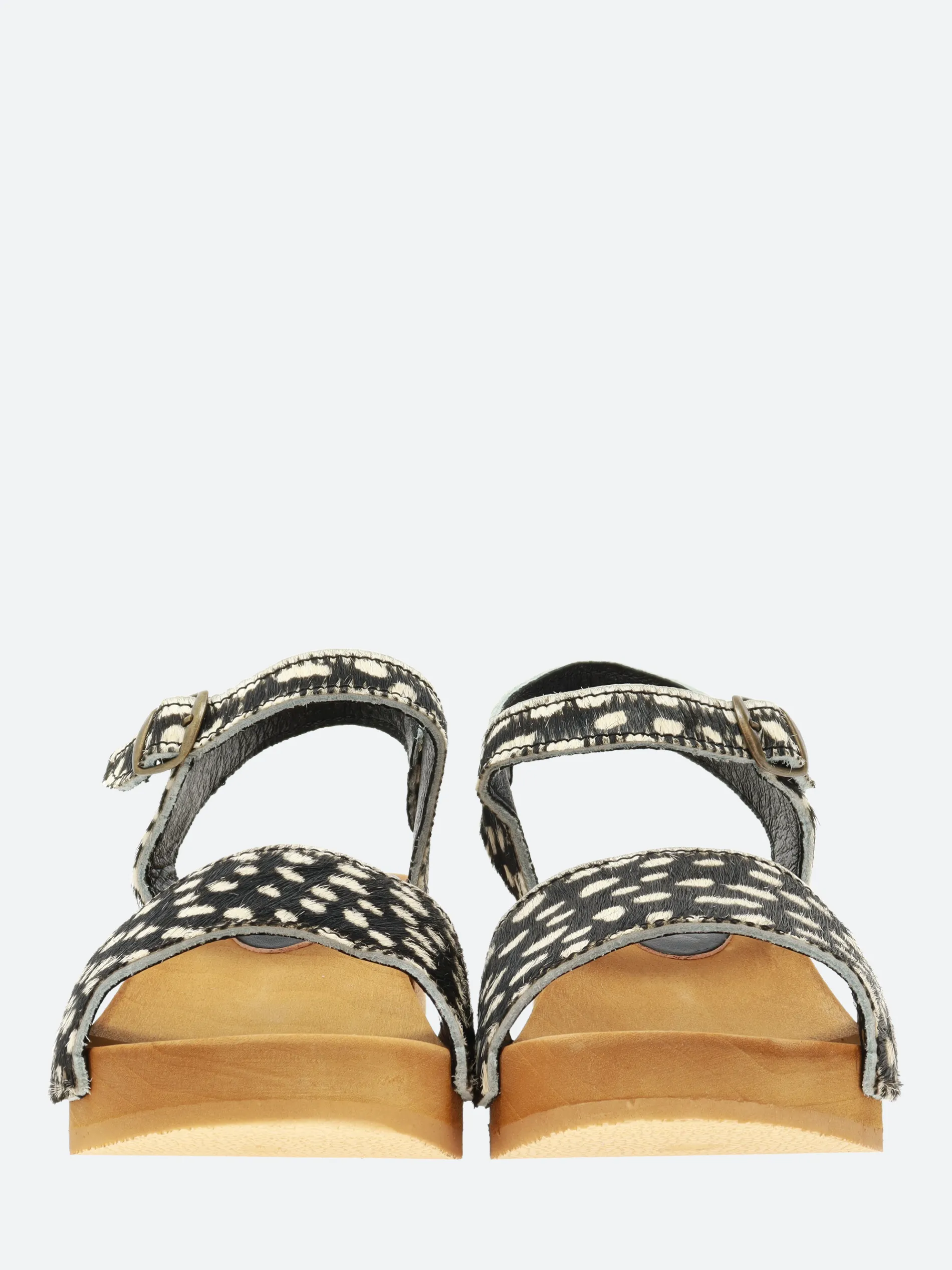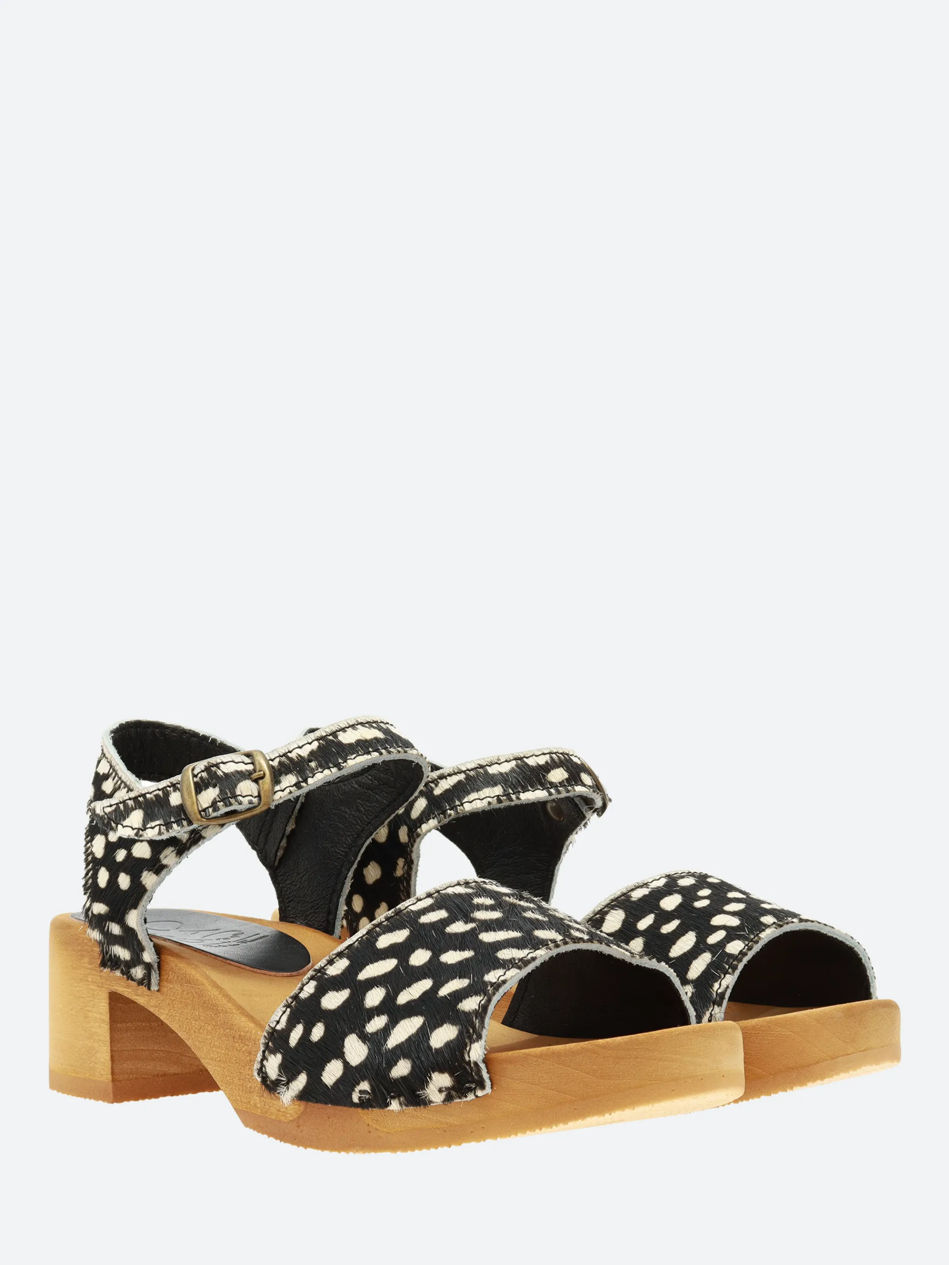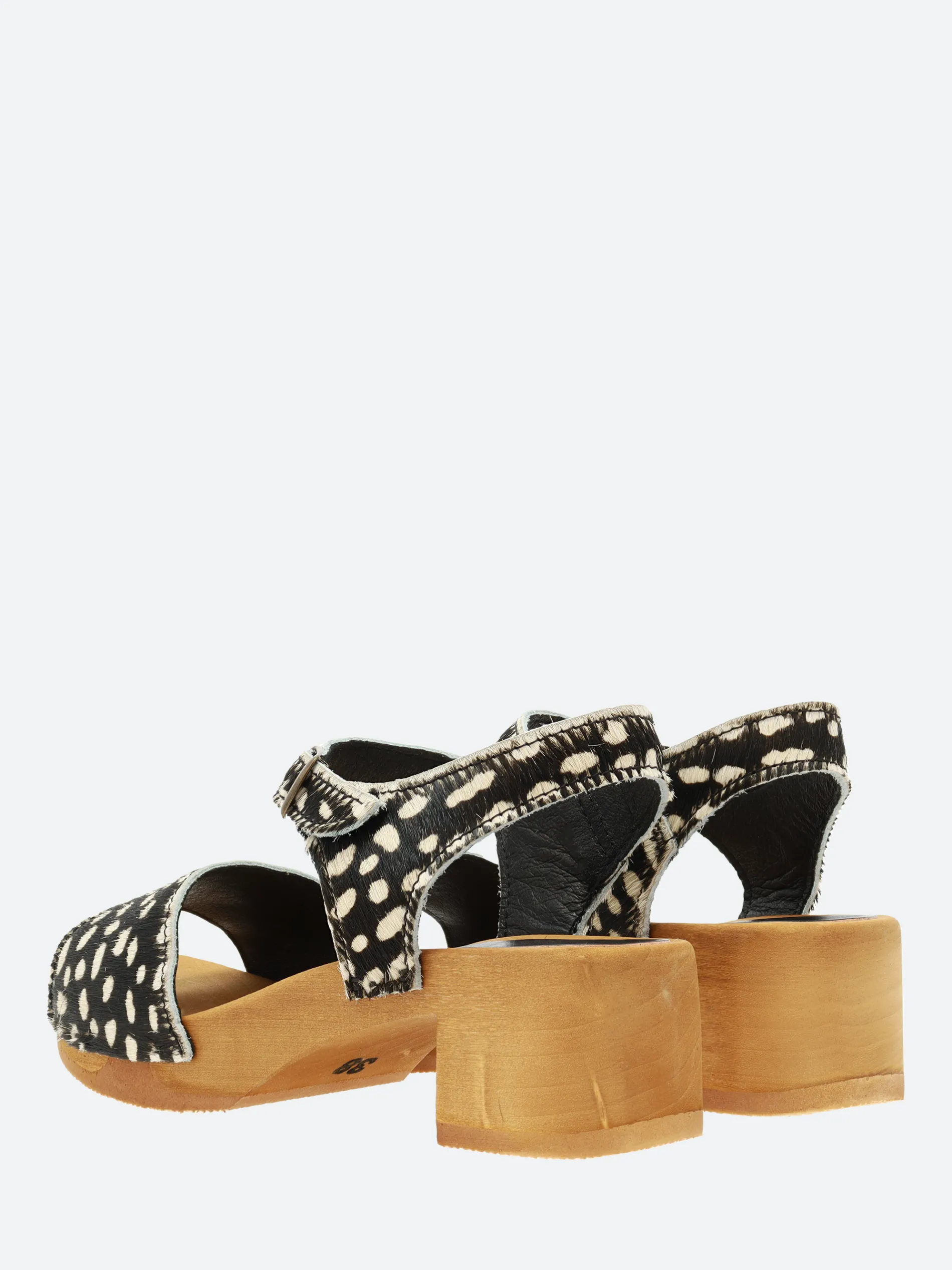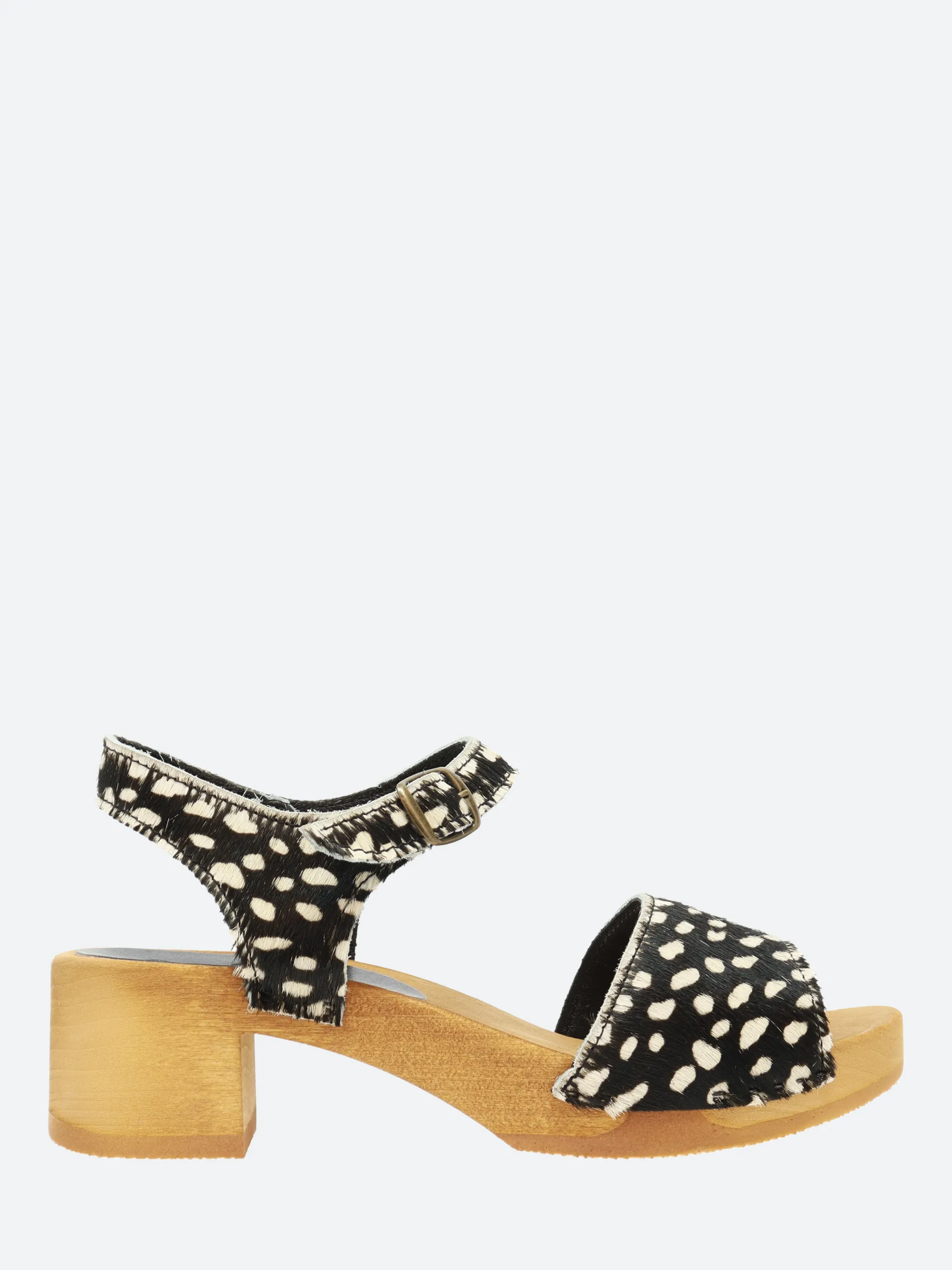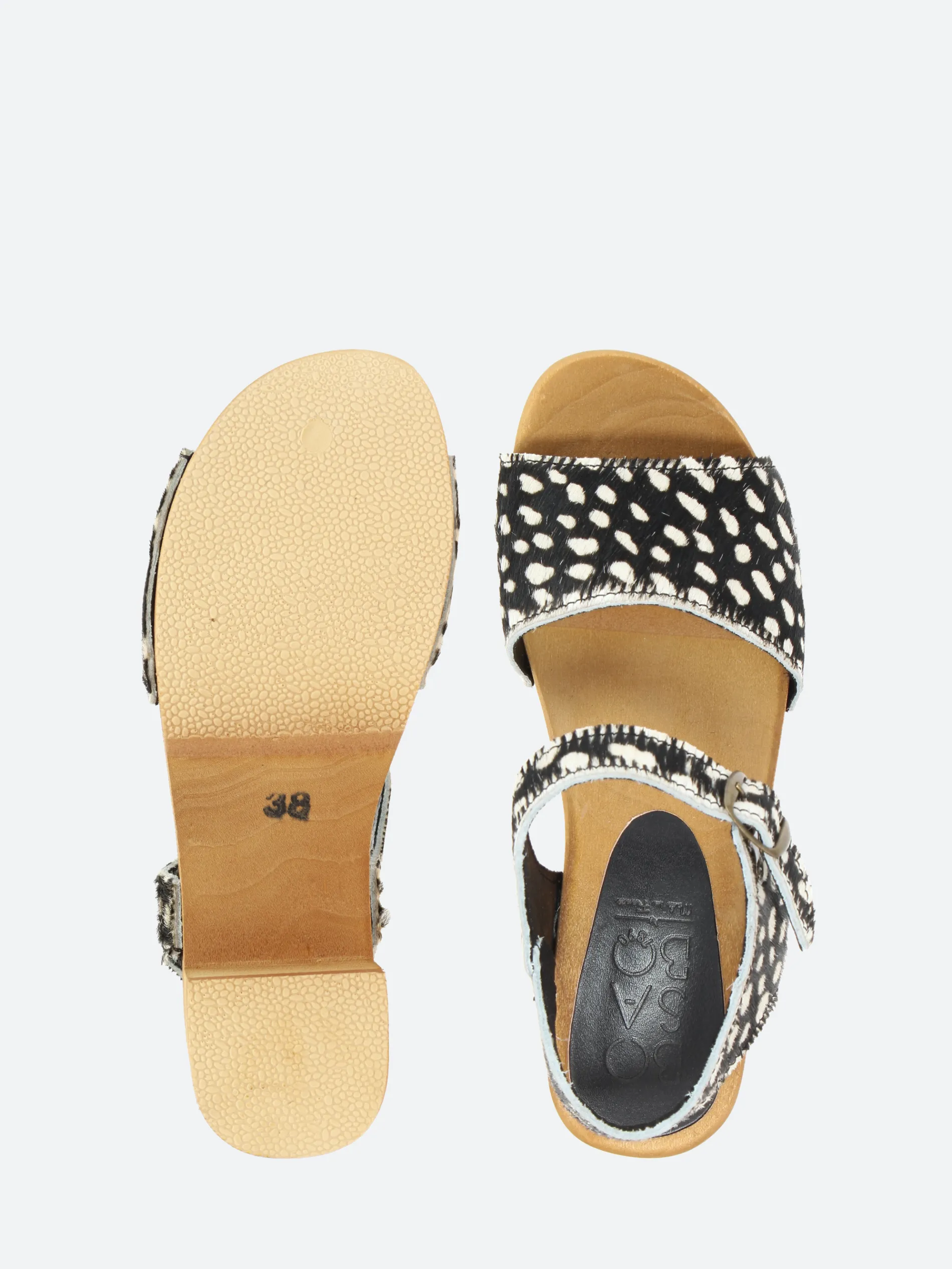 This elegant Bosabo sandal will accompany you to all your summer events. Its adjustable ankle strap and minimal front strap dress the foot, as the flexible wooden sole with an intermediate heel provides comfort while keeping a feminine look.