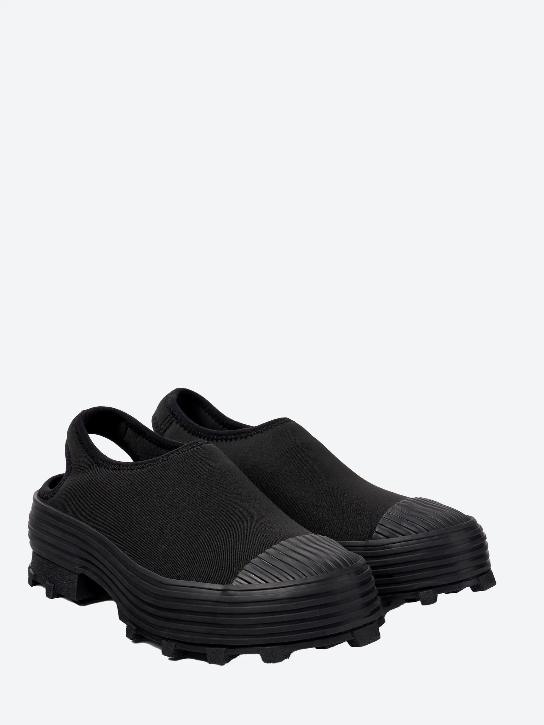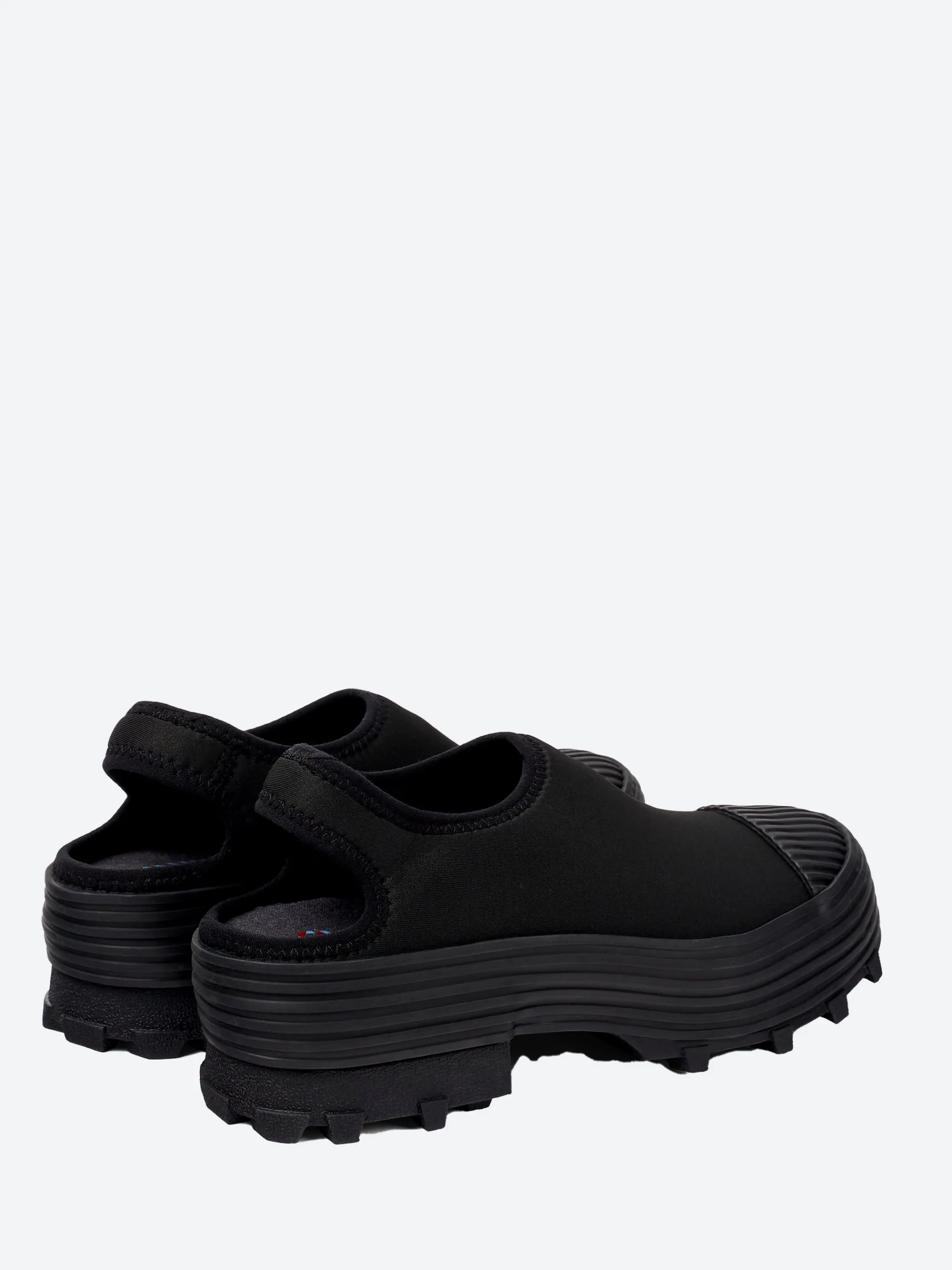 Clogs with recycled PET Neoprene, OrthoLite® Recycled™ footbeds, and rubber outsoles.
