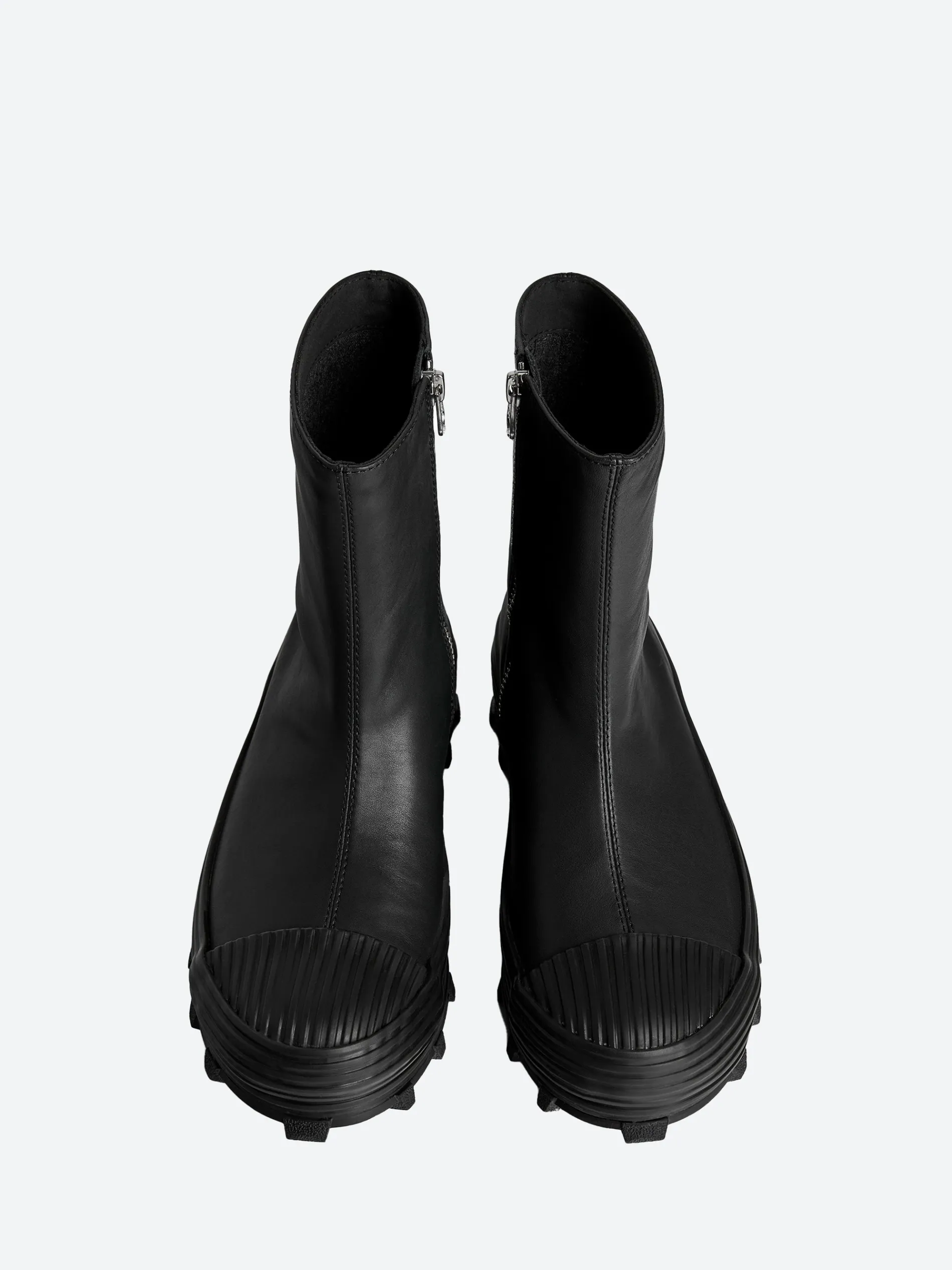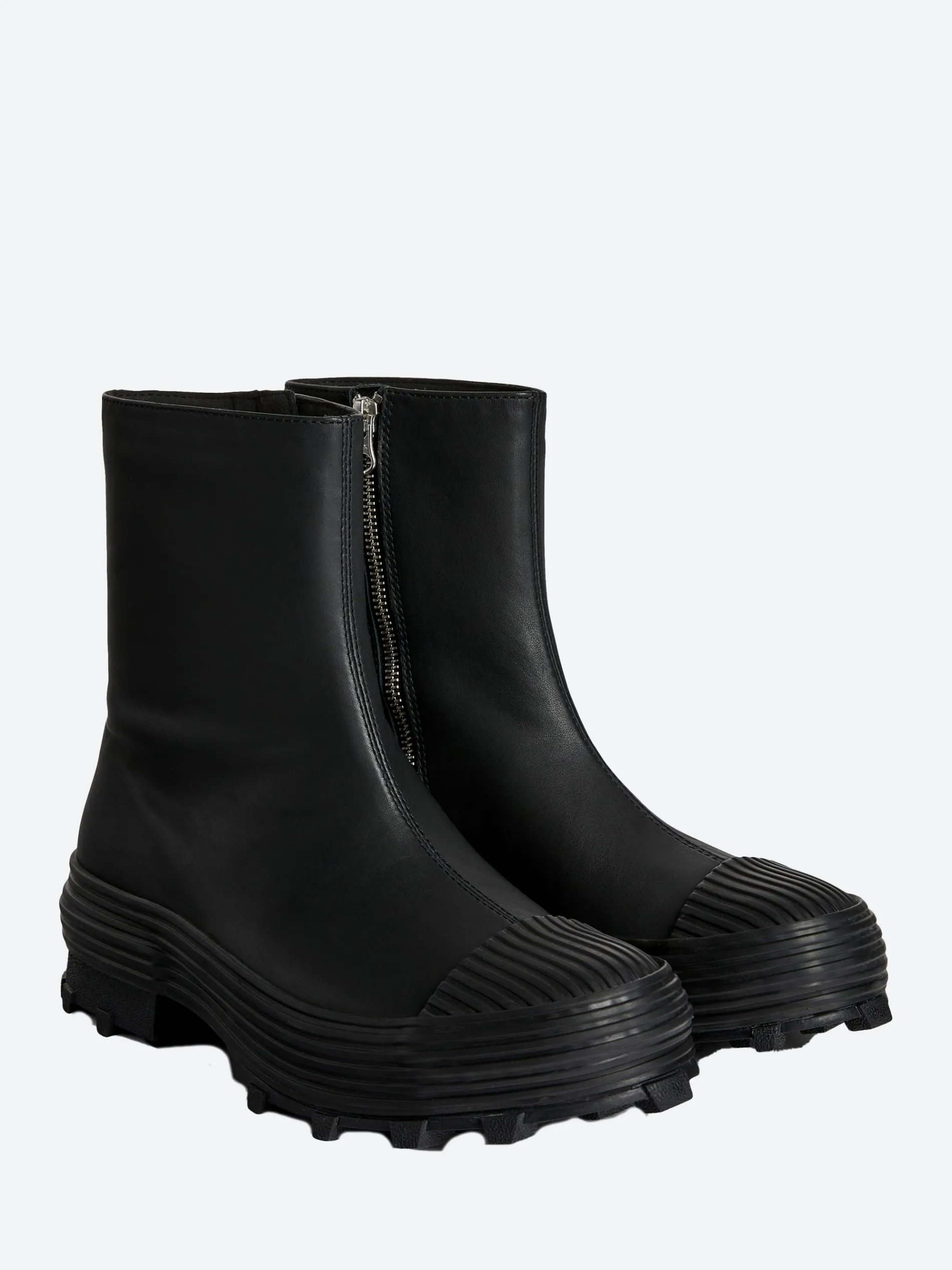 Vulcanized leather zip boots with toothed rubber outsoles and OrthoLite cushioned footbeds.