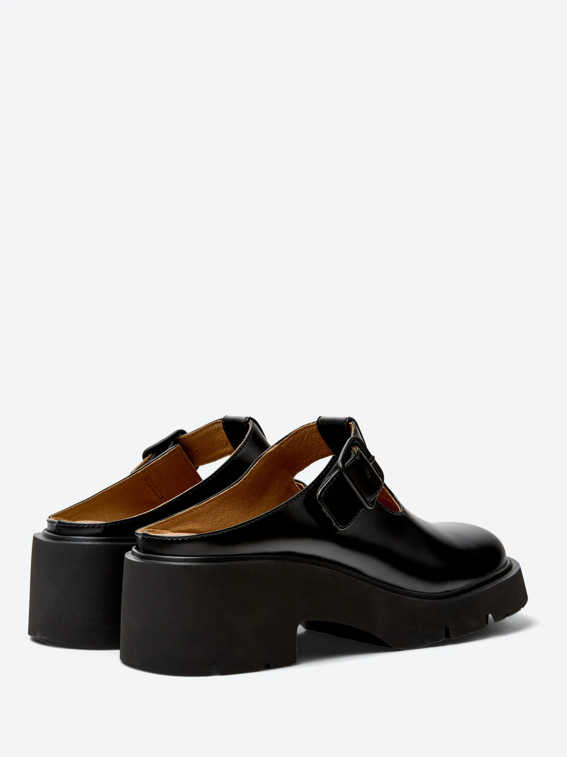 - Adjustable T-bar strap with tonal buckle closure