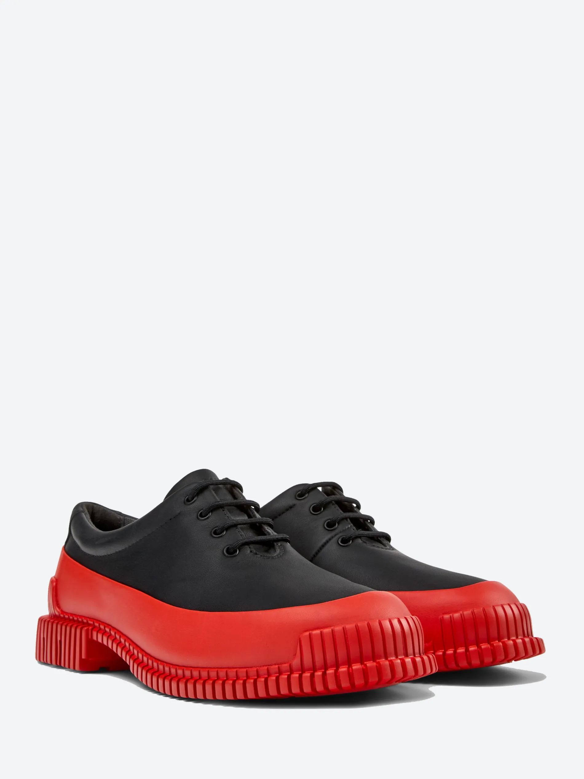Camper Pix are playful in shape, with smooth leather and a sport grade outsole for superior flexibility. The iconic 3D outsoles beneath are incorporated with X-shaped torsion technology for enhanced stability.