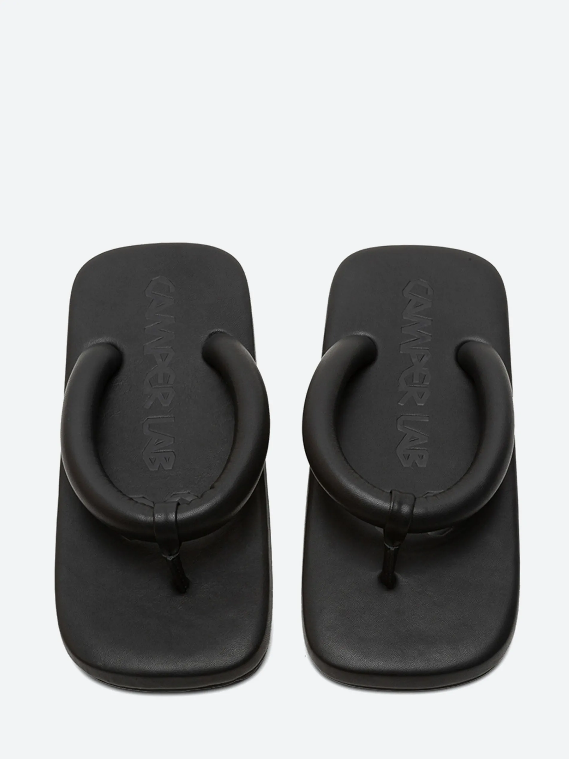 Leather flip-flop sandals with squared design and memory foam footbed. Comes with split-toe tabi socks made of embossed organic cotton in matching colour.
