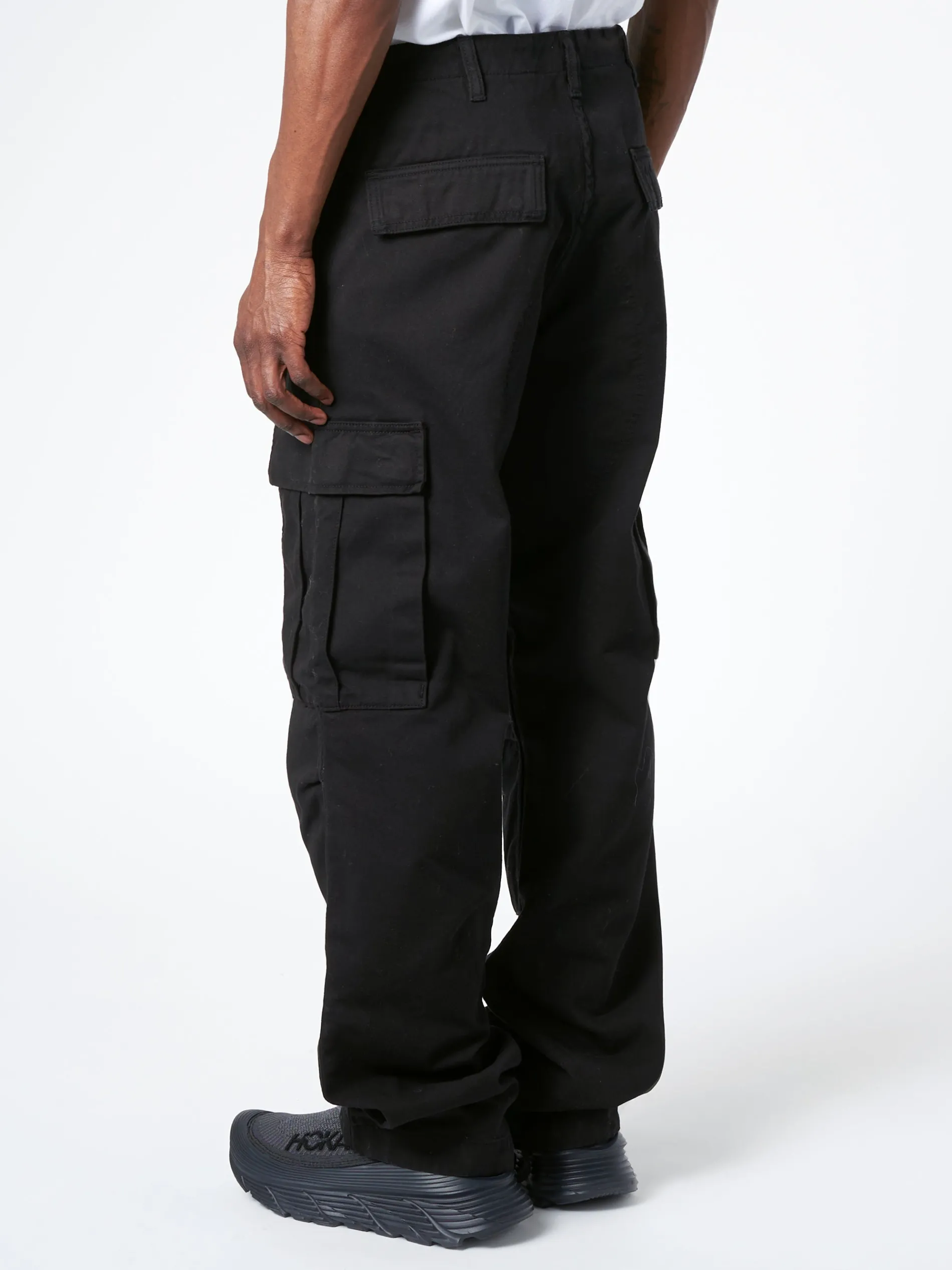 The Regular Cargo Pant is constructed from durable Moraga twill, which is a midweight organic cotton fabric that has been garment-dyed, resulting in a softer feel.