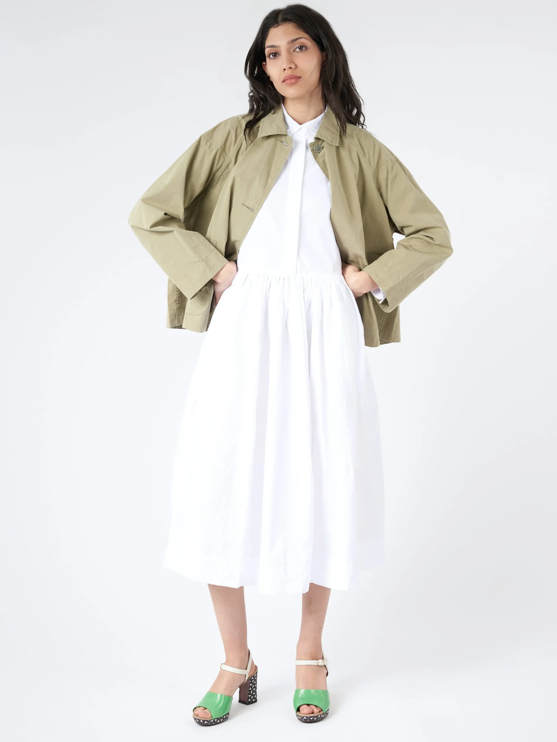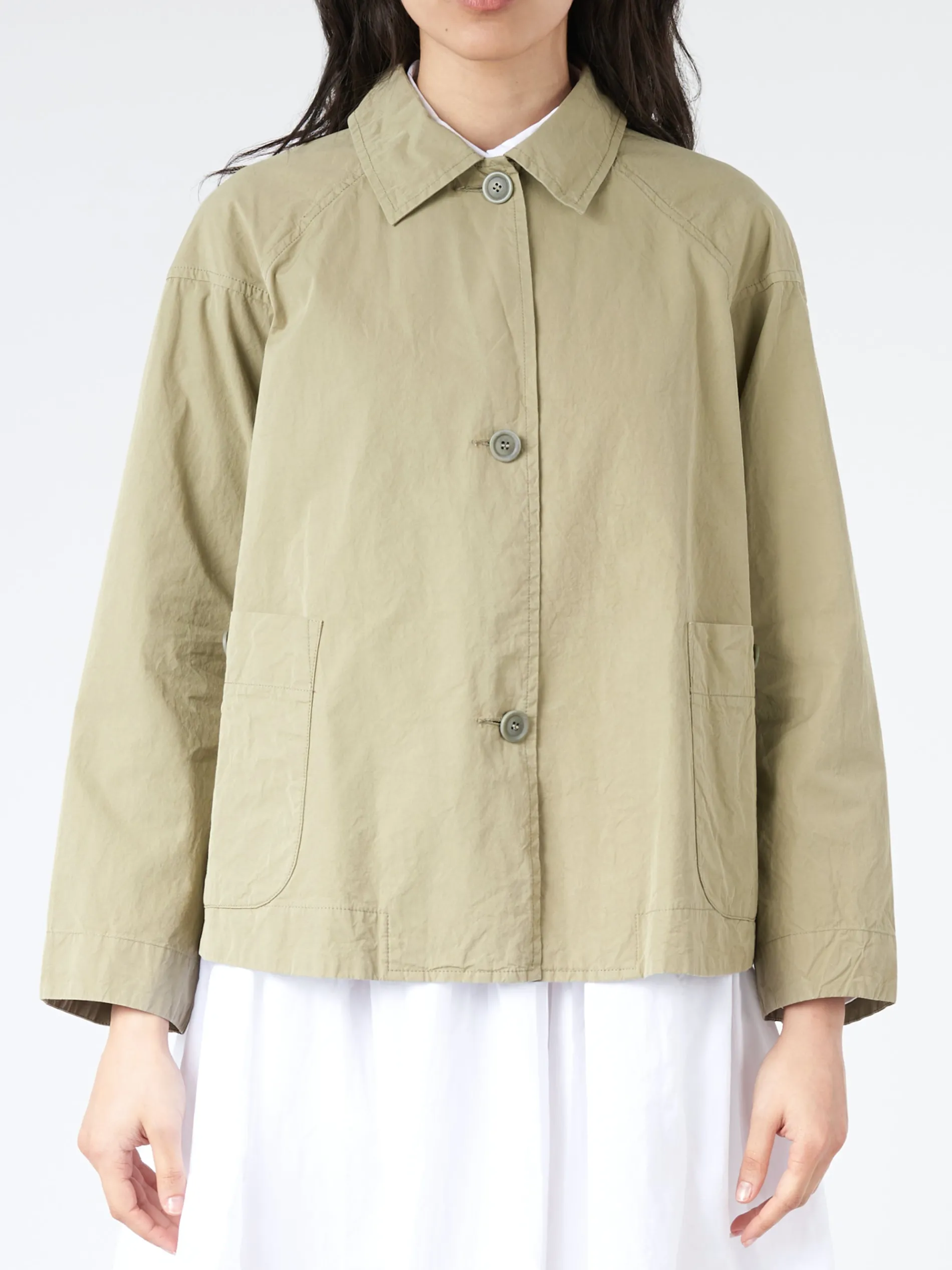Casey Casey jacket in a regular weight cotton fabric with single-fold Egyptian cotton threads. Dyed in yarn for deep colour.