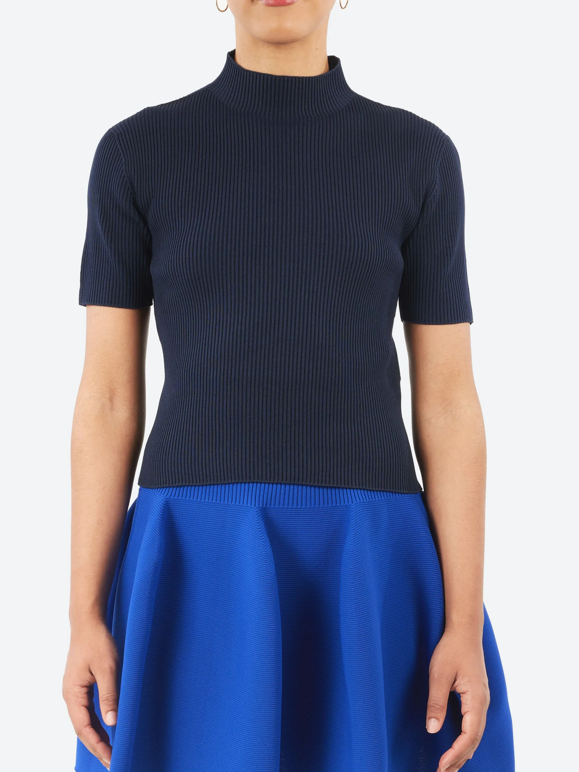 The CFCL Portrait Short Sleeve Top is made from a smooth cupro knit fabric. It boasts a mockneck, a form-fitting shape, and a cropped length, all finished with a seamless design for a sleek, contemporary style. Ideal for both layering and standalone wear.