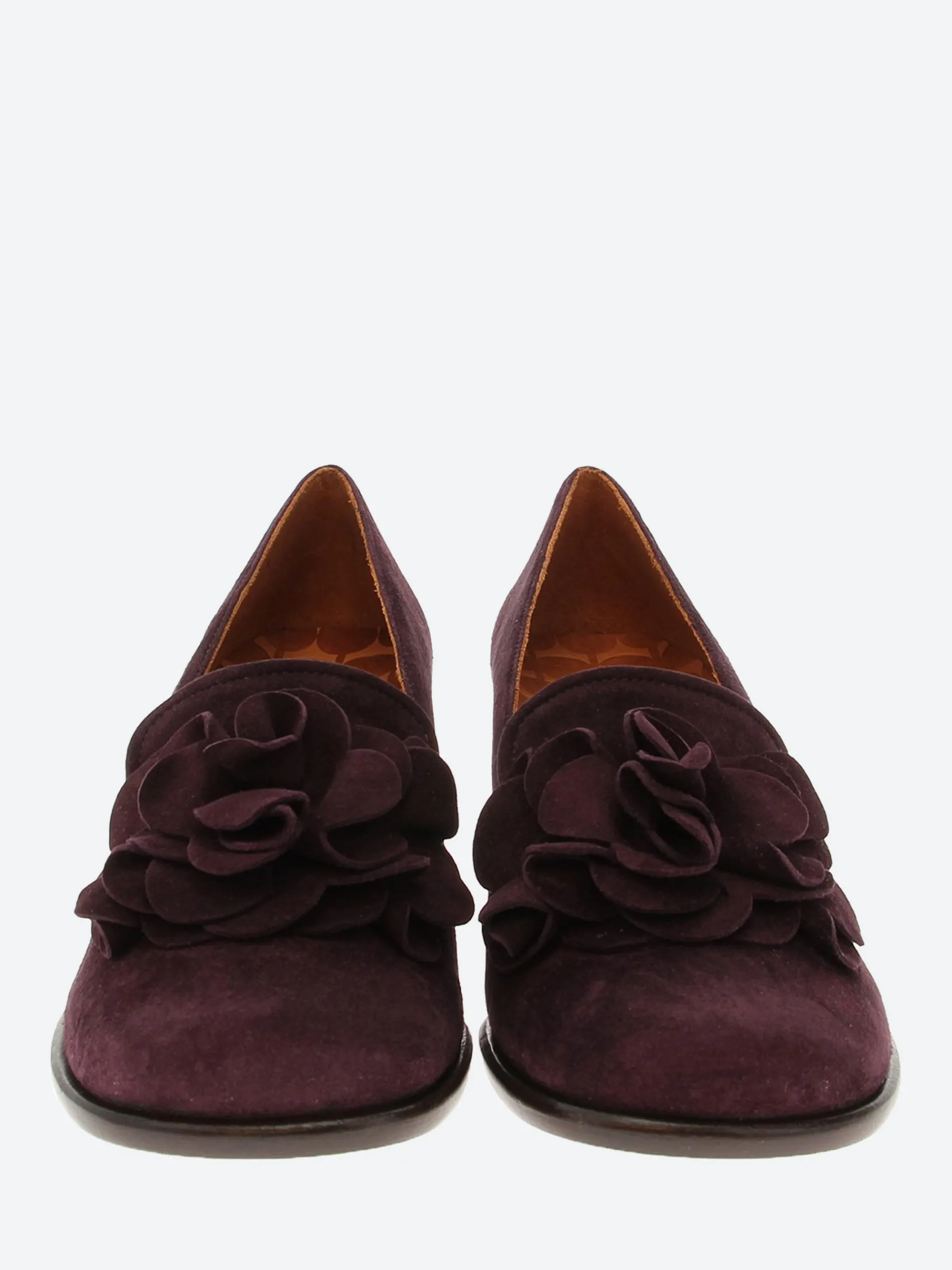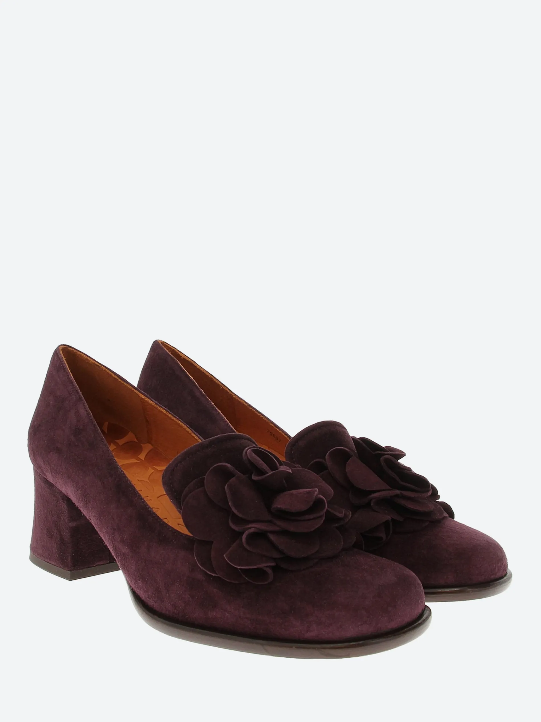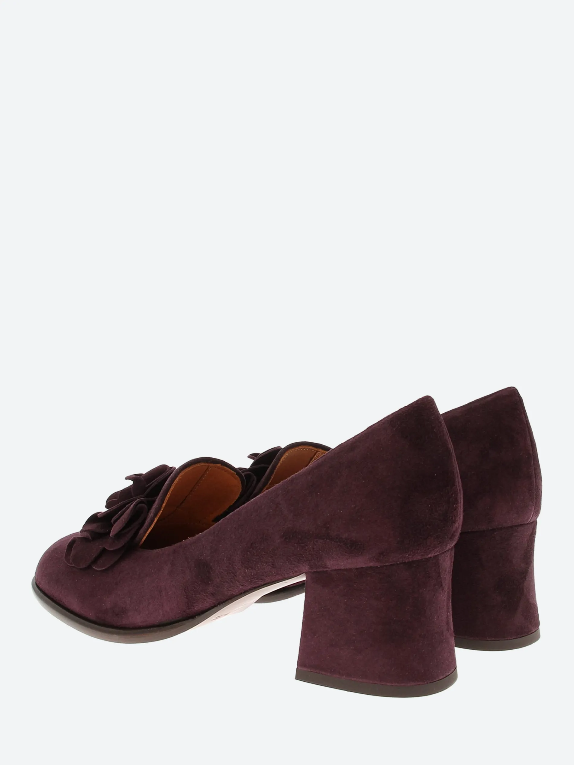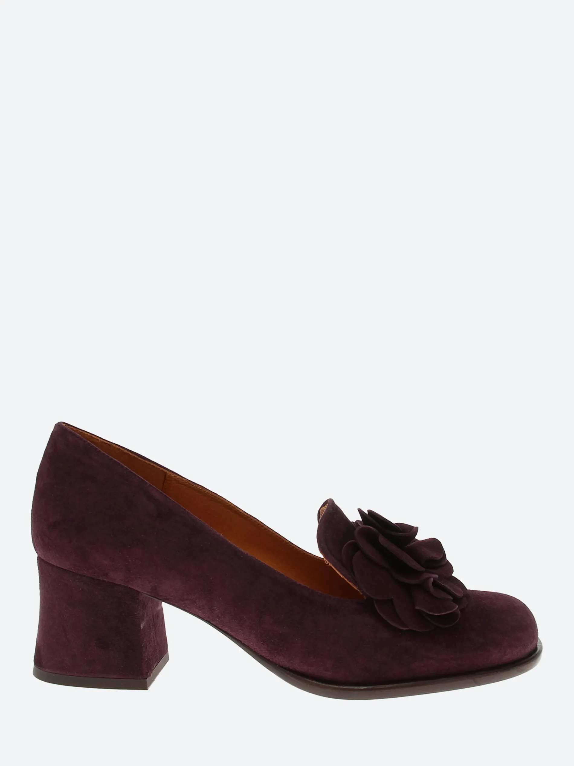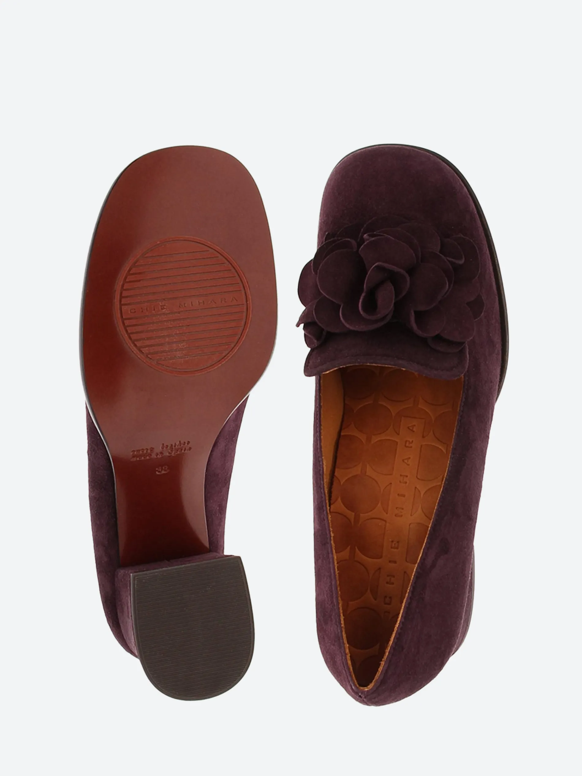 Chie Mihara Maha suede pumps with a floral-applique at the vamp.