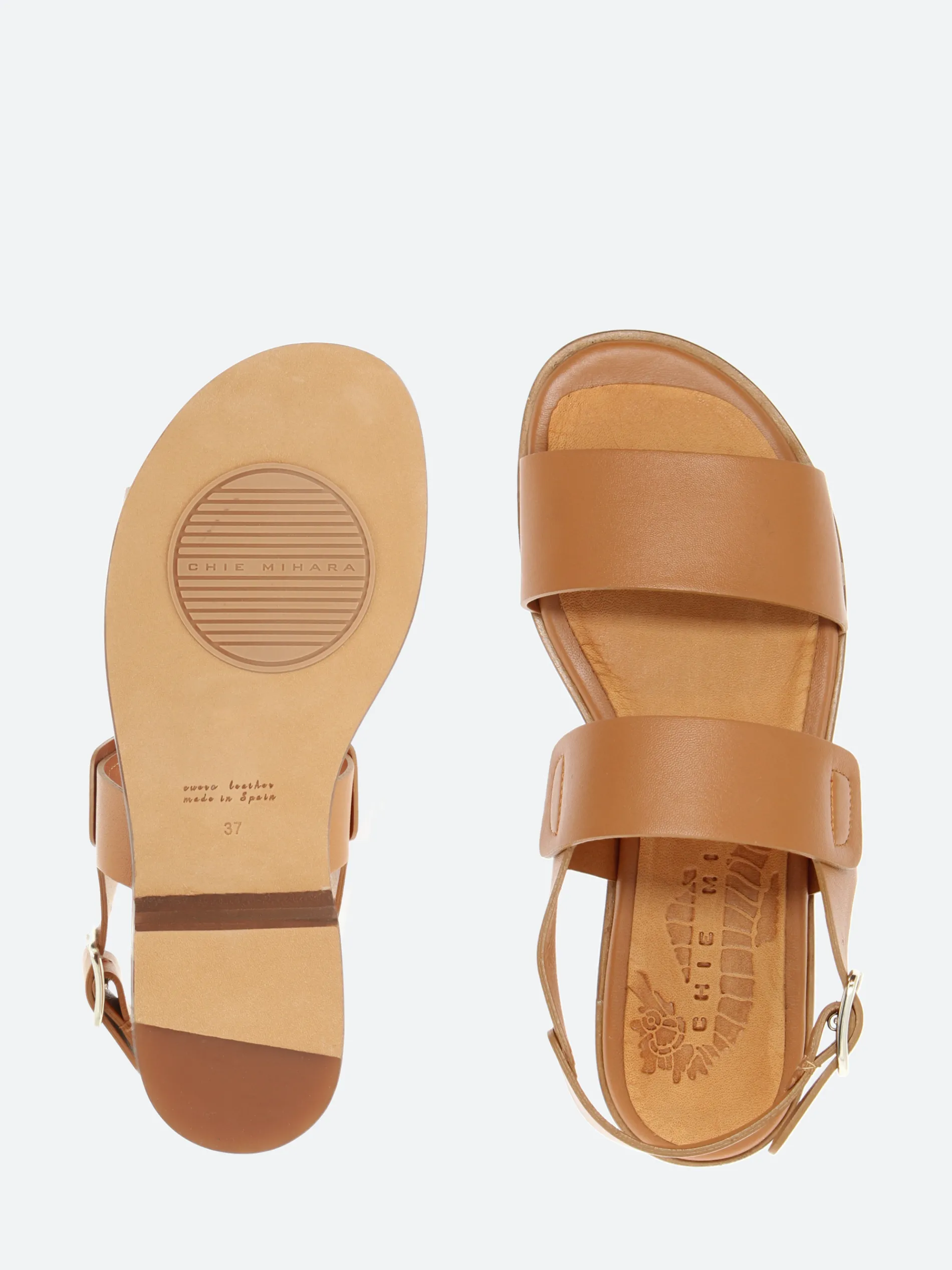 Chie Mihara Wadel flat sandals made from soft rustic leather. Soft leather lining for all-day comfort.