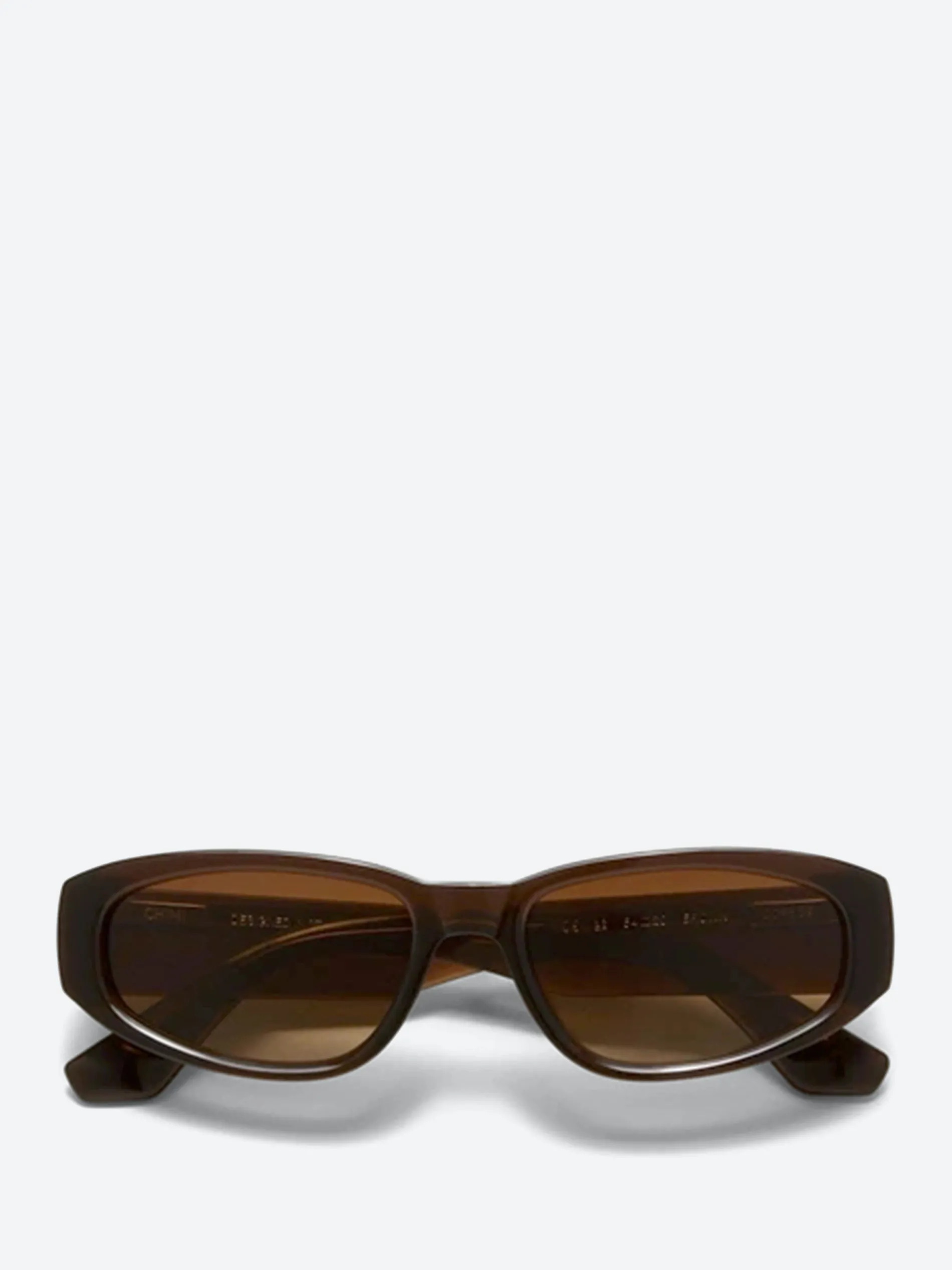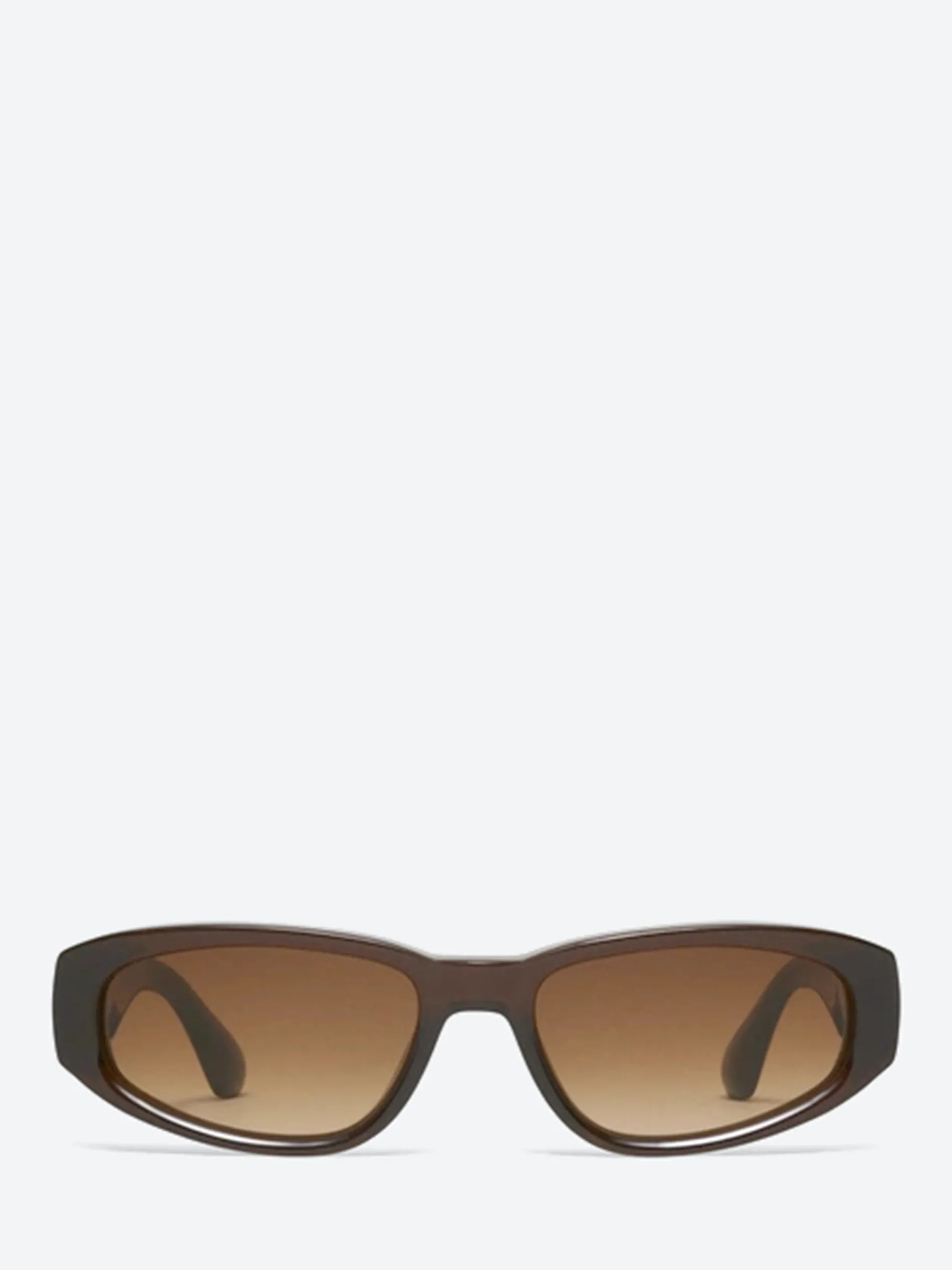 Curvaceous oval sunglasses, hand-crafted with premium Italian acetate and flat lenses.