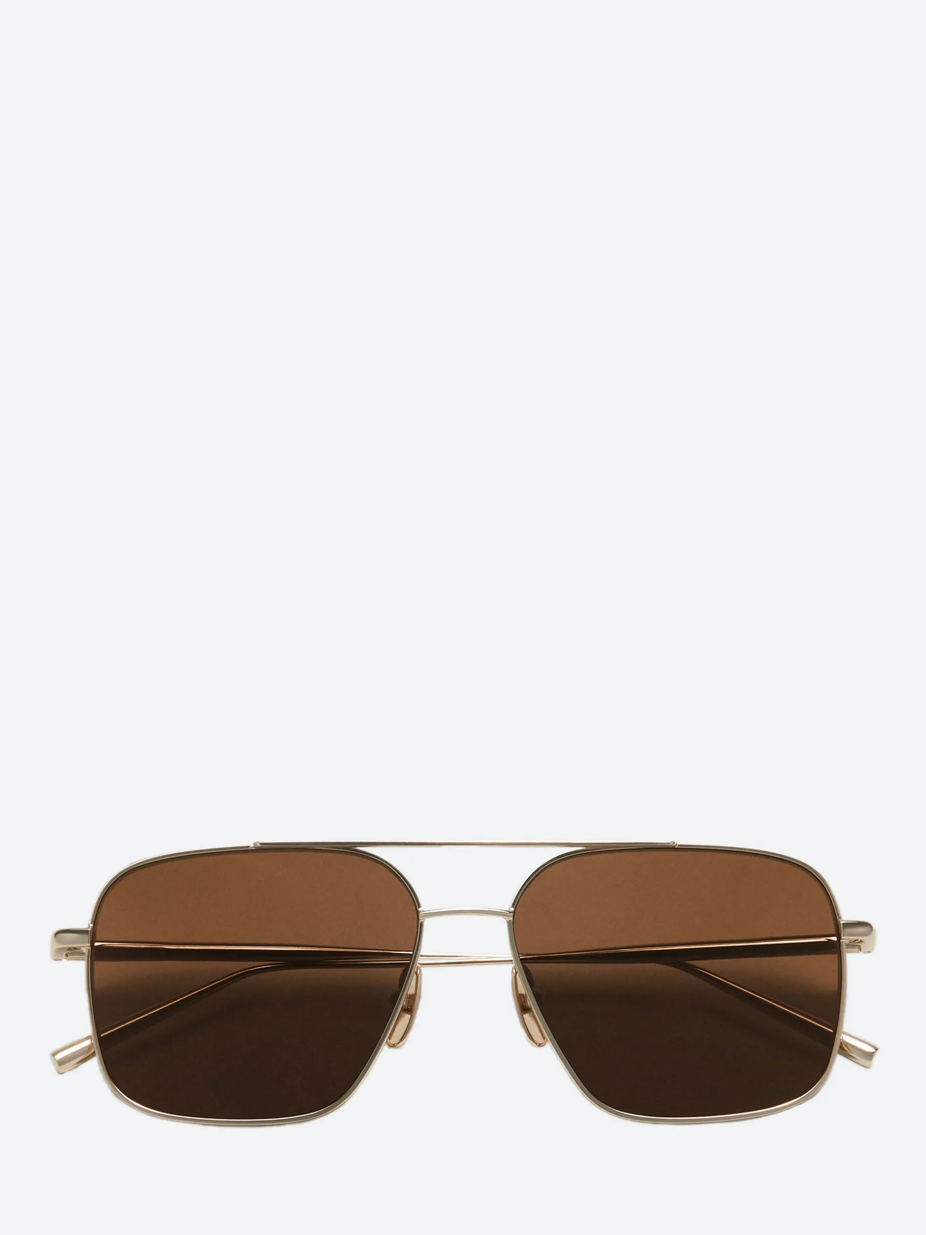Bold minimalism defines Aviator, a contemporary take on the classic rectangular silhouette. The lightweight frame is handcrafted in shiny stainless steel with slim cylinder-shaped temples and finished with a brow bar.