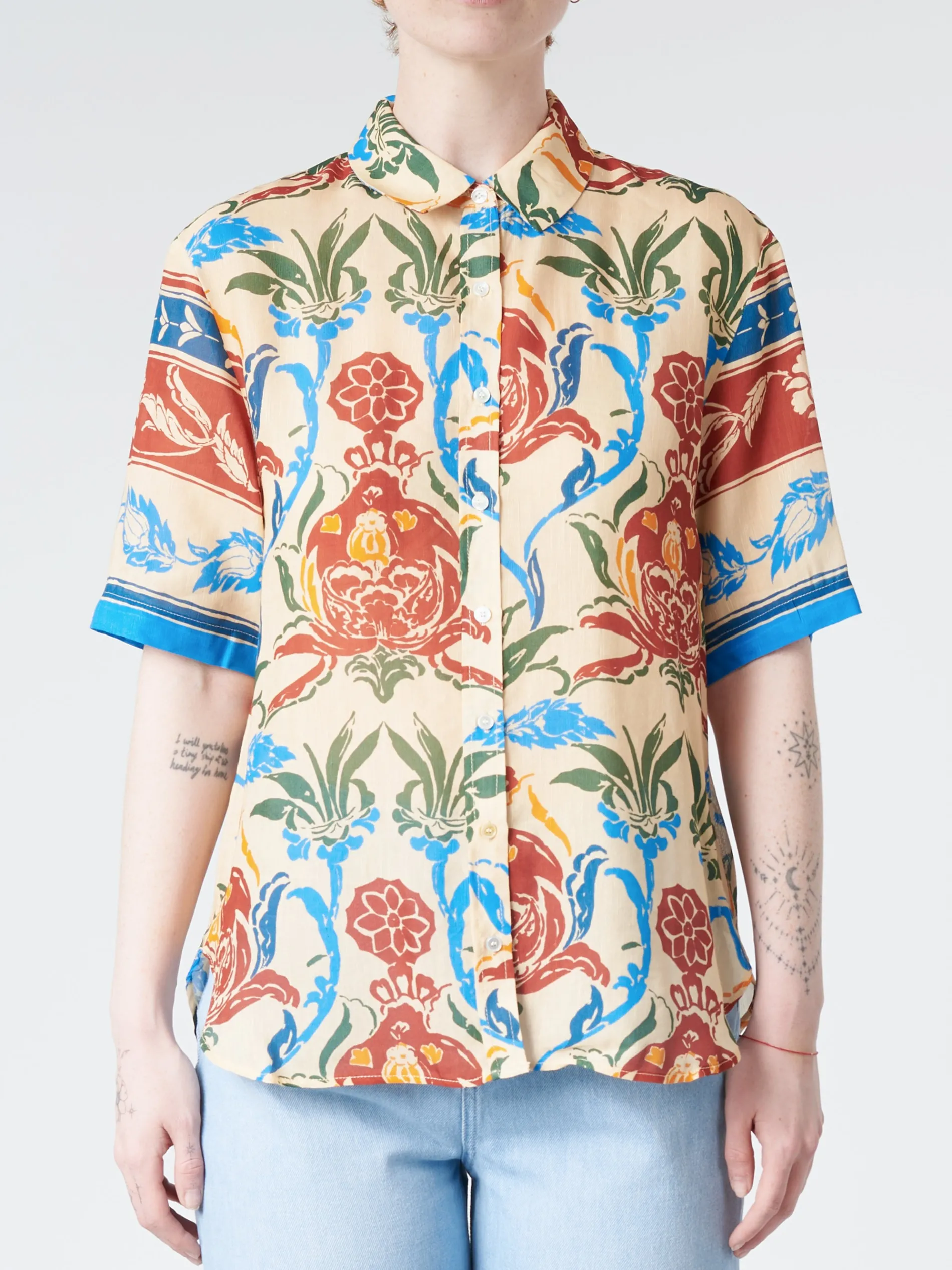 Short sleeve button up shirt with a seasonal floral print, made from a light, airy linen-viscose.