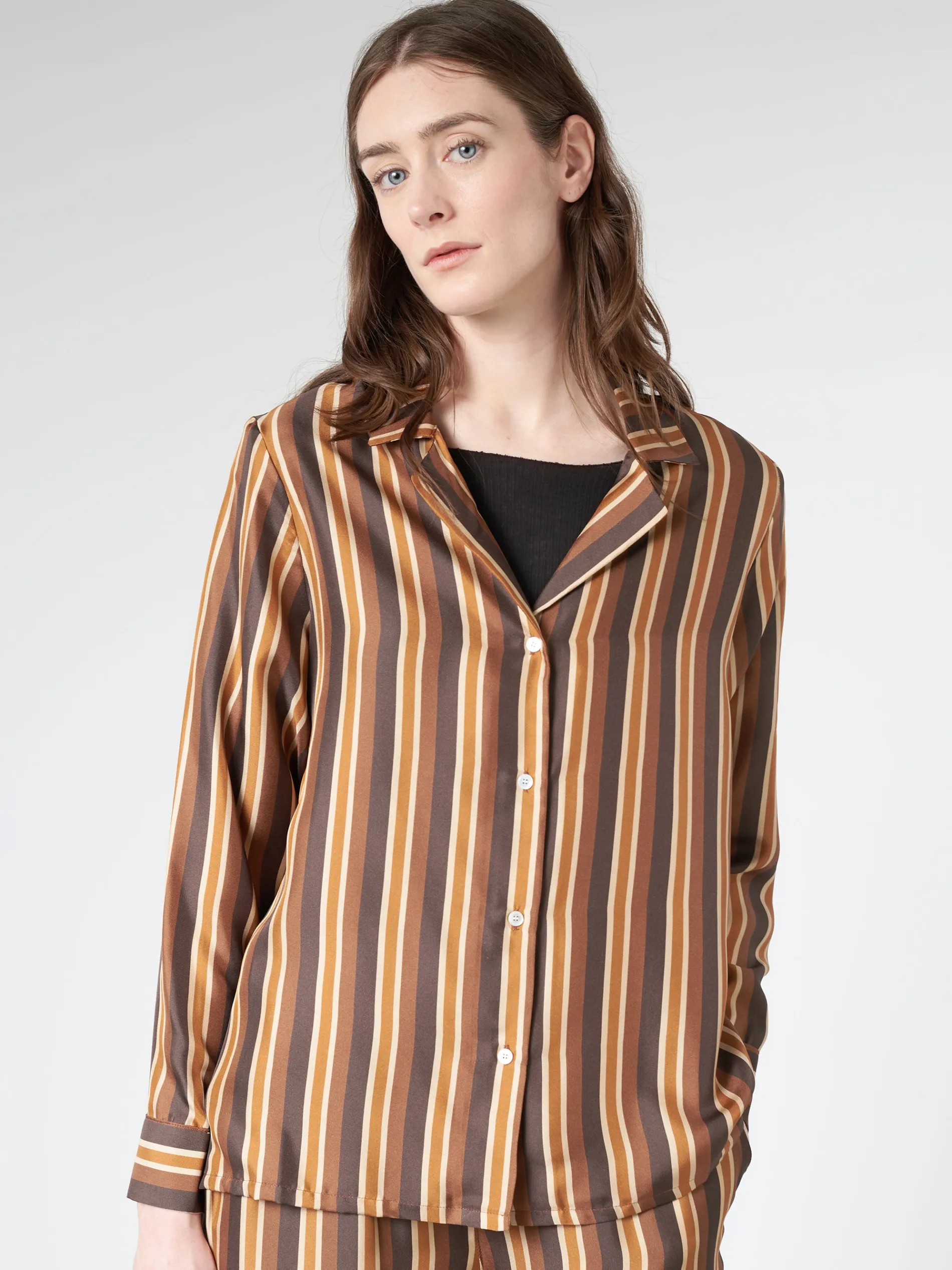 Chloe Stora loose fitting pyjama style shirt with retro styled stripes.