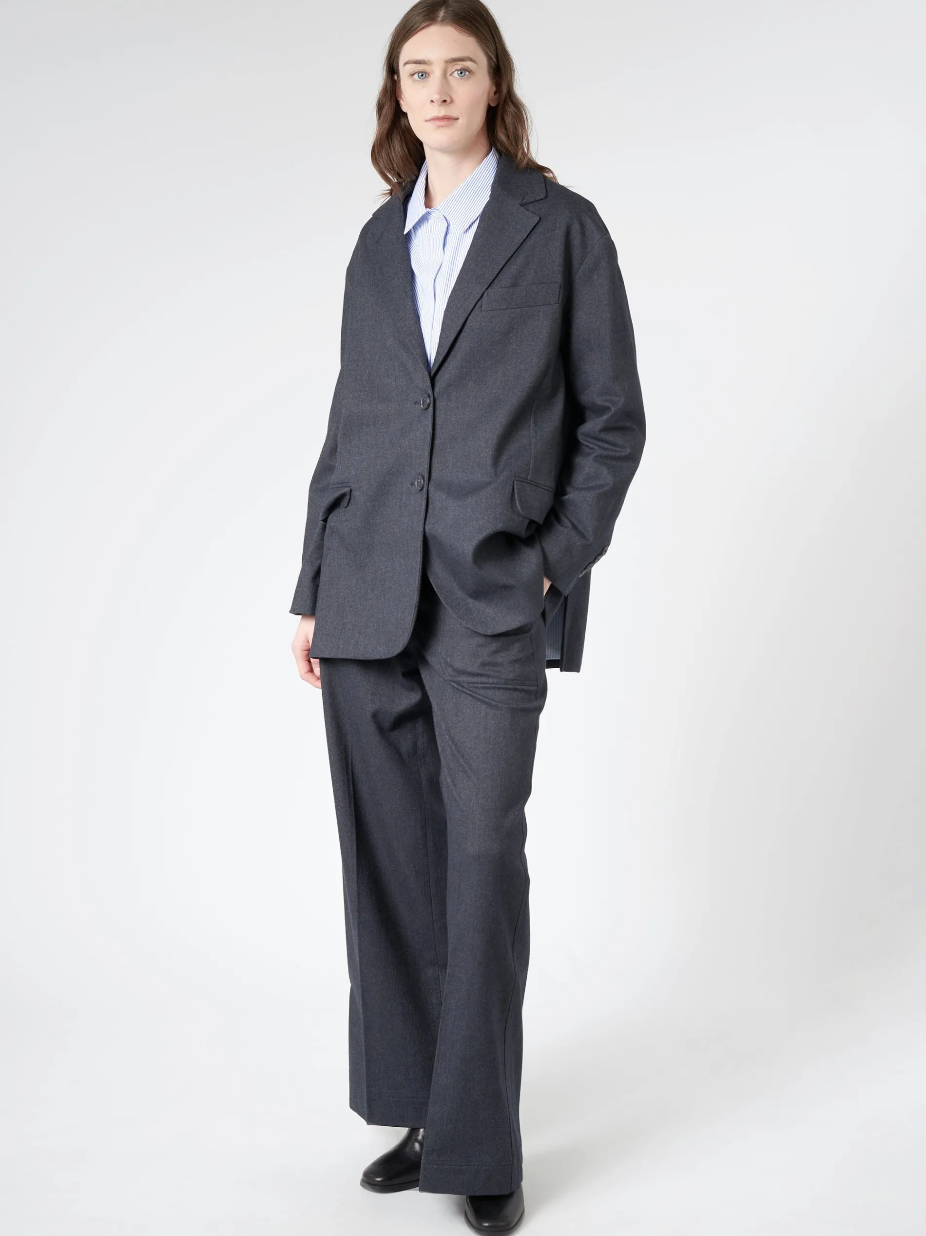 - Single-breasted silhouette