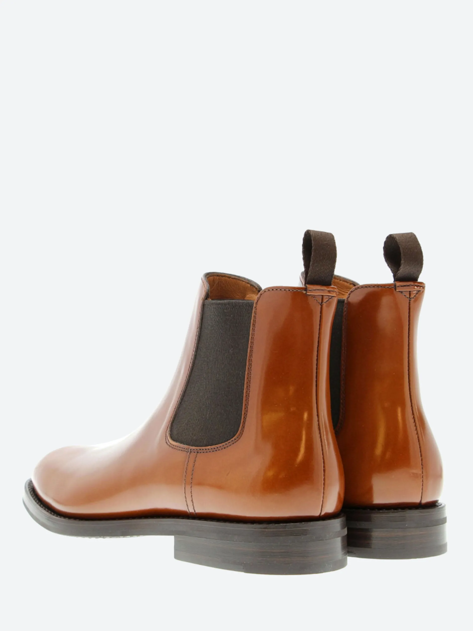 Church’s Monmouth is an ultra-classic Chelsea ankle boot with a rounded toe, low heel and a stitched leather and rubber sole. The boot is made of a high-quality matte calf leather.