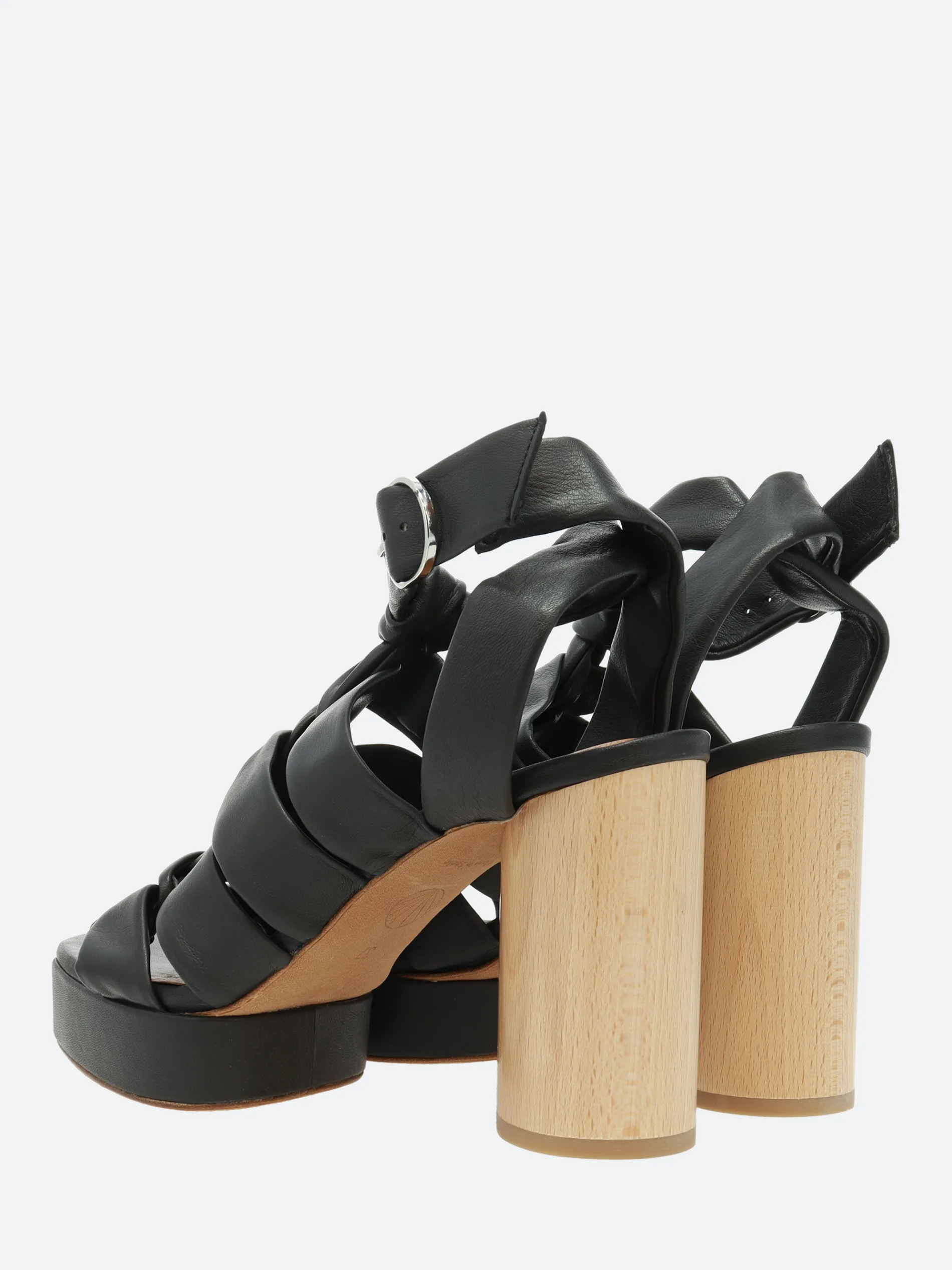 The April Heel features a soft but structured tubular leather vamp with an adjustable ankle strap closure.