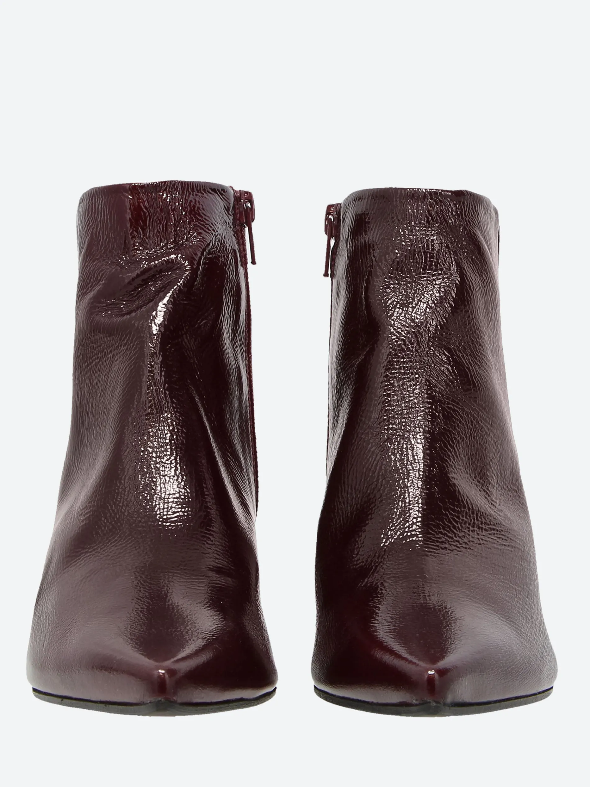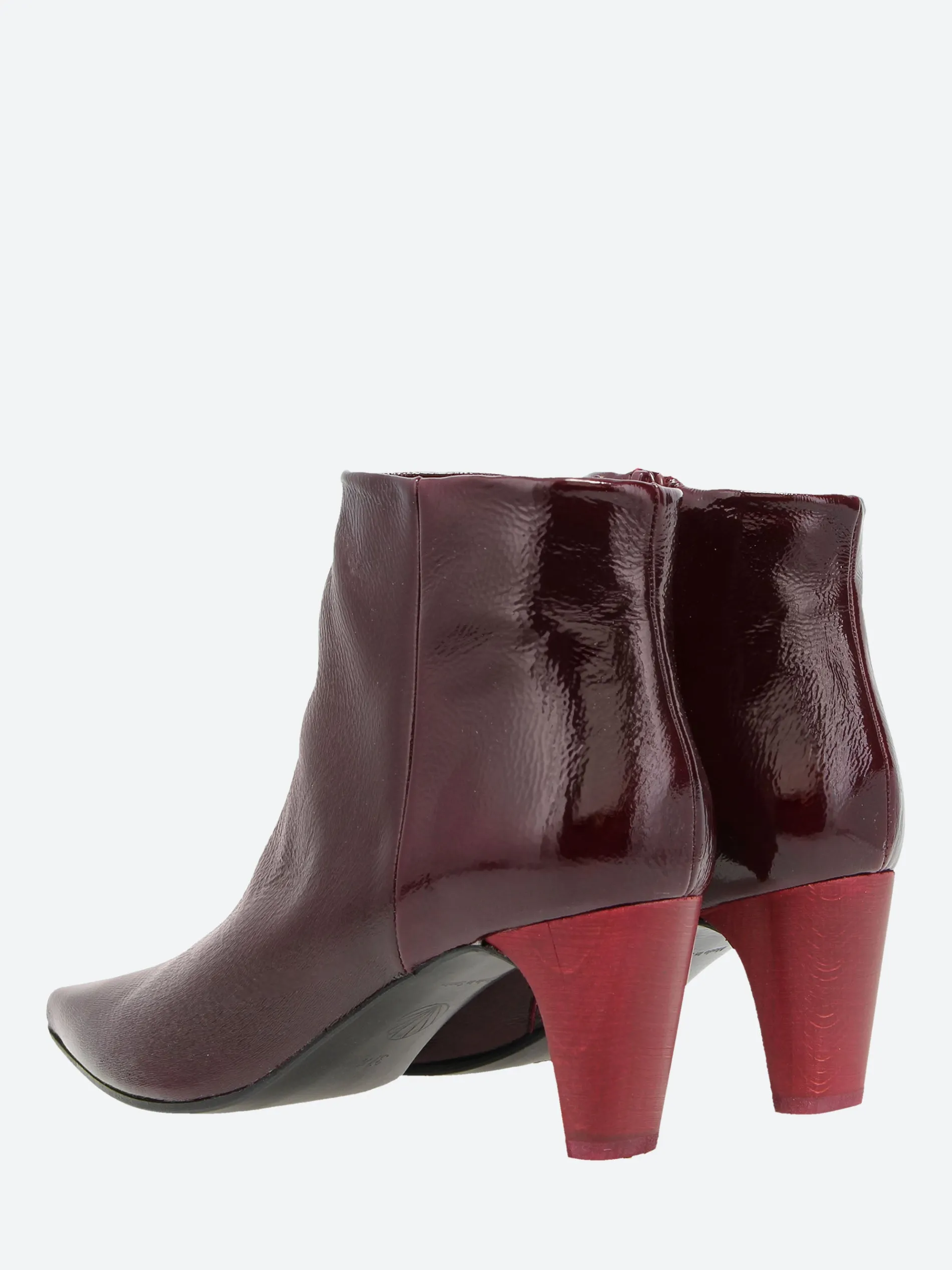 A timeless day-to-night wardrobe essential, the Plato pointed-toe ankle bootie is made up in chic black leather. Featuring a sculpted solid wood oval heel hand painted in a striking red wash. Wear casually with denim or dress to the nines, Plato is the ultimate shapeshifter.