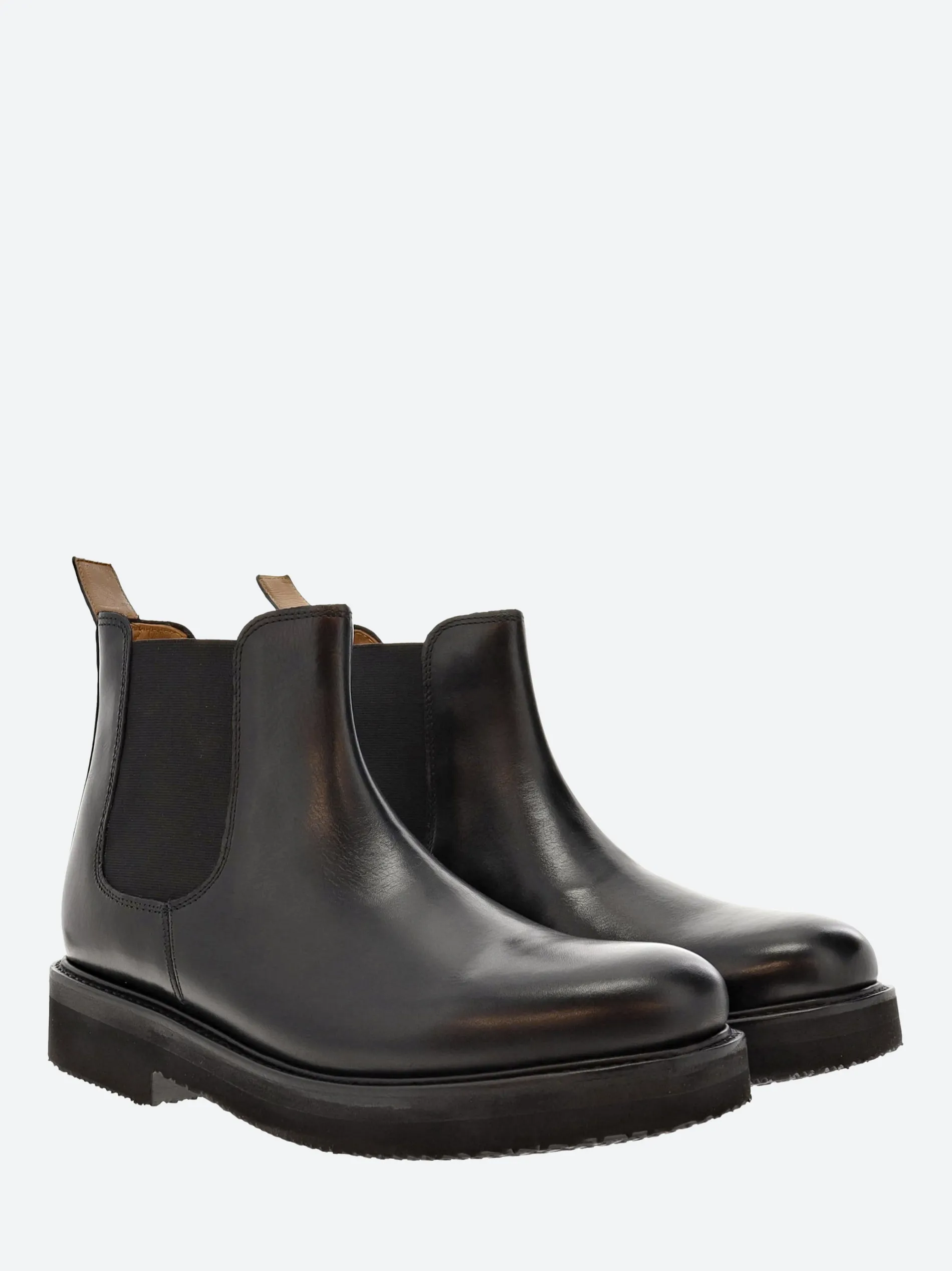 Grenson Colin is a classic, super sleek Chelsea boot made from a classic black calf leather with tonal welt and sole. Sits on a hardwearing Dainite sole with a leather waist for grip and performance.