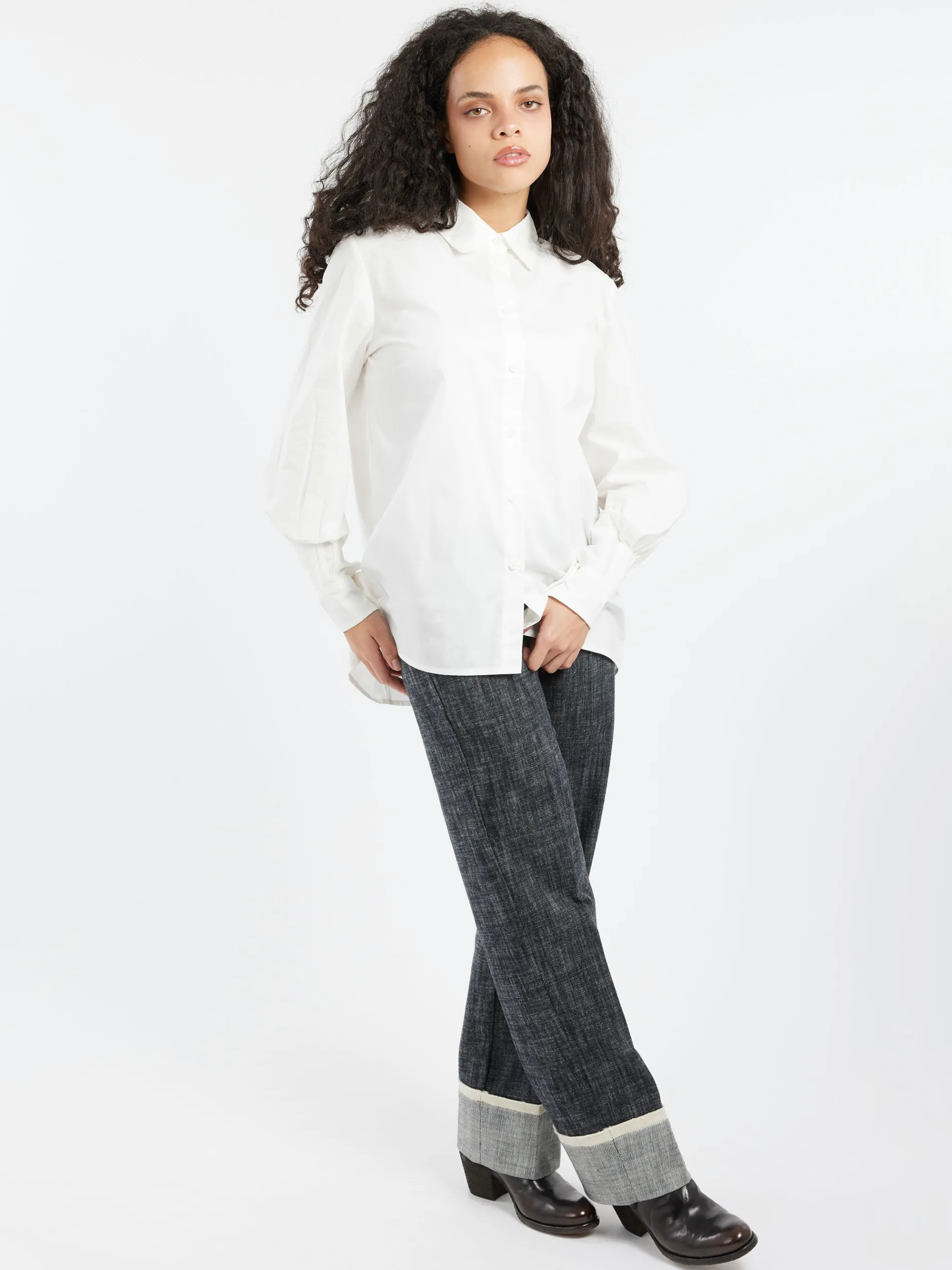 collection PRIVÉE? oversized shirt with plenty of pleated detailing at the sleeves and the back.