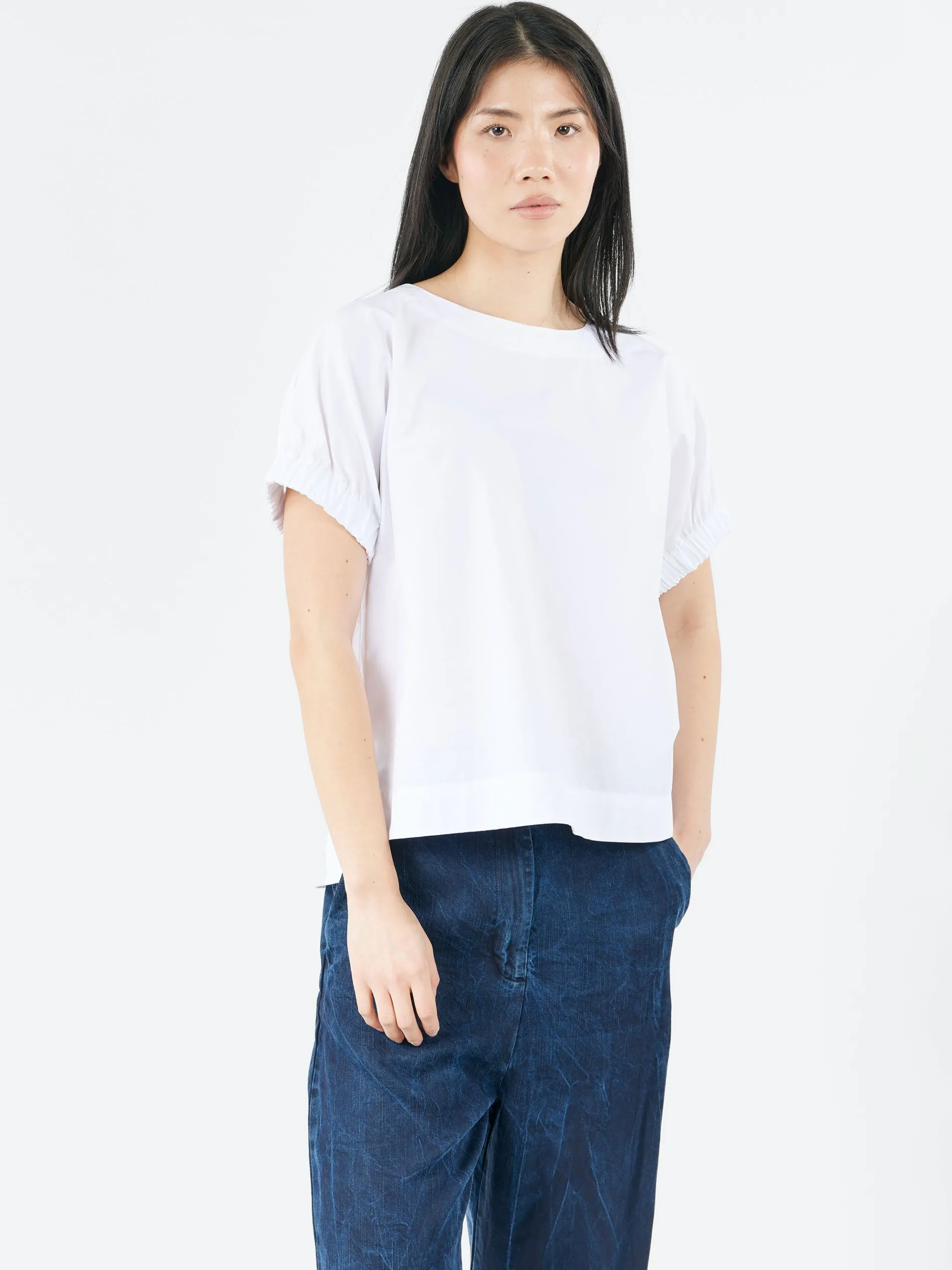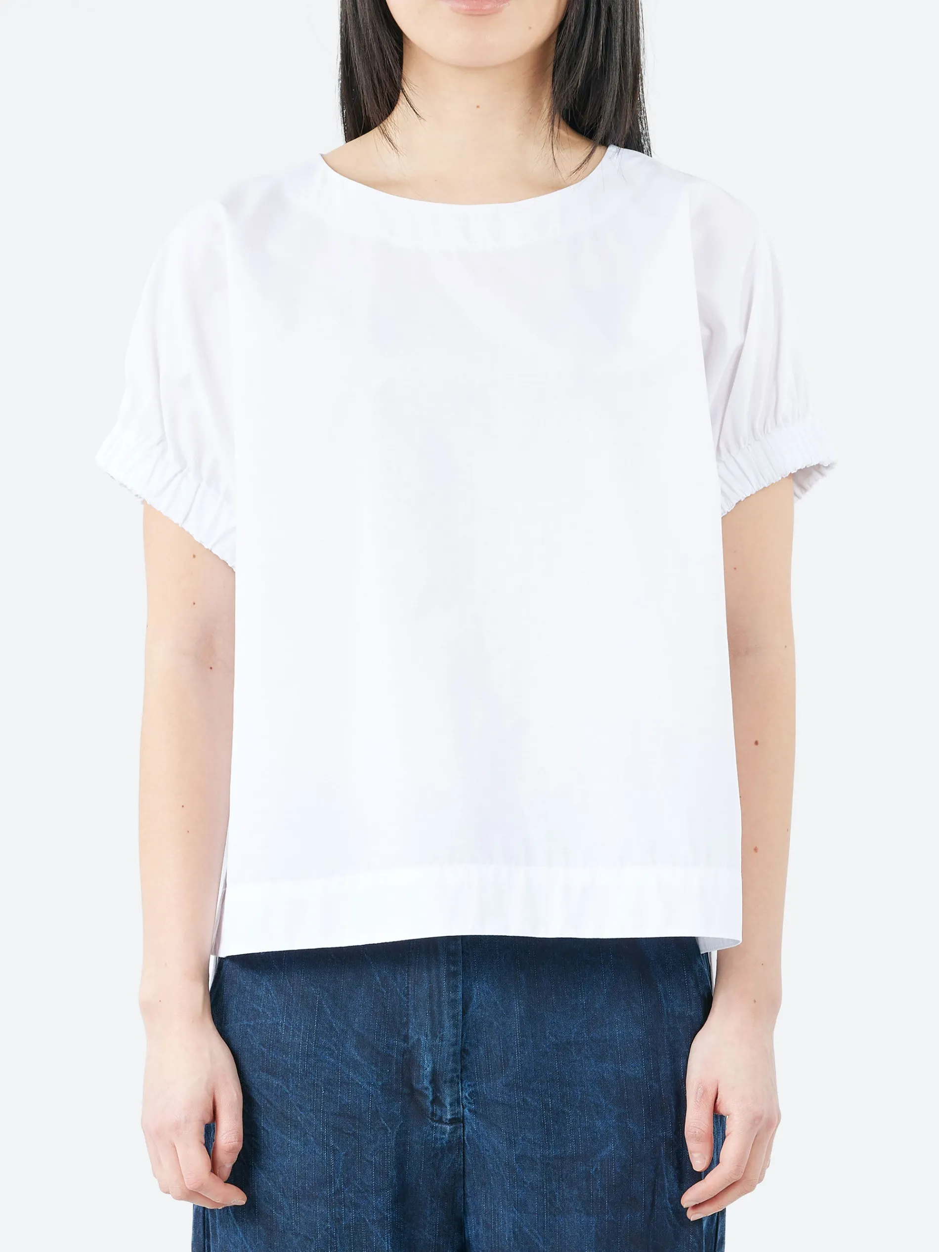 Collection Privee blouse combines classic design with feminine details. Crafted from cotton, this top features a crew neckline and elasticated sleeves. Its relaxed fit and breathable fabric make it suitable for various occasions.