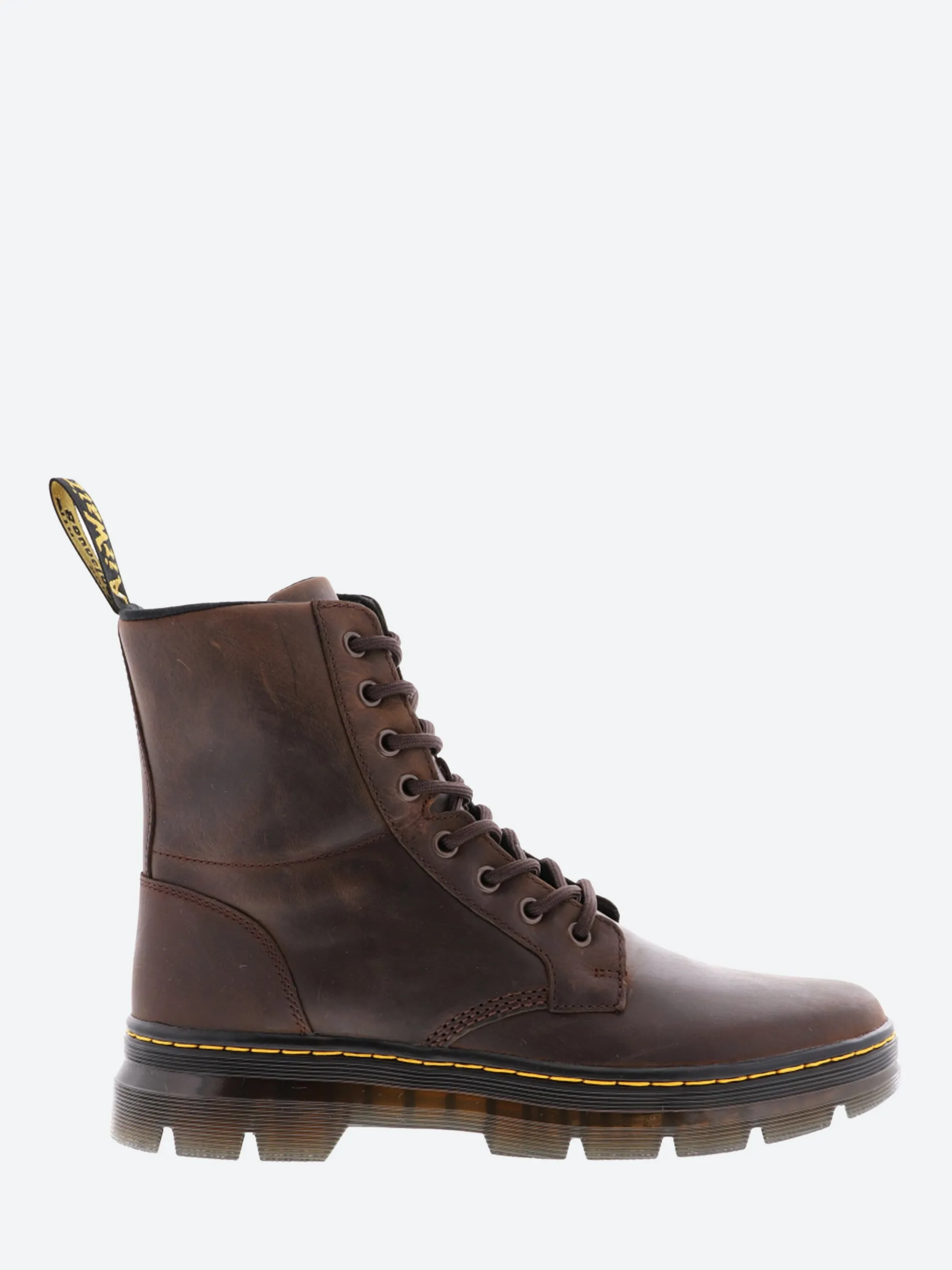 Dr. Martens Combs II 8-eye boot was created to withstand anything with serious style. Made with textured leather, the Combs is rugged and durable yet lightweight.
