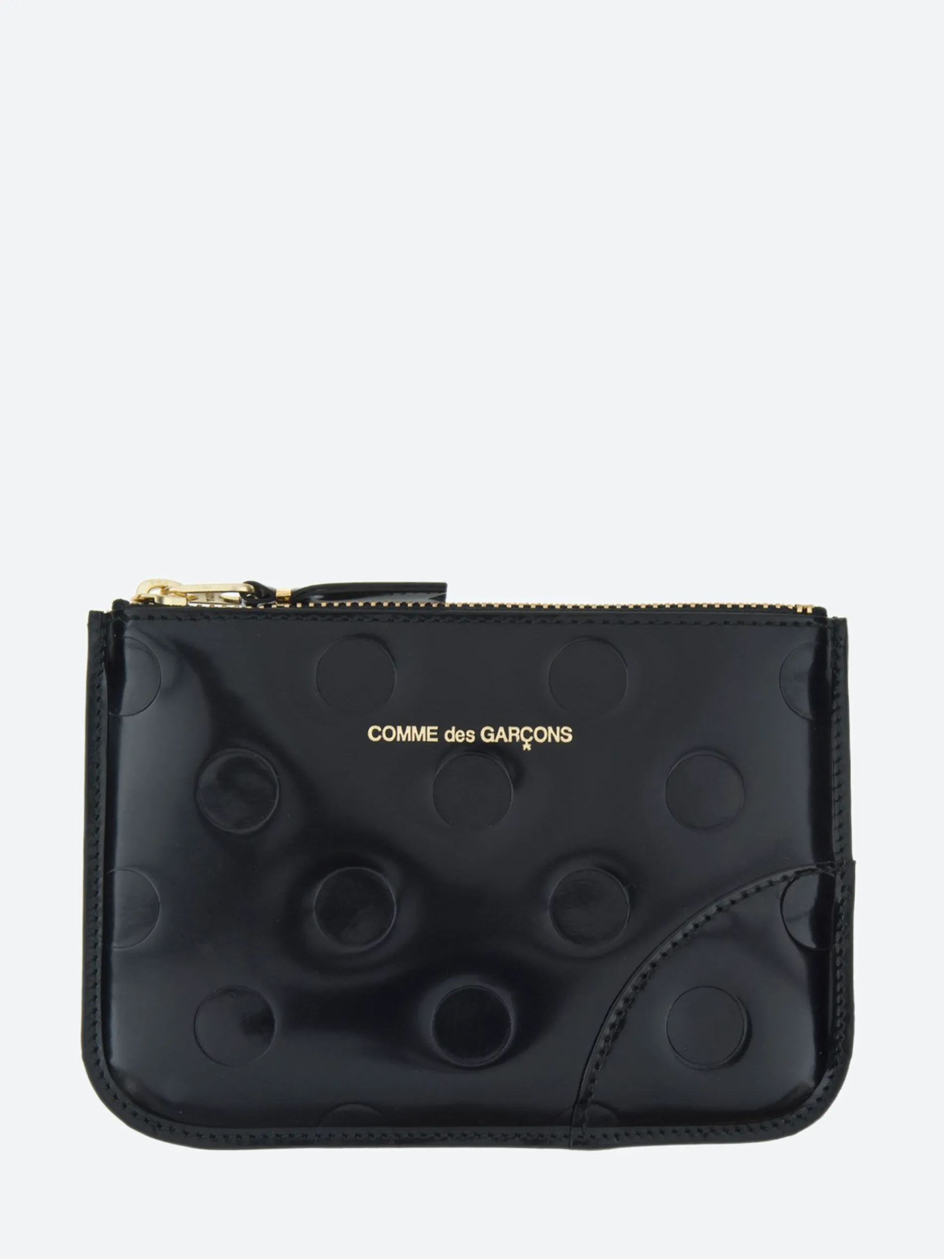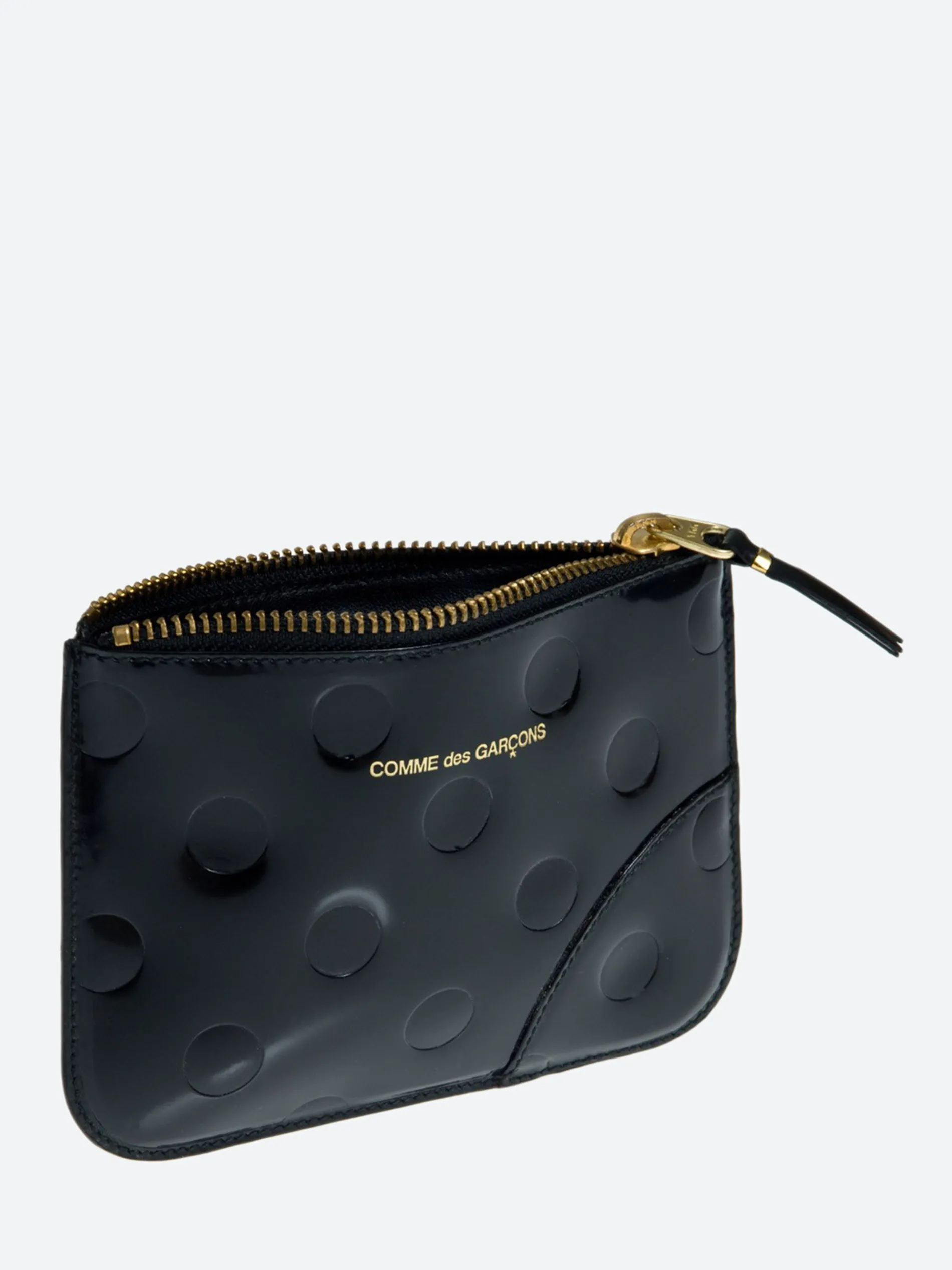 This Comme des Garçons WALLET is constructed from a polka dot embossed leather. Completed with a premium leather lining.