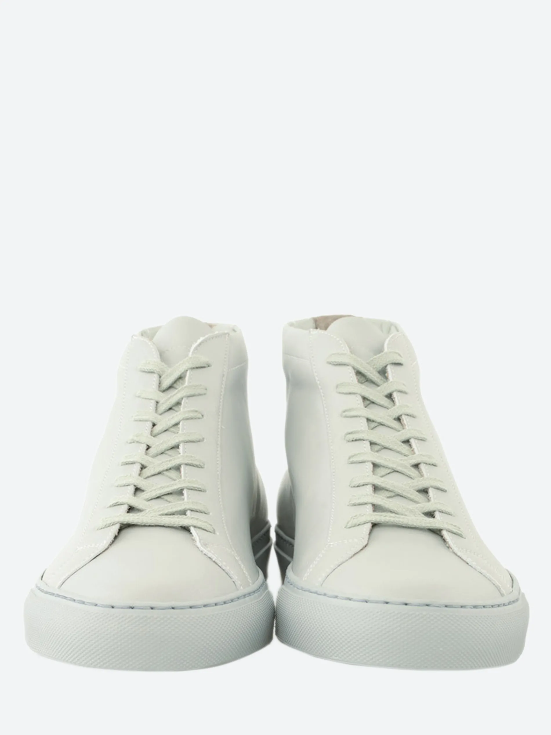 Common Projects Achilles Mid is a classic leather lace-up sneaker. Using top grain leather for the upper and a full leather lining makes this a luxury Italian made sneaker. The clean lines and minimal gold branding exemplifies everything the brand stands for.