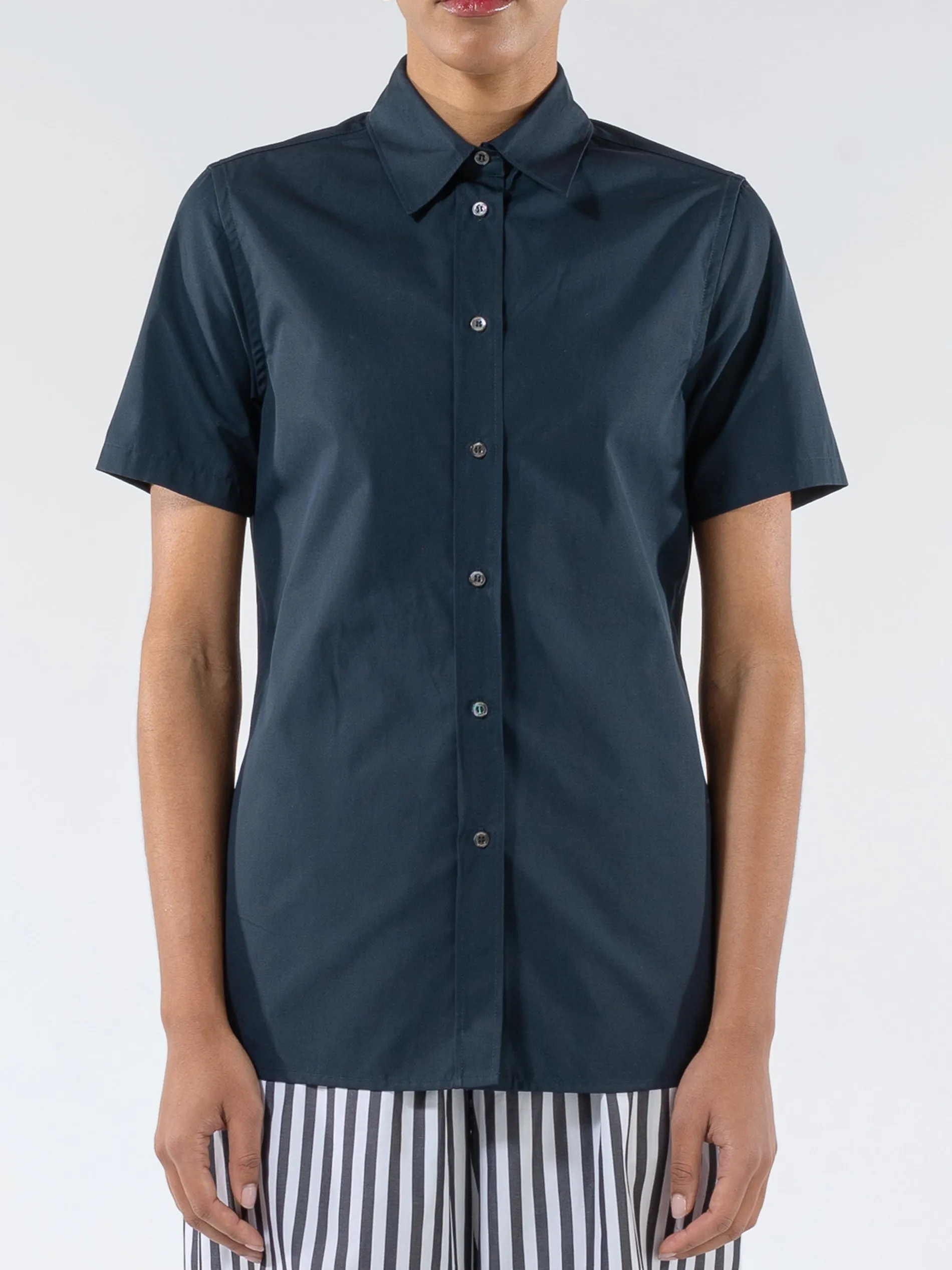 Aspesi short-sleeved button-up shirt made from a durable cotton poplin, a fabric that is durable, cool and soft when in contact with the skin. The minimalist design makes this garment a timeless must-have.