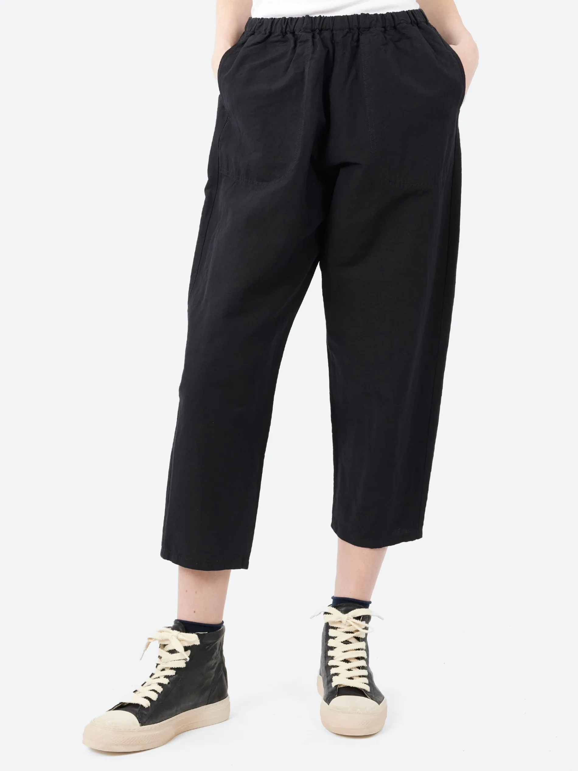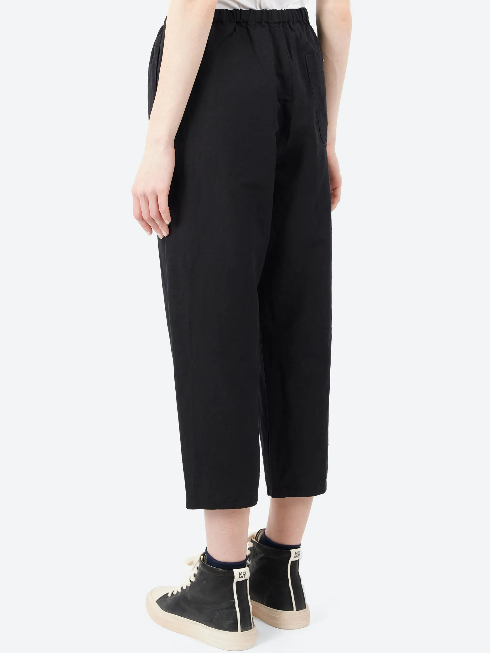 The Danton Cotton Linen Twill Easy Pants are cropped, pull-on pants crafted from a durable cotton-linen blend. They feature an elastic waistband with an internal drawcord, allowing for a customizable and comfortable fit. A subtle DANTON logo patch on the back pocket adds a touch of detail. These easy pants are perfect for relaxed, casual wear, combining comfort, style, and versatility.