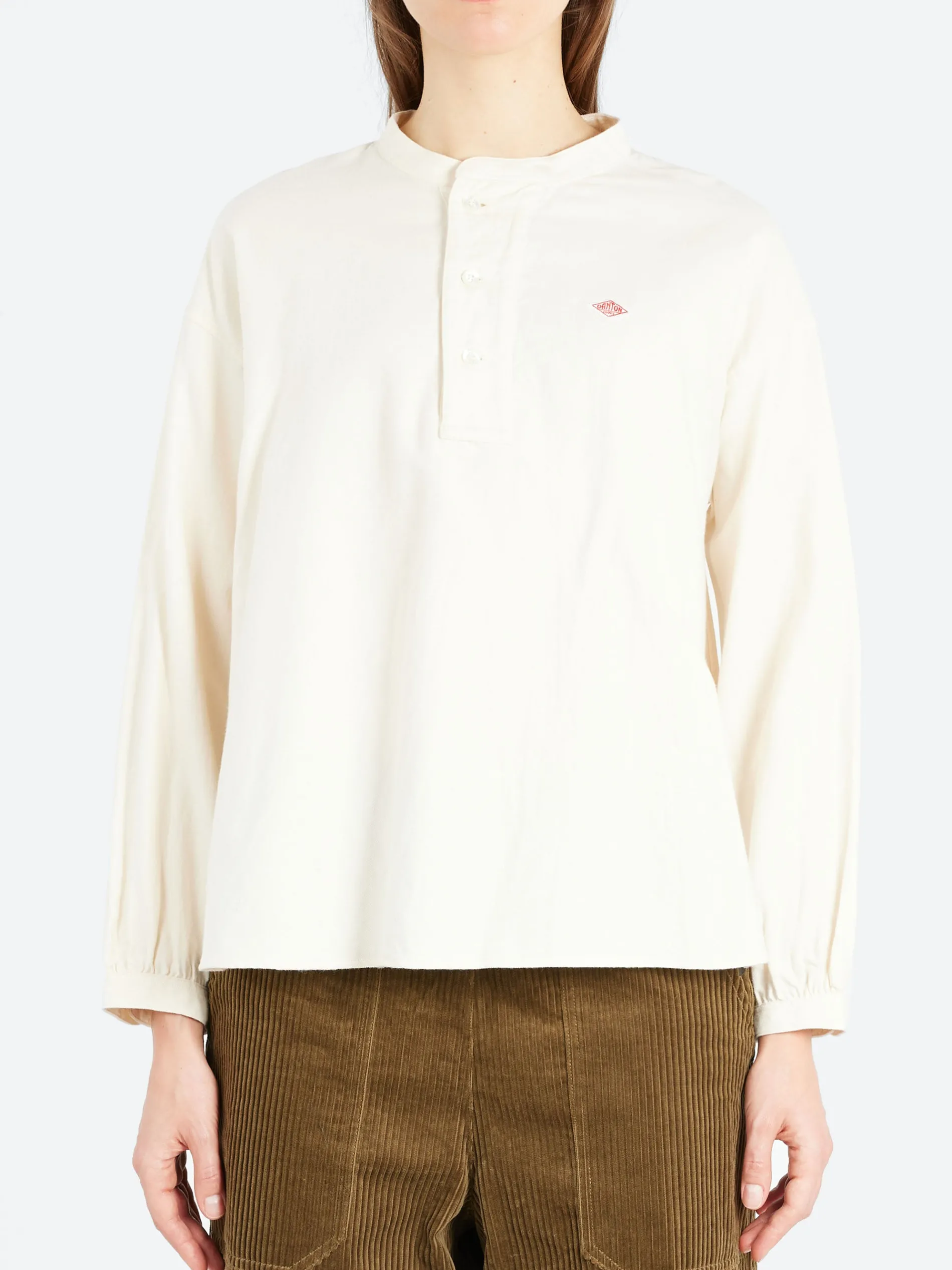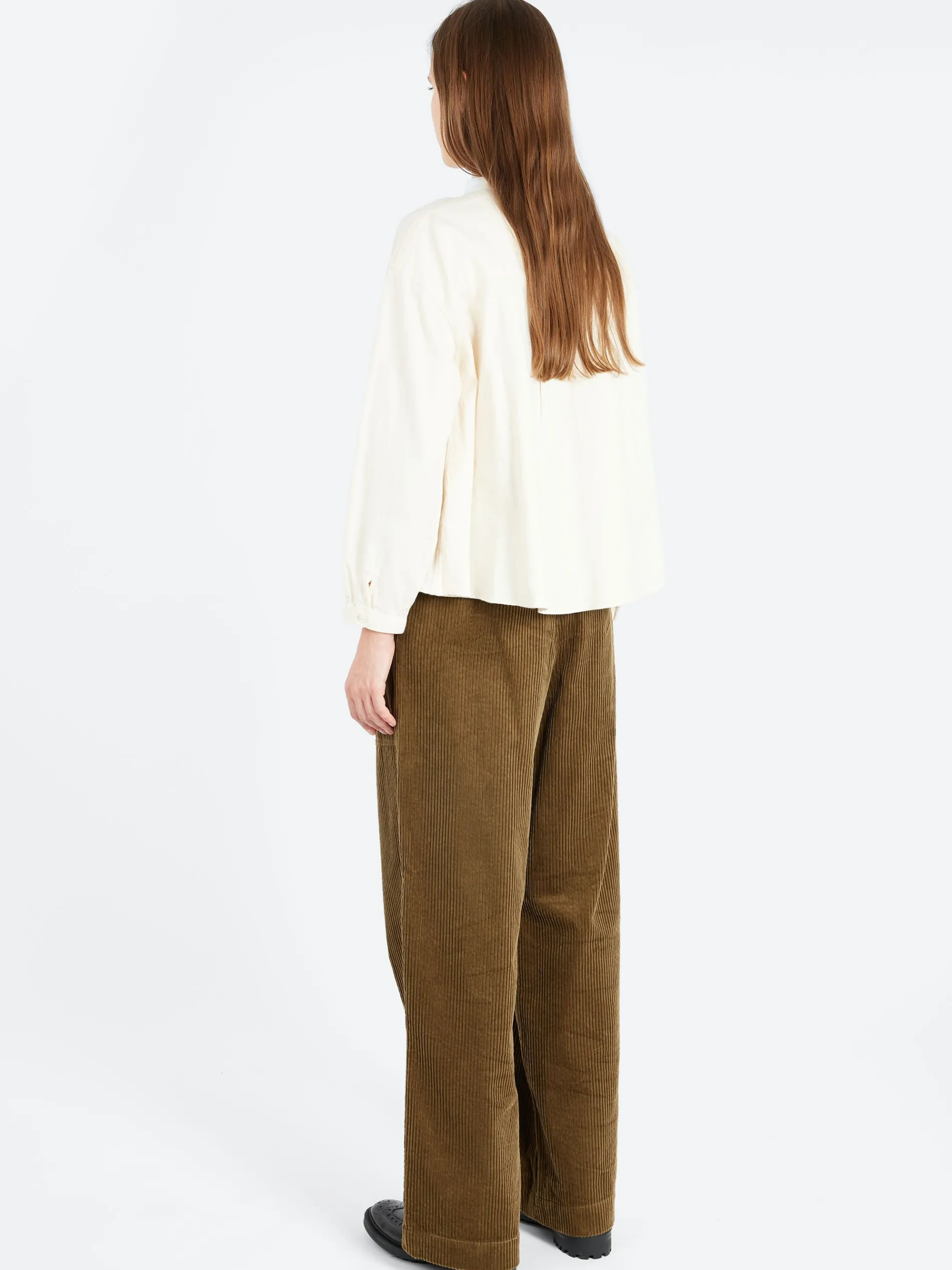 A cute feminine blouse with an A-line design. Made from loosely woven organic cotton with a fluffy, soft hand.