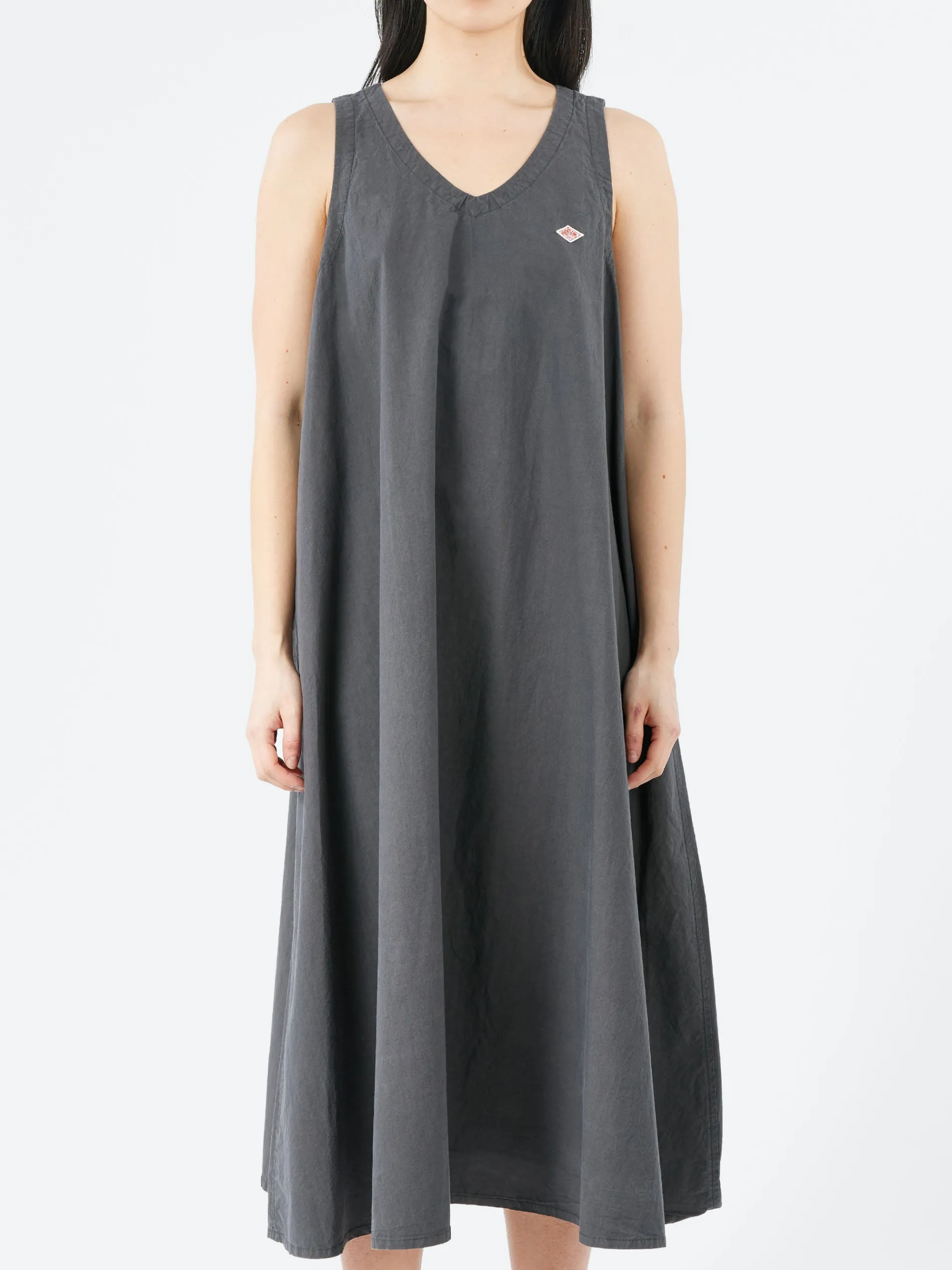 The Danton V-Neck Dress features a voluminous silhouette, crafted from densely woven cotton that offers a moderately crisp yet soft feel. The versatile fabric makes it suitable for wear in all seasons, providing comfort and style year-round. Side buttons allow for an adjustable fit, adding both functionality and a customizable shape to this elegant dress.